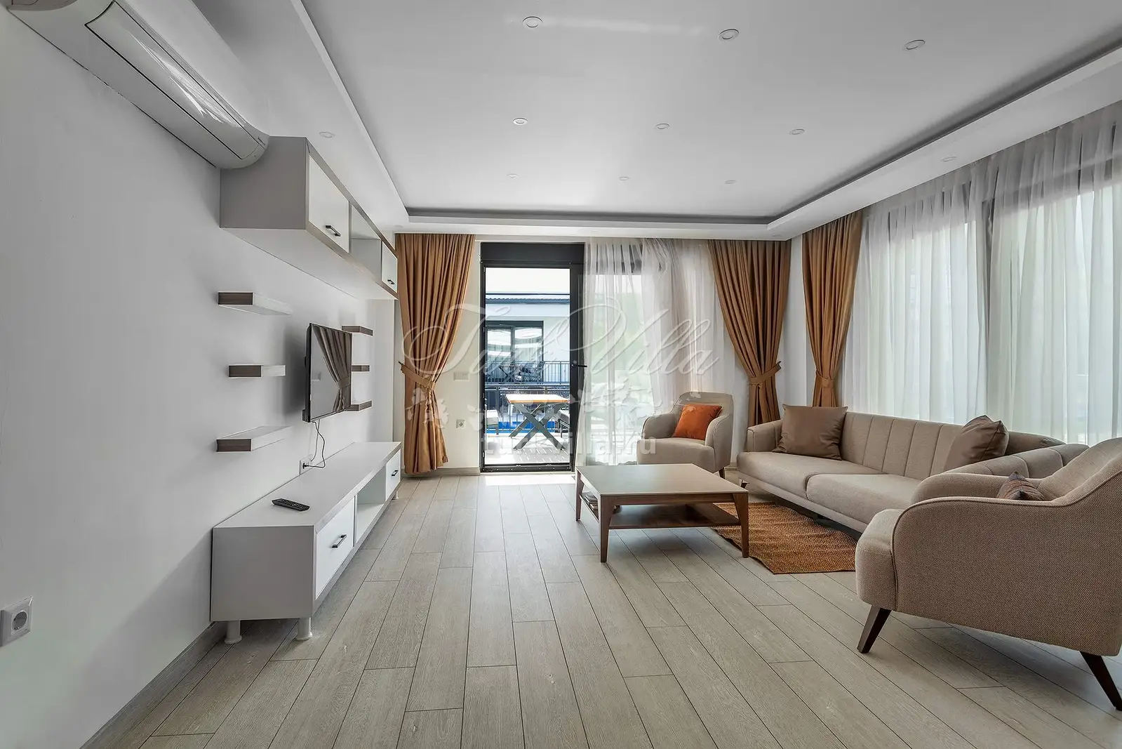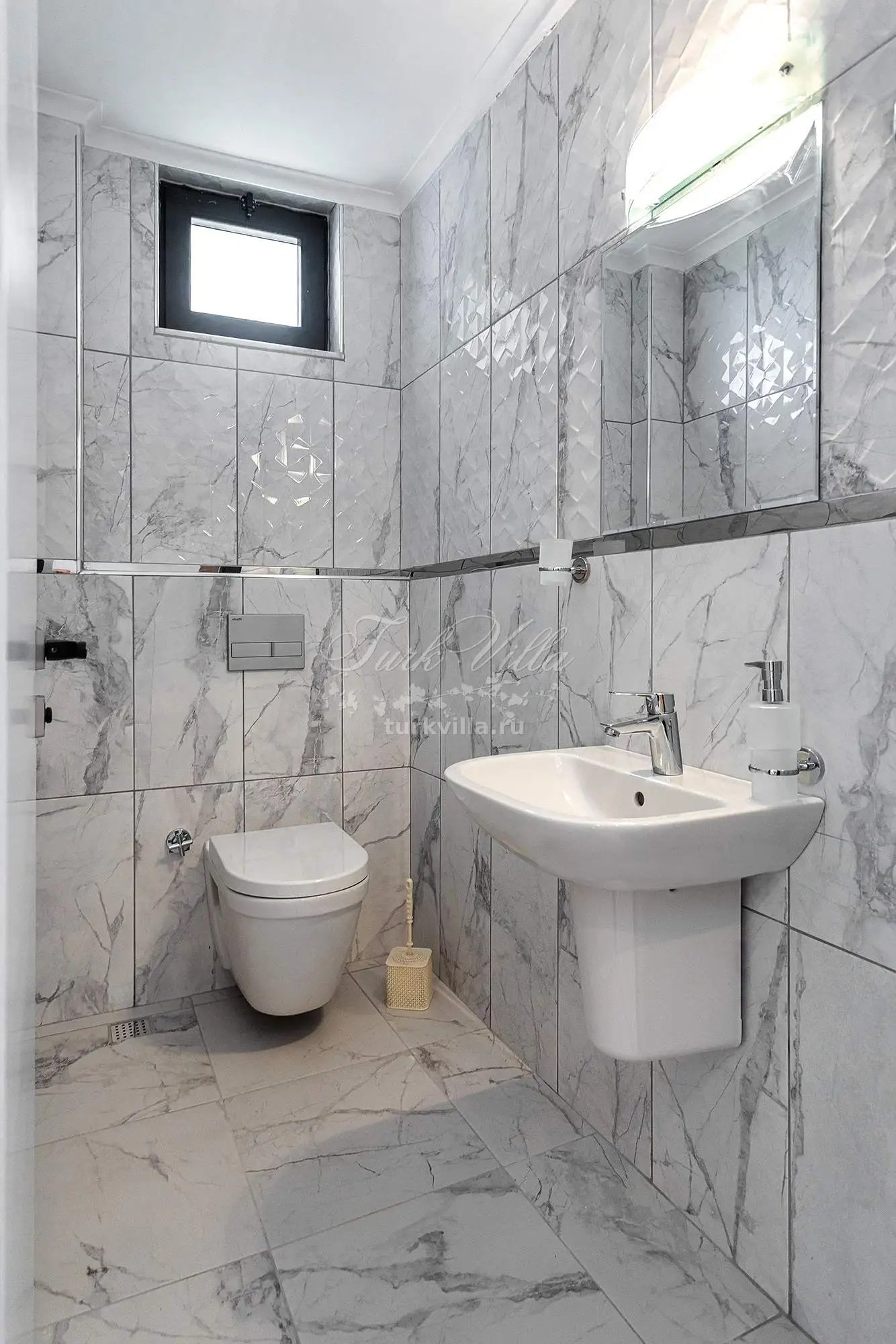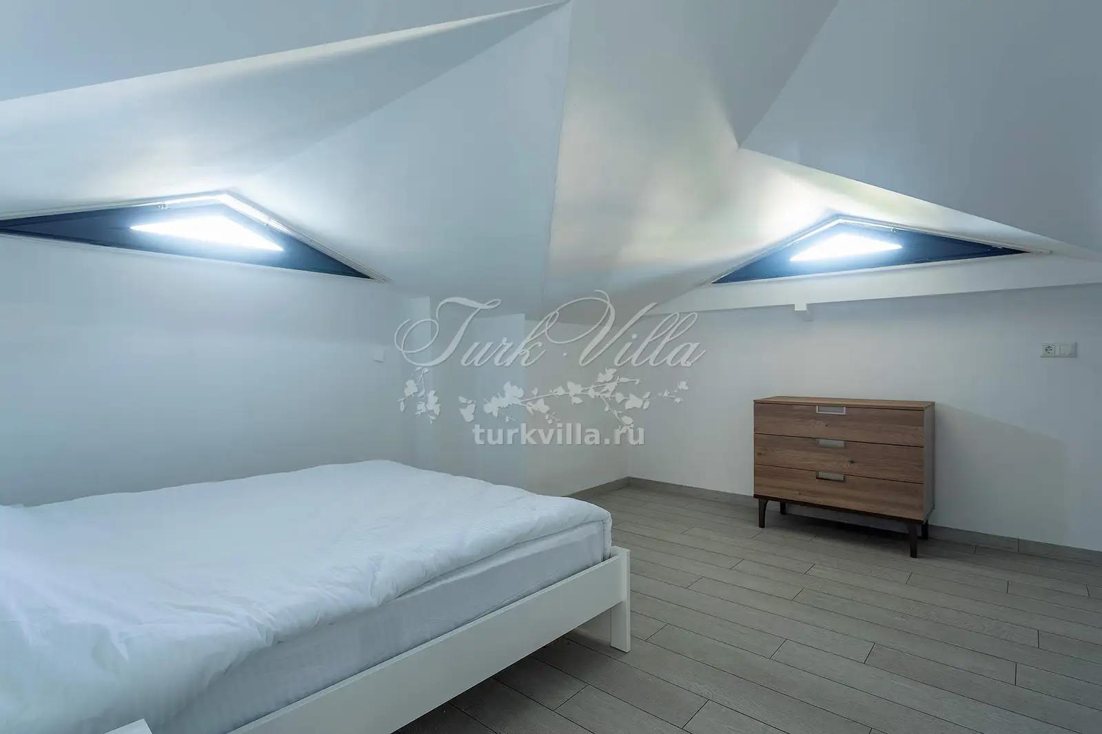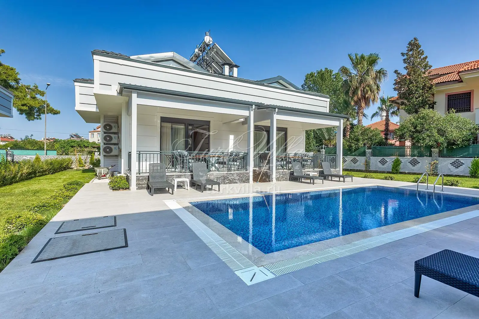 На первом этаже расположена веранда, оборудованная мягкой мебелью для отдыха и имеющая выход к бассейну. Также на первом этаже размещен санузел, просторная гостинная с мягкой мебелью для отдыха, телевизор, интернет и спутниковое телевидение.