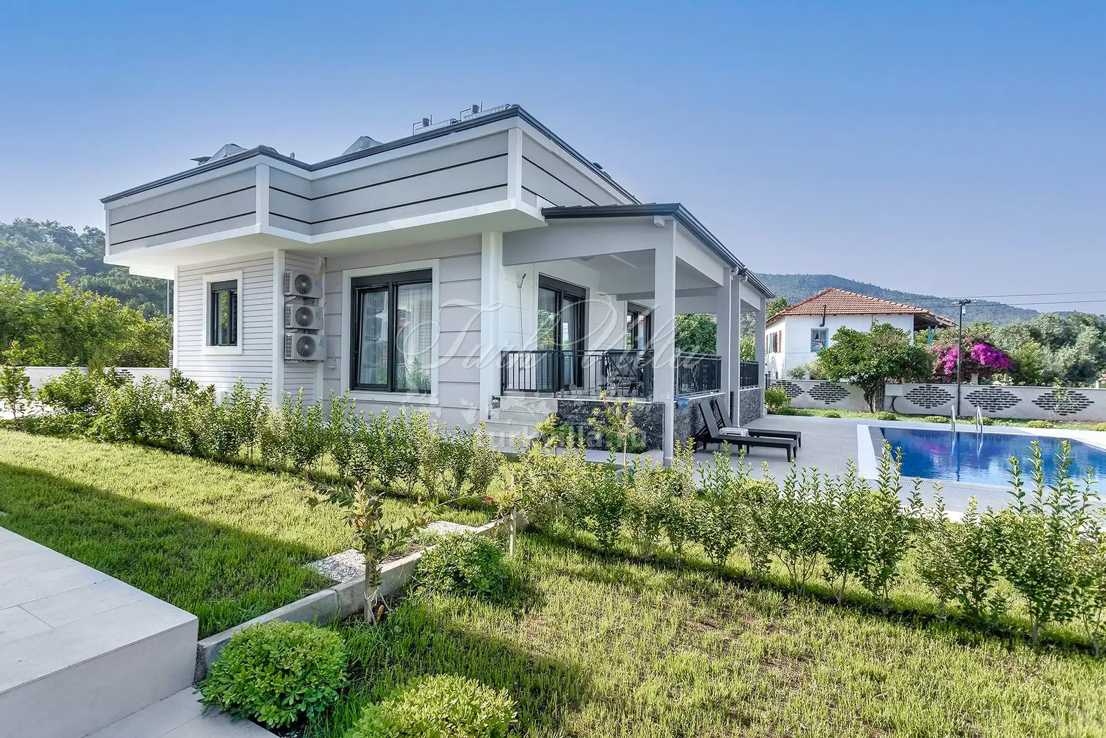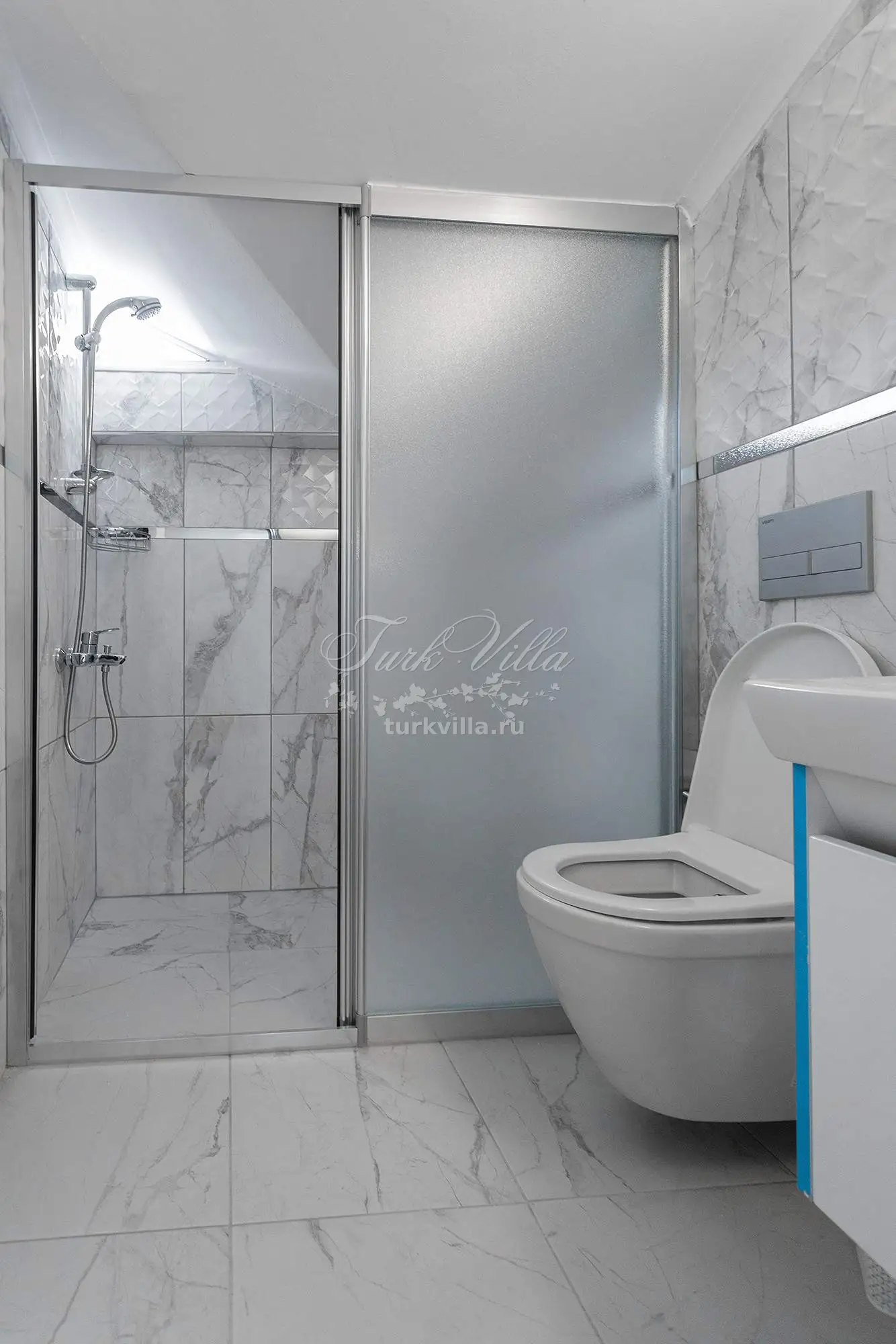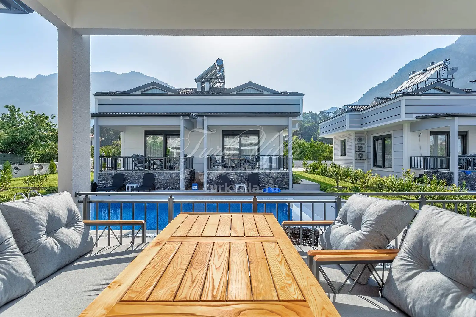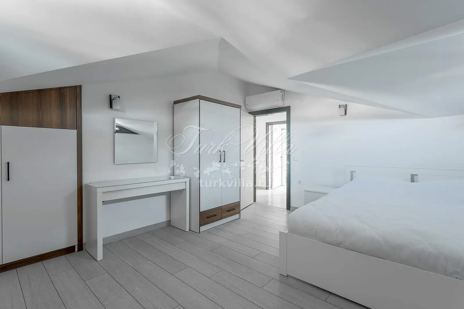 На первом этаже расположена веранда, оборудованная мягкой мебелью для отдыха и имеющая выход к бассейну. Также на первом этаже размещен санузел, просторная гостинная с мягкой мебелью для отдыха, телевизор, интернет и спутниковое телевидение.