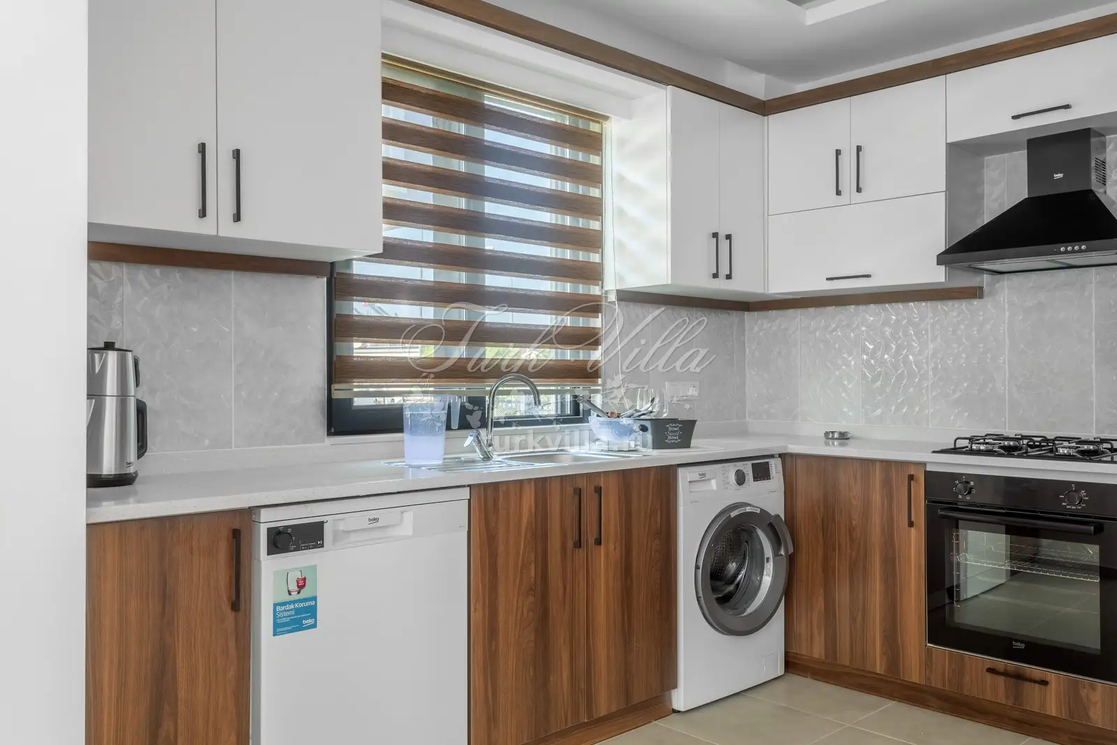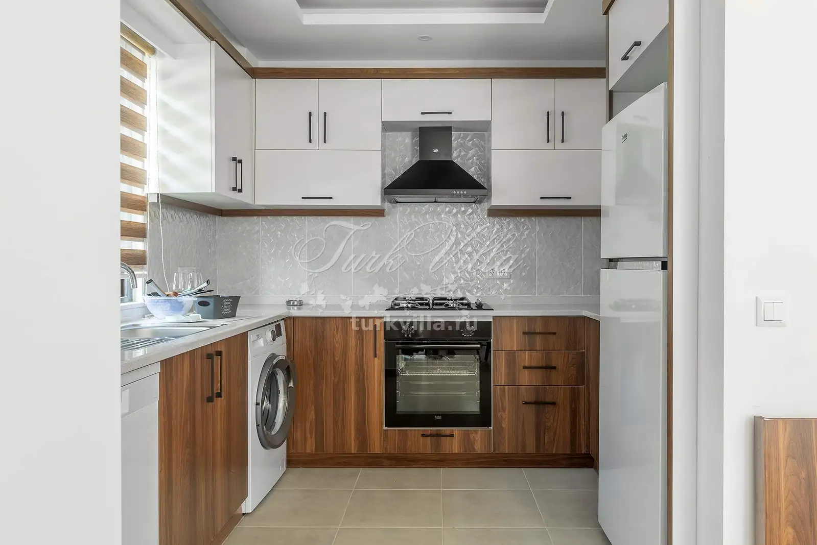 Кухня: просторная и современная американская кухня, оборудованная посудомоечной машиной, стиральной машиной, холодильником, варочнной панелью, духовым шкафом.