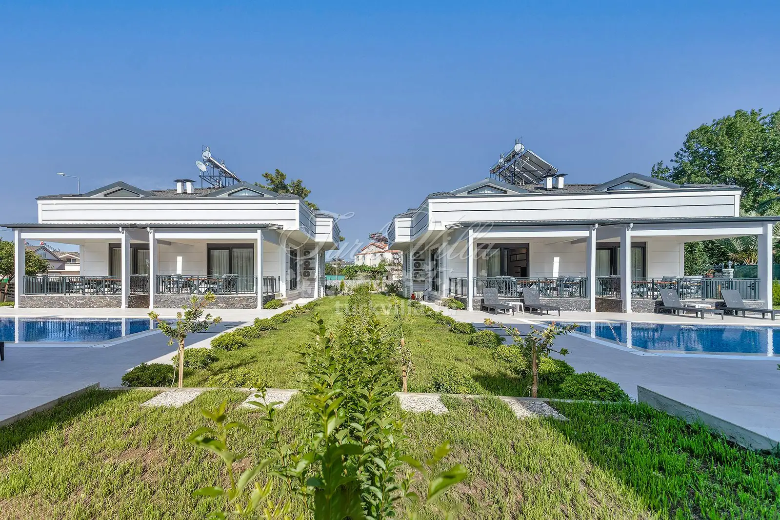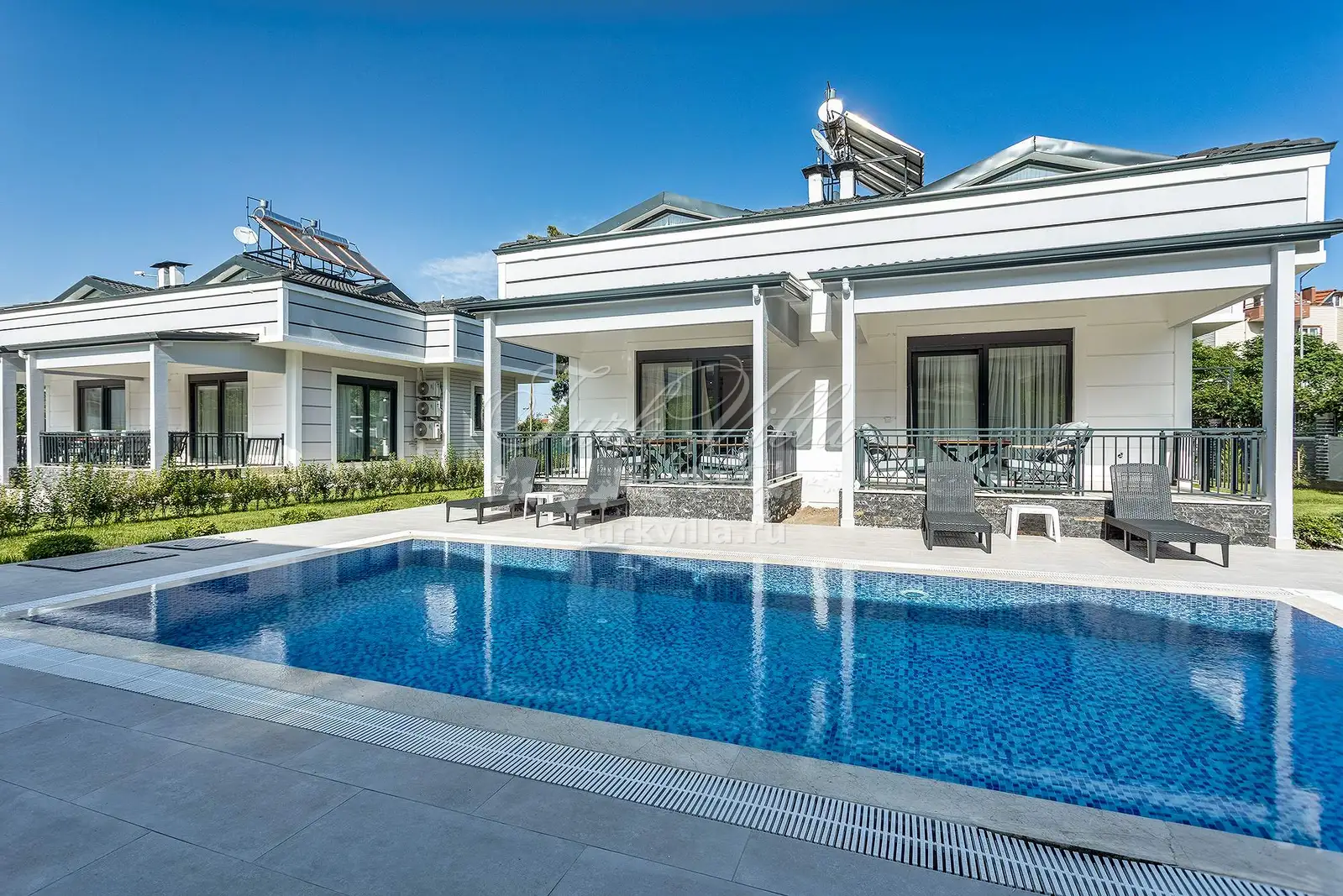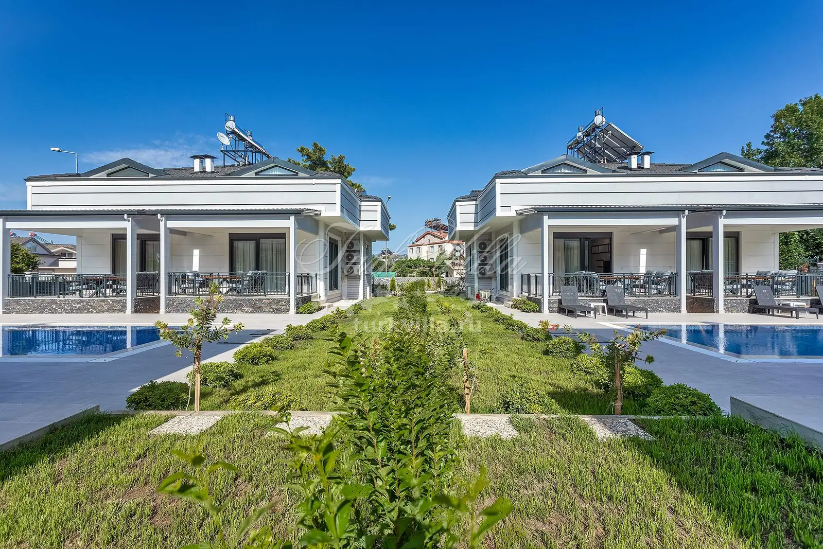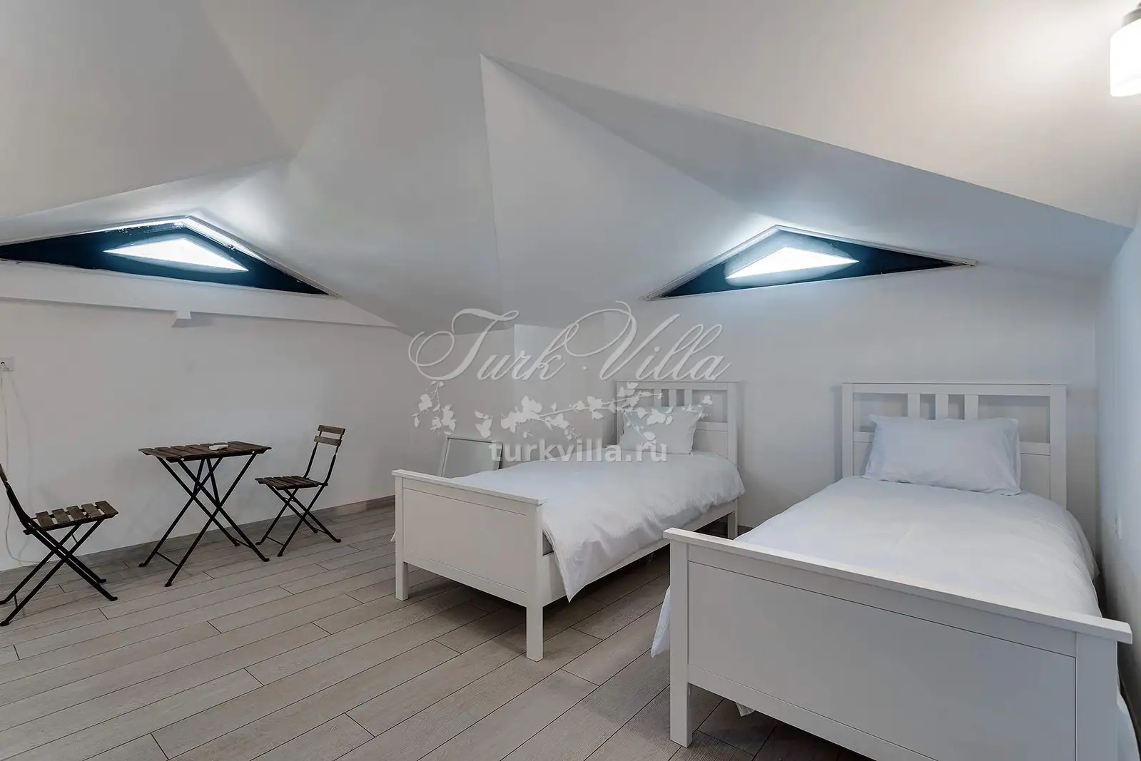 Роскошные апартаменты находятся на территории жилого комплекса в курортном поселке Асланбуджак. На территории находится четыре дома, в каждом доме по четыре квартиры. На два дома один бассейн.