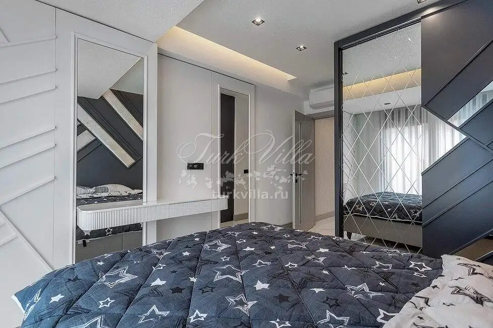Спальня 2 - двуспальная кровать, зеркало трюмо, большой шкаф для хранения одежды, выход на террасу.
