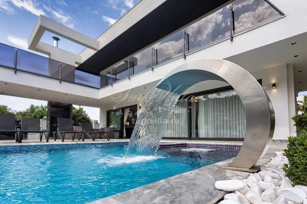 На территории виллы возле бассейна есть мангальная зона, четыре шезлонга для загара и отдыха возле бассейна. Бассейн с подогревом. В ночное время на территории работает подсветка.