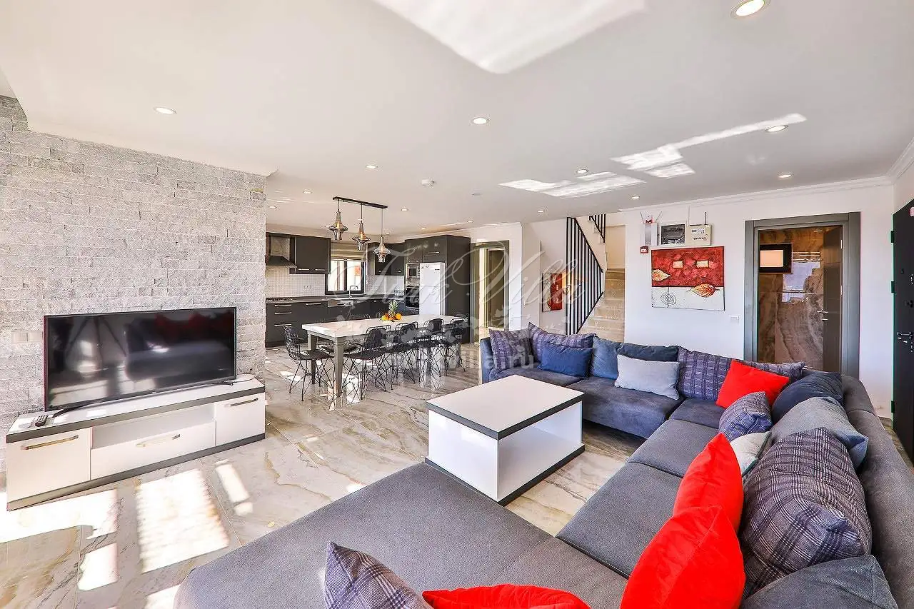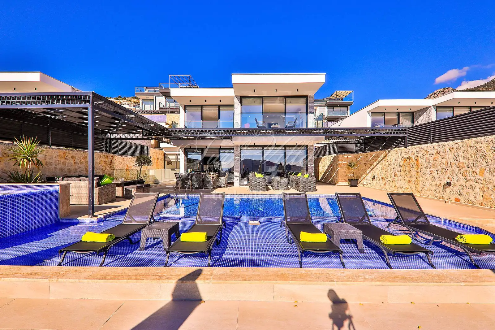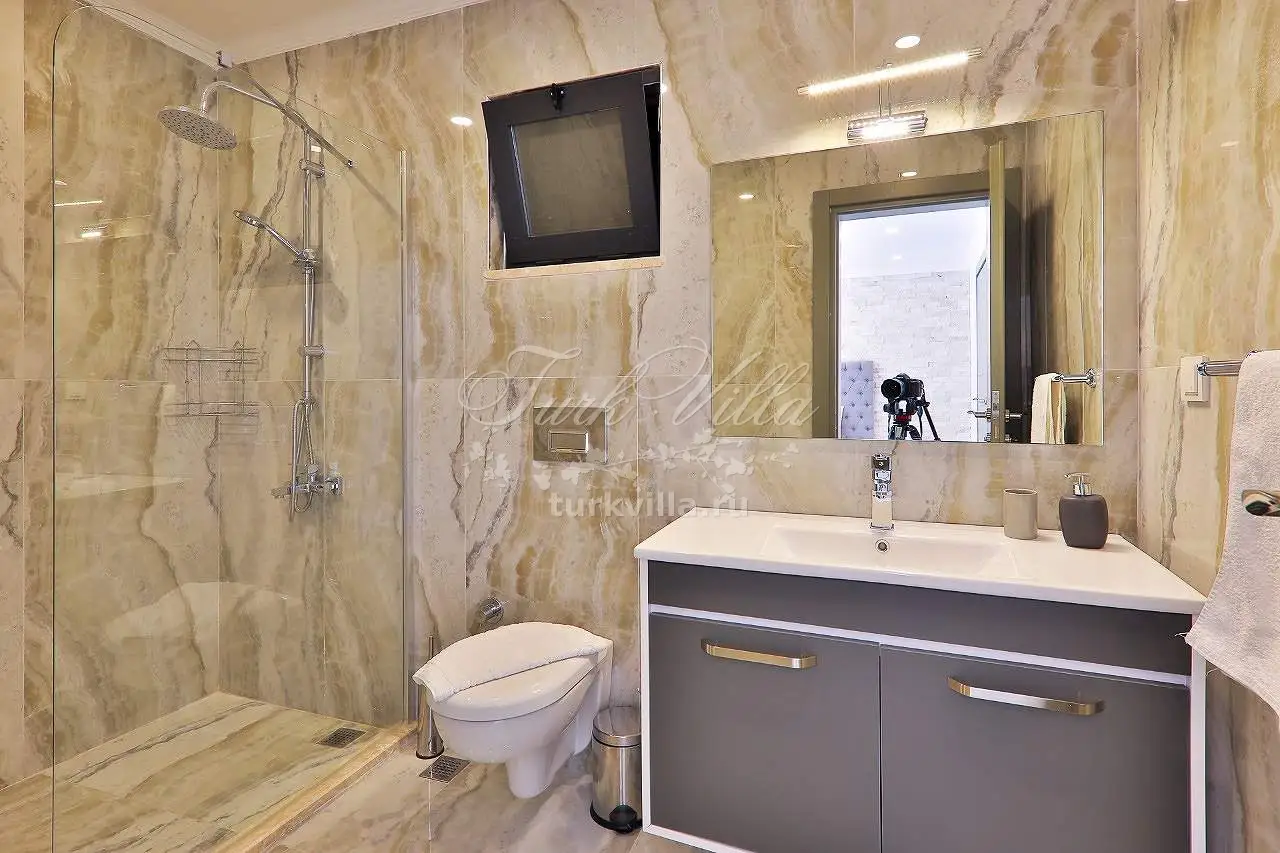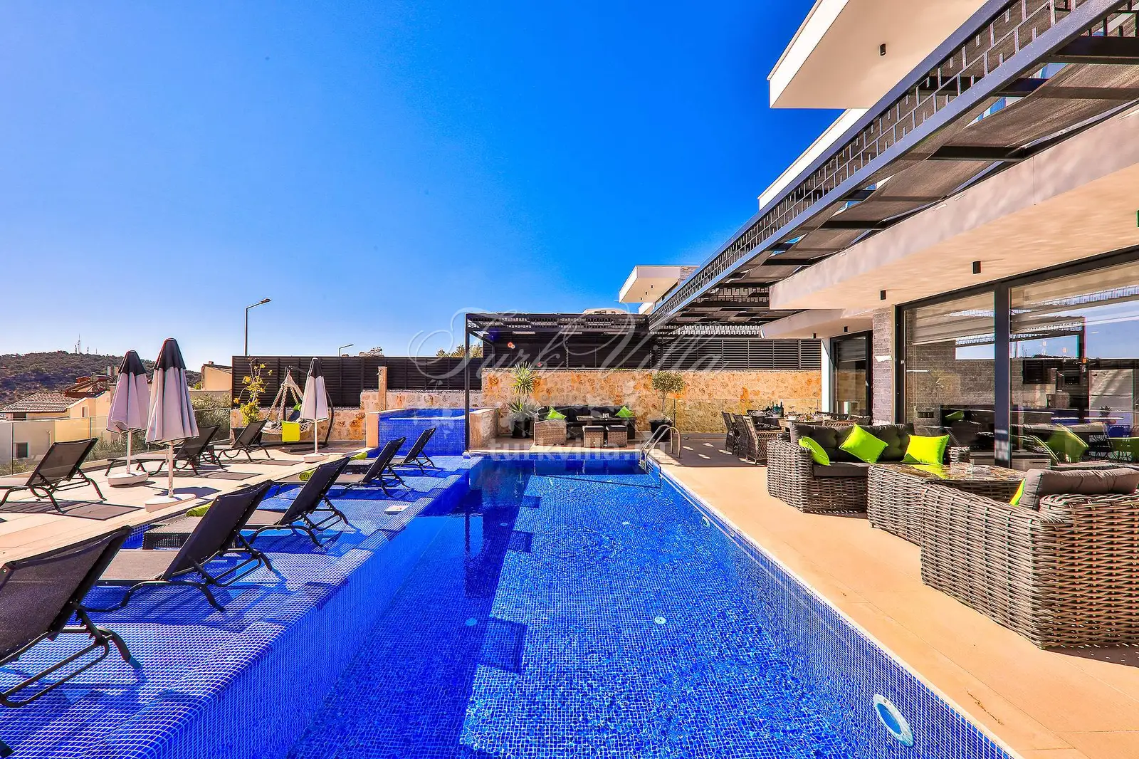 Гости, которые остановятся в нашей роскошной вилле в аренду в Калкане, недалеко от моря, будут иметь возможность наблюдать за природными красотами города и бескрайним видом на море с собственной террасы у бассейна и из всех комнат. Это идеальная вилла для больших семей, которые хотят провести отпуск вместе на вилле, где роскошный дизайн дополняется частным бассейном с панорамным видом на море и природу. Есть бильярд и настольный футбол.