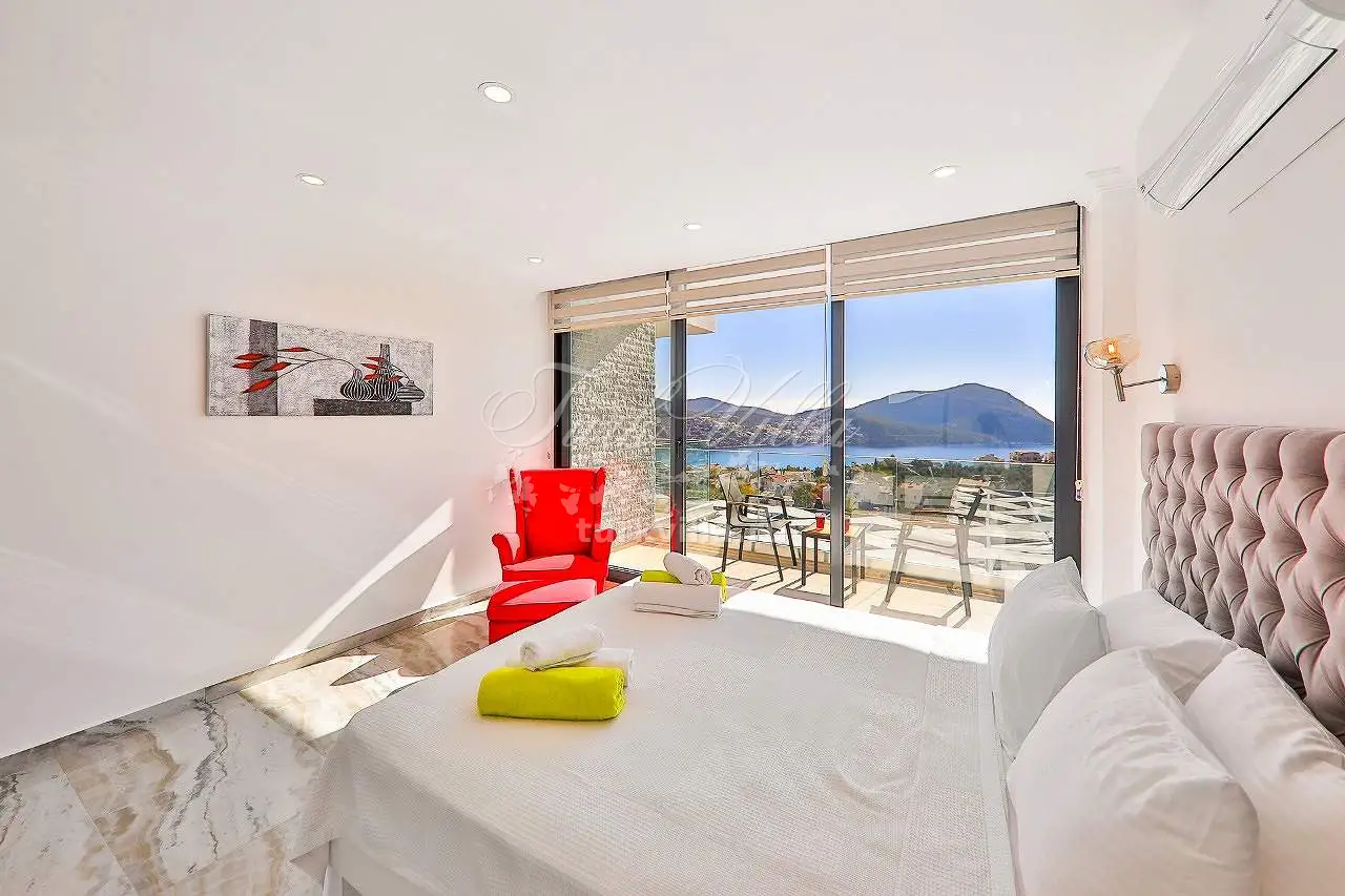 Спальня 4 - двуспальная кровать, кондиционер, санузел, балкон с видом на море.