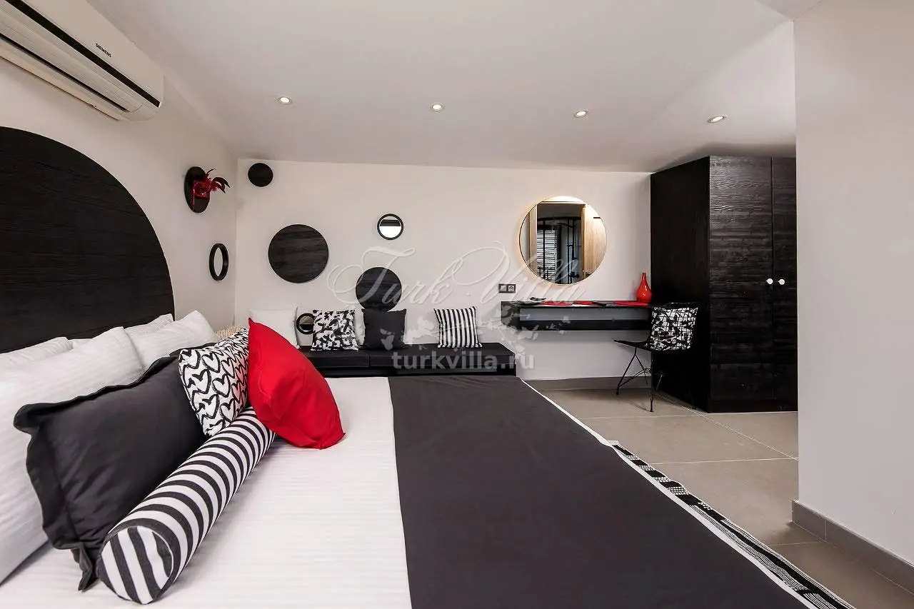 Вилла с шикарным ремонтом расположена в самом сердце Калкана, с террасы и всех комнат виллы открывается завораживающий вид на природу, море и окрестности города. Вилла полностью оборудована для комфортного отдыха 10 человек.