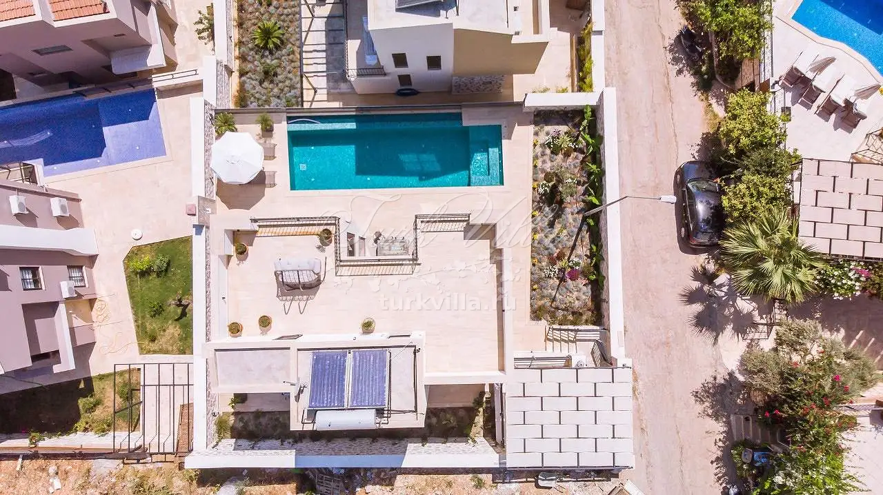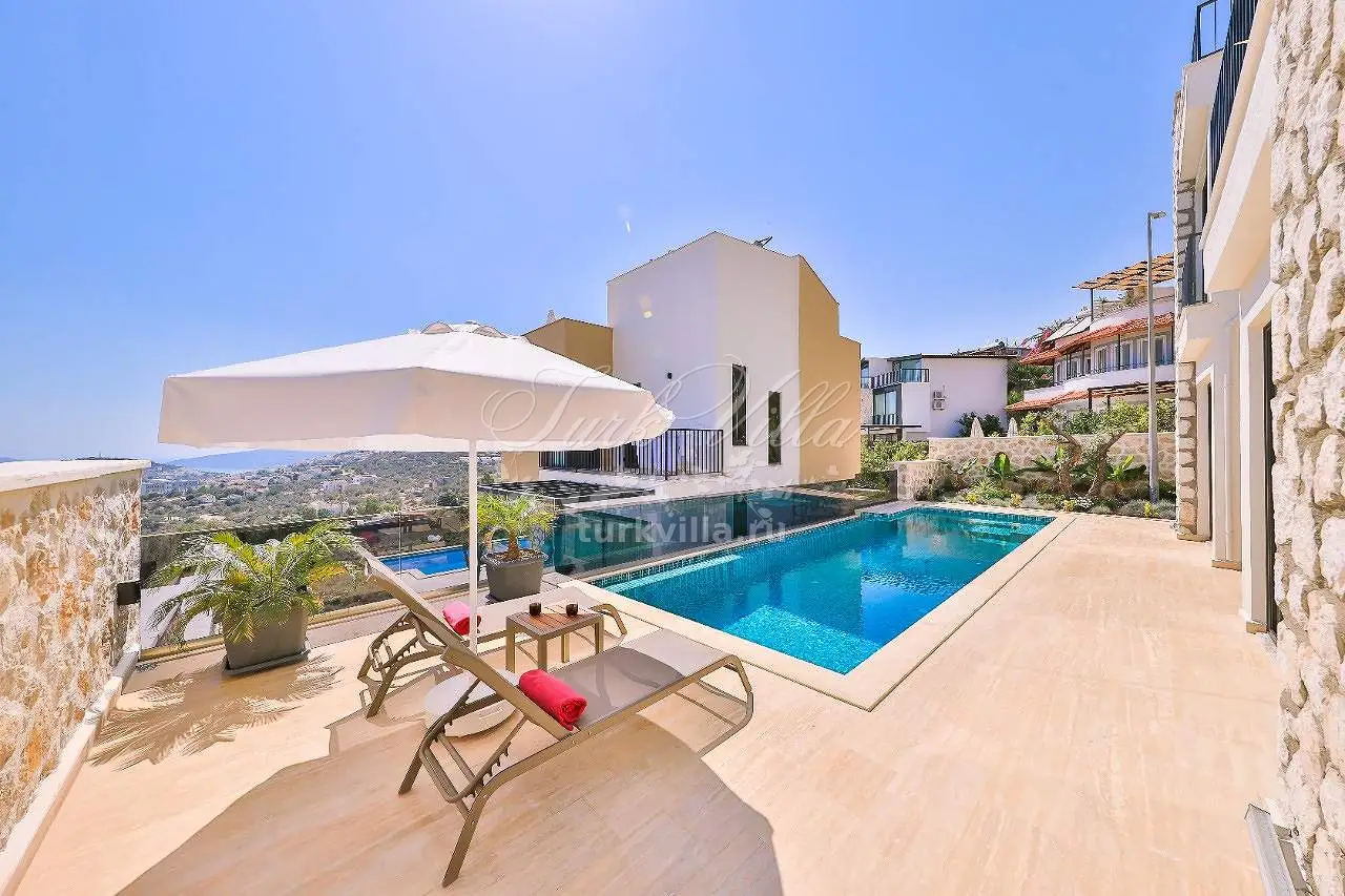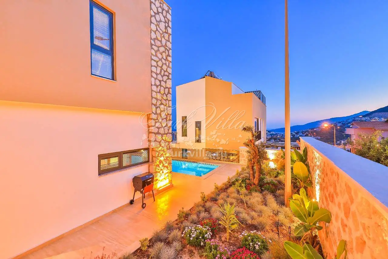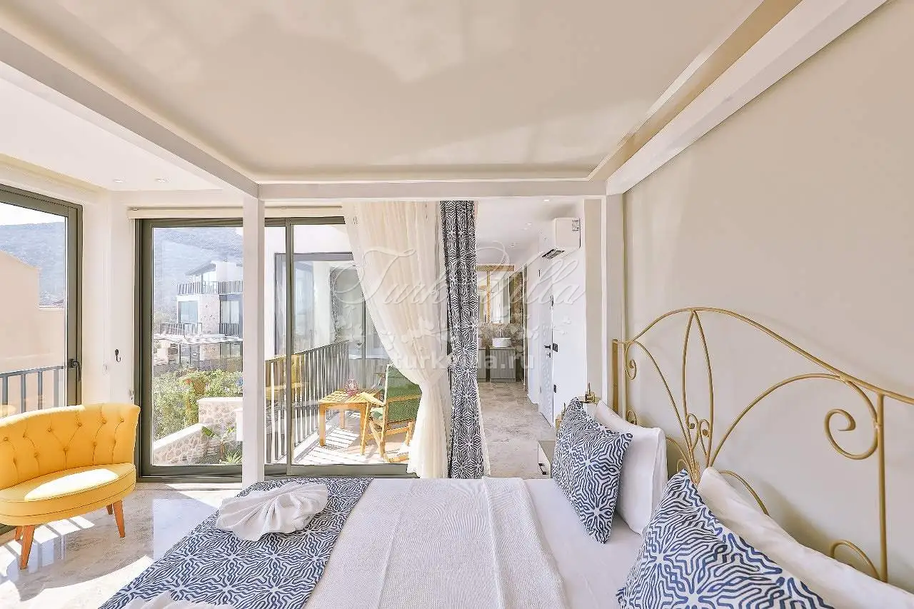 Роскошная вилла в аренду на 2 человека с просторным собственным бассейном, 1 спальней класса люкс, американской кухней и лаунджем с великолепным видом на море и природу Калкана. Подходит для молодоженов.