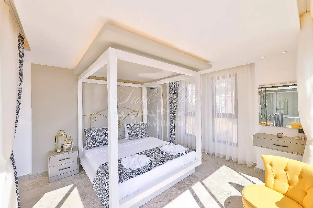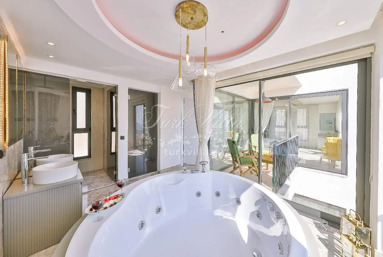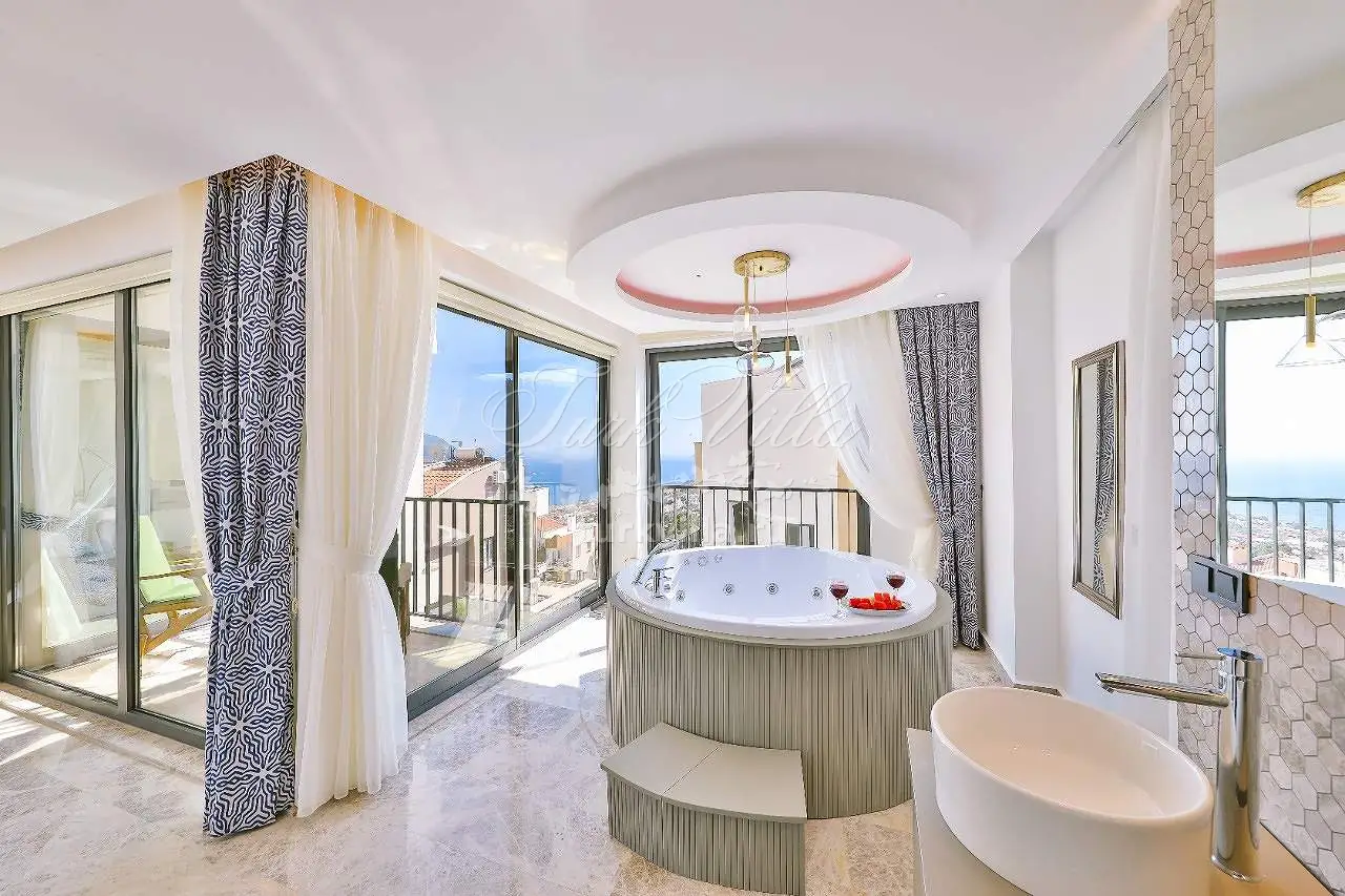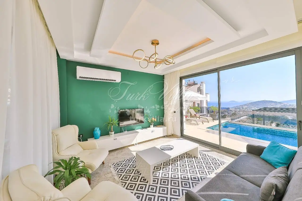 Роскошная вилла в аренду на 2 человека с просторным собственным бассейном, 1 спальней класса люкс, американской кухней и лаунджем с великолепным видом на море и природу Калкана. Подходит для молодоженов.