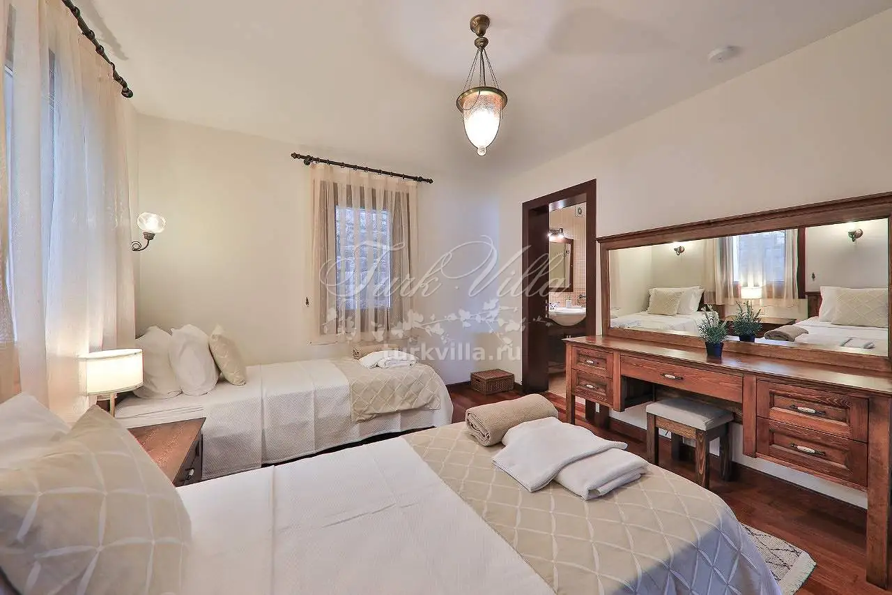 Спальня 3 - с двумя односпальными кроватями, есть кондиционер, тумбочка, диван, шкаф для одежды, санузел. Расположена на этаже бассейна.