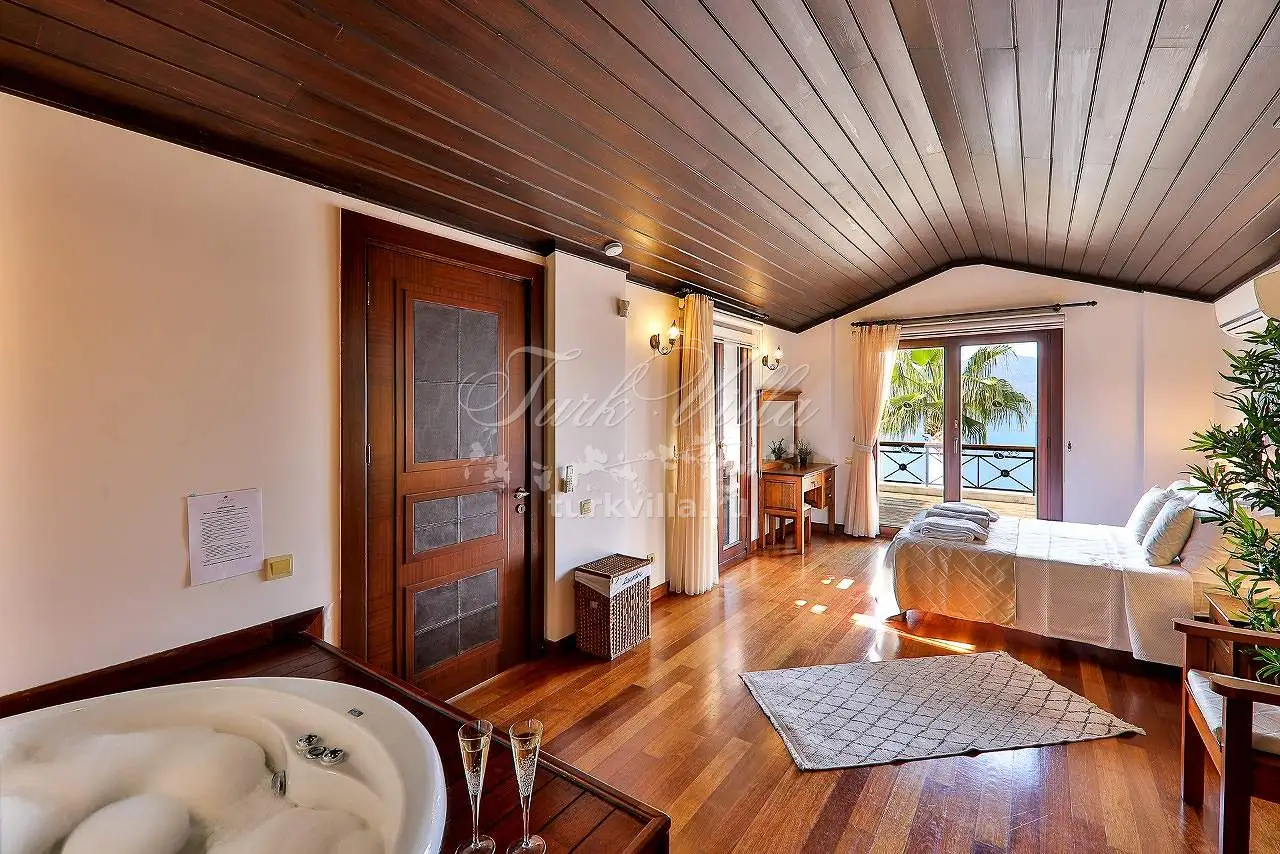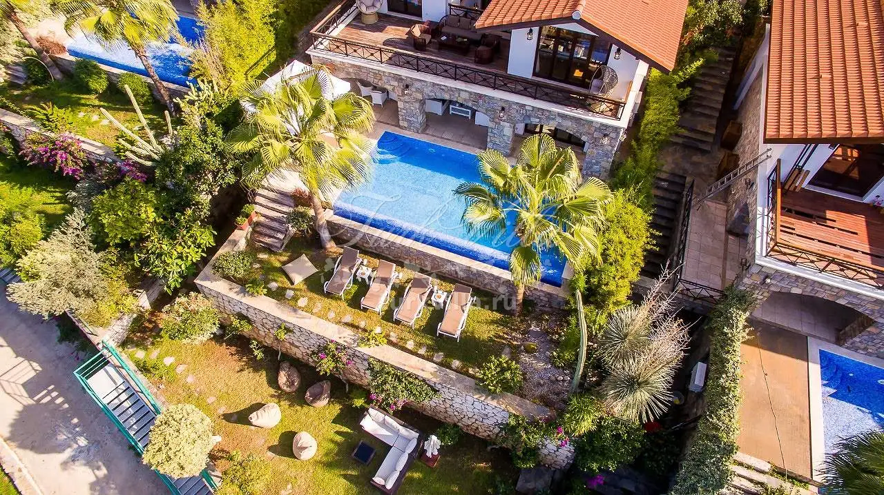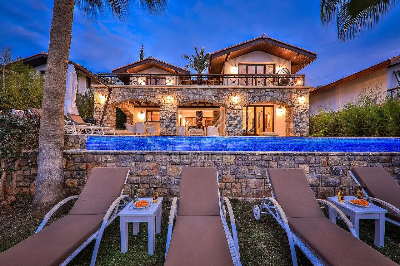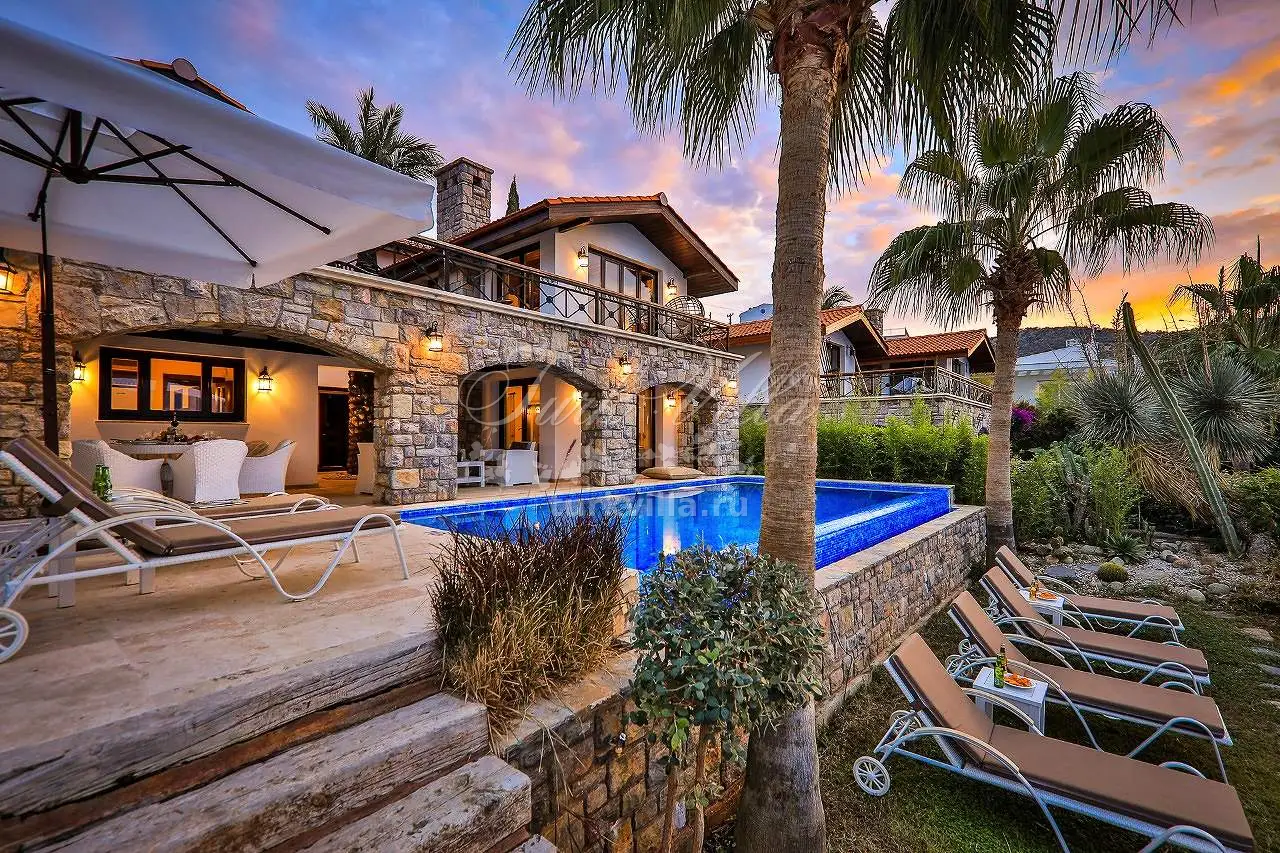 Наша роскошная вилла в аренду расположена в бухте Калкана, в тихом месте у подножия Торосских гор, где из всех спален открывается уникальный вид на море и природу. В непосредственной близости от виллы нет интенсивной застройки. Вилла представляет собой роскошное здание с 3 спальнями с собственным бассейном и пляжным пирсом среди пальм.