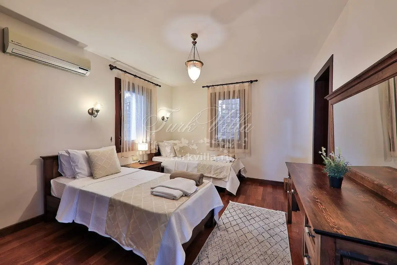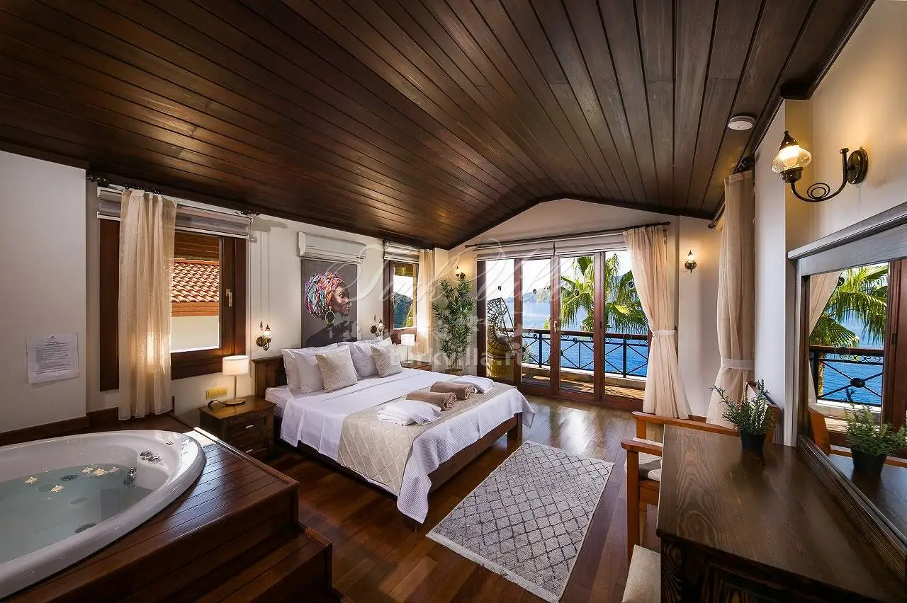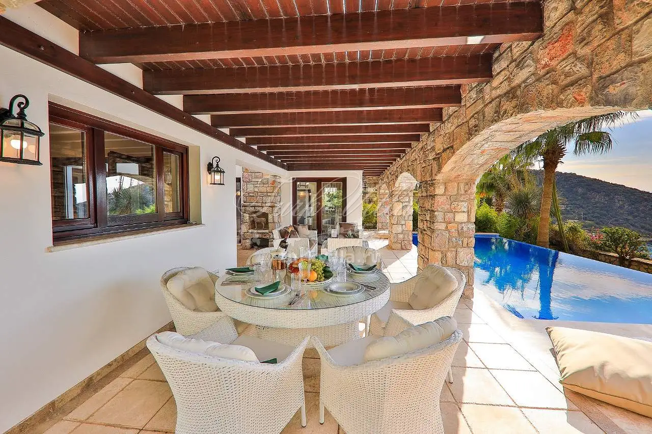 Наша роскошная вилла в аренду расположена в бухте Калкана, в тихом месте у подножия Торосских гор, где из всех спален открывается уникальный вид на море и природу. В непосредственной близости от виллы нет интенсивной застройки. Вилла представляет собой роскошное здание с 3 спальнями с собственным бассейном и пляжным пирсом среди пальм.