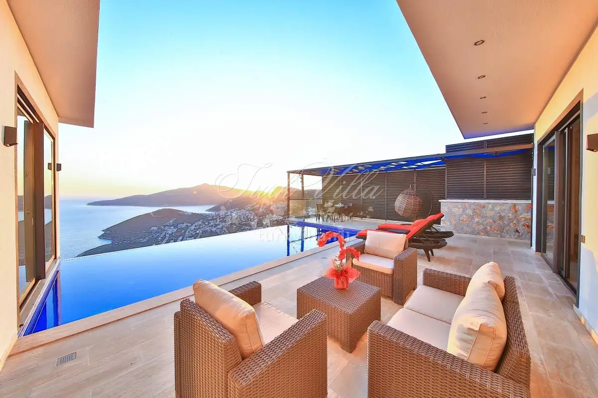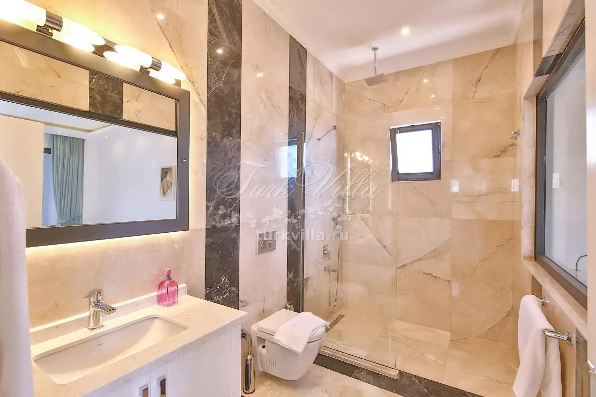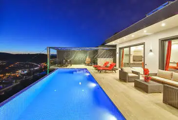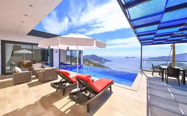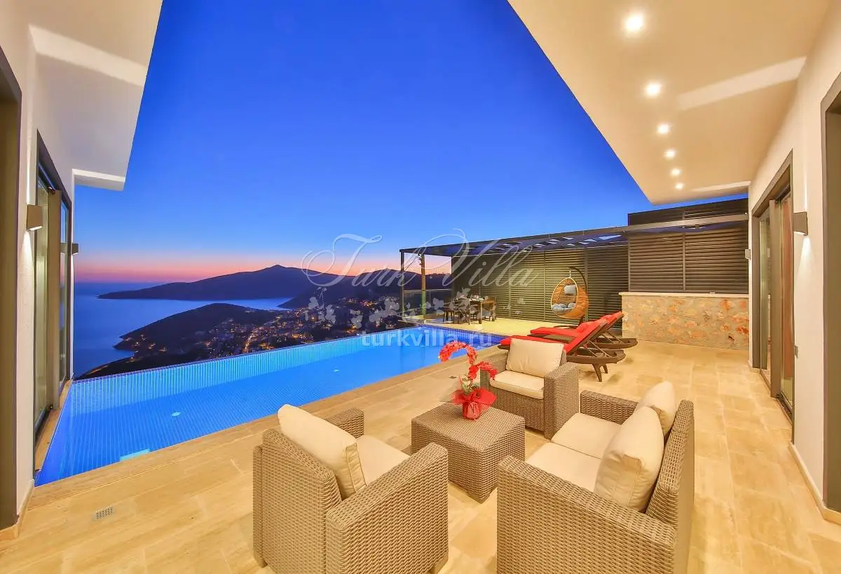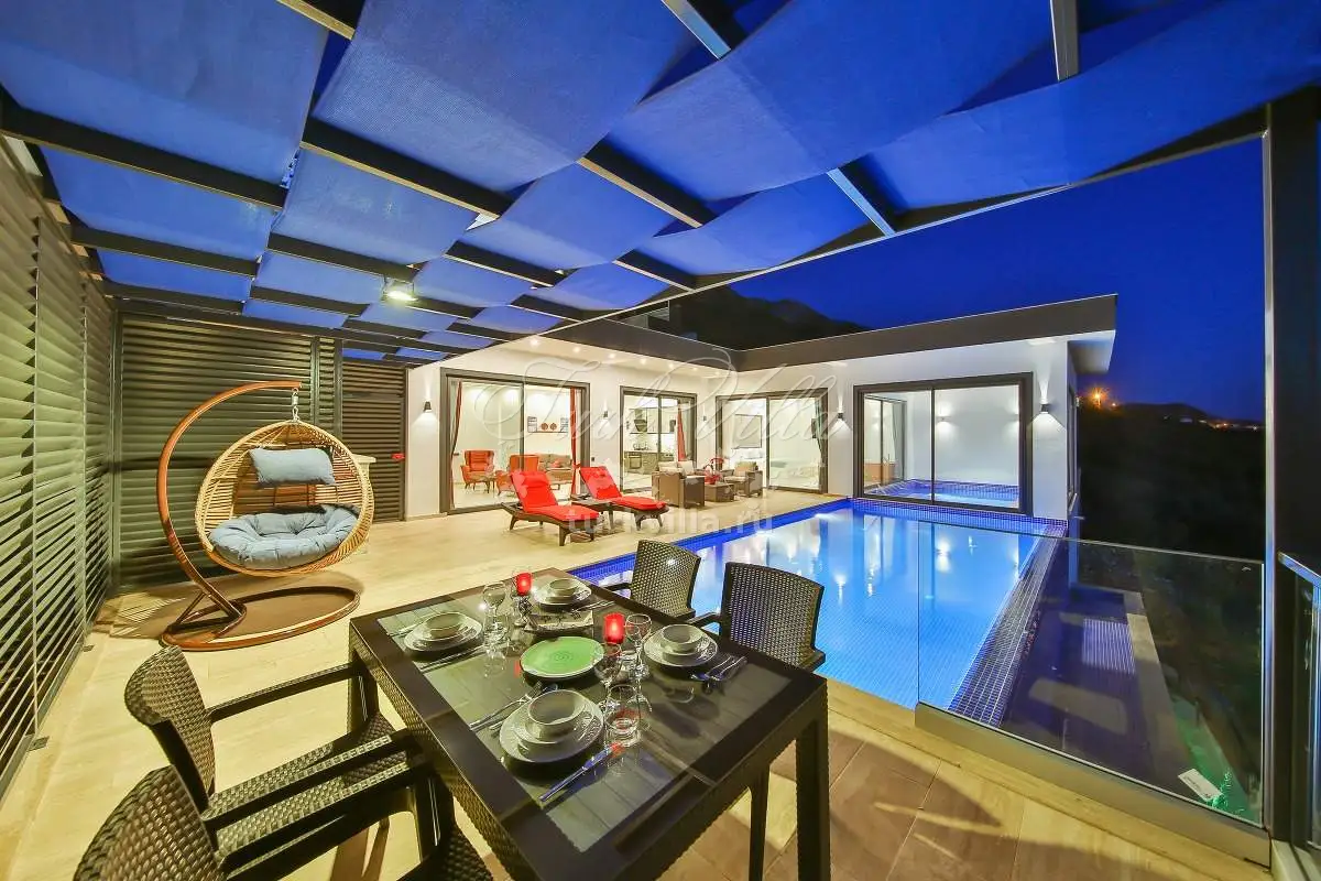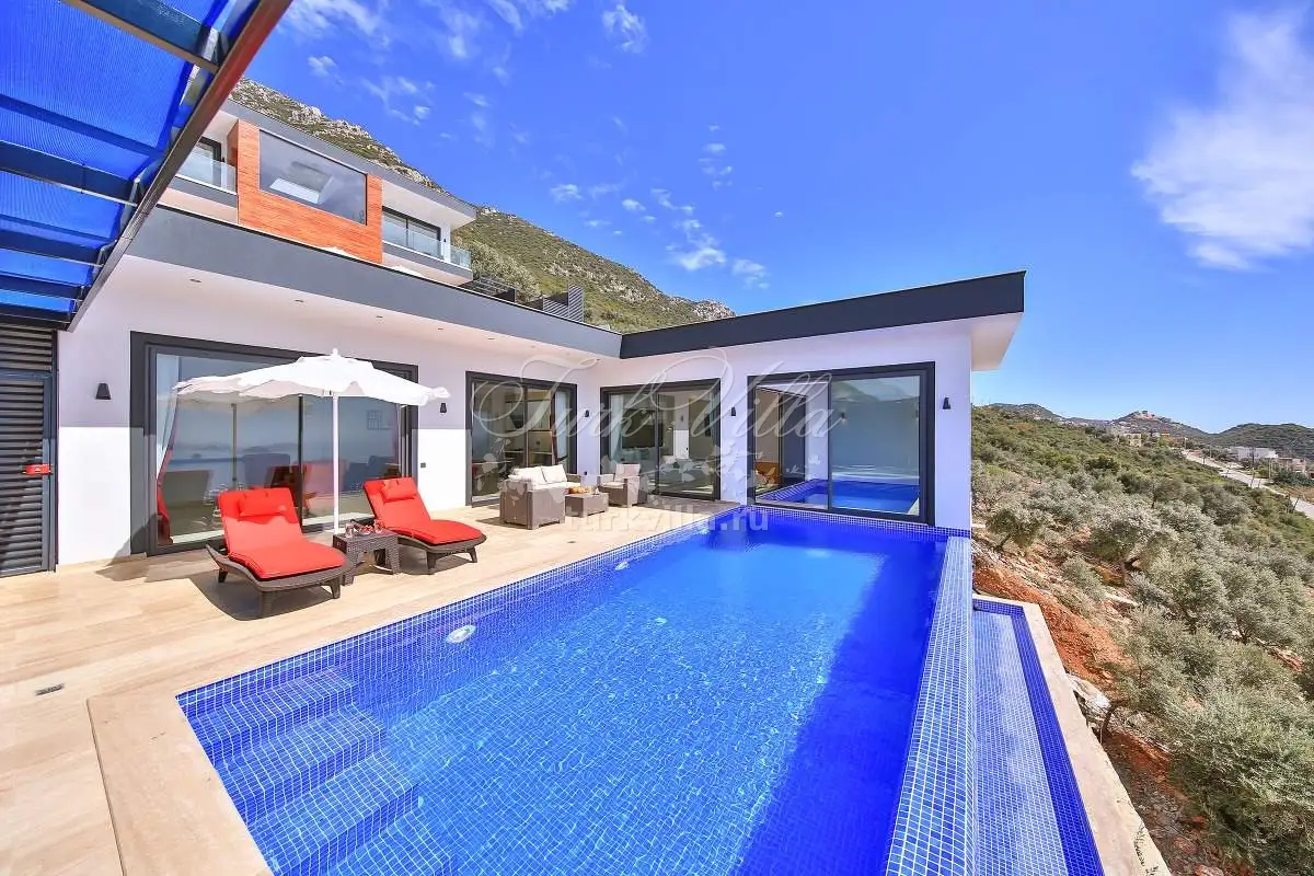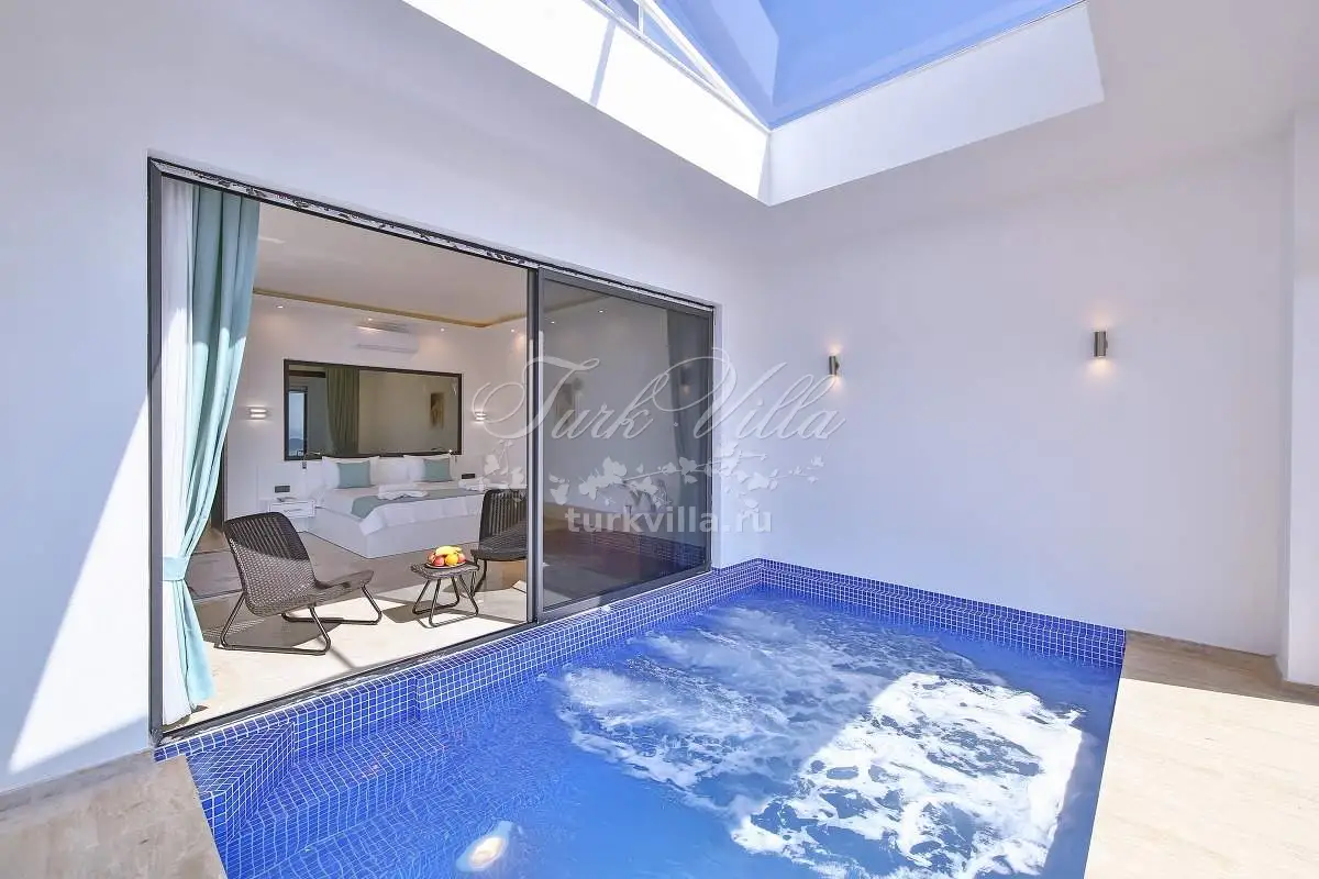 Наша роскошная вилла в аренду расположена в месте, переплетенном с природой, у подножия тихих спокойных гор Торос, где можно наблюдать день и ночь за пейзажем очаровательного Калкана, уникальным видом на море и природу из каждой комнаты. Вокруг виллы нет интенсивной застройки. Частный бассейн и сад нашей виллы защищены от глаз посторонних. В спальне установлено джакузи и бассейн со стеклянным потолком и видом на море. В связи с этим наша вилла является идеальным вариантом для отдыхающих и особенно молодоженов, которые хотят уединения.