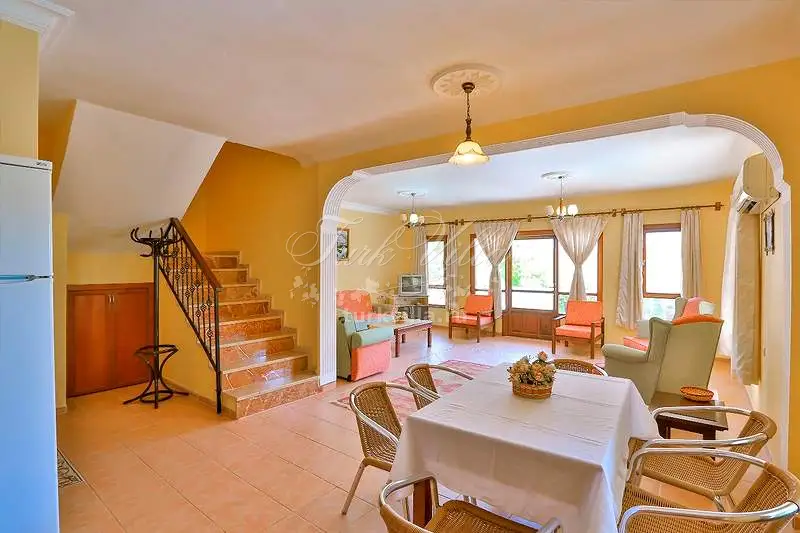 Комплекс вилл и апартаментов с общей ухоженной и очень зеленой территорией. В комплексе предоставляется круглосуточное обслуживание номеров. Вилла 3+1 имеет площадь 160м2, общий бассейн.