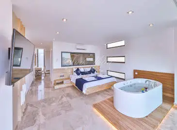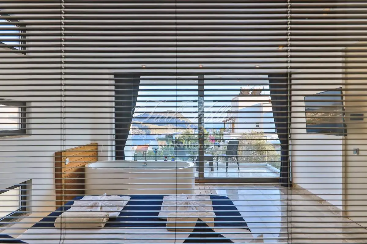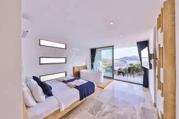 Спальня 3 – двуспальная кровать, вид на море и природу, телевизор, кондиционер, санузел, джакузи, балкон.
