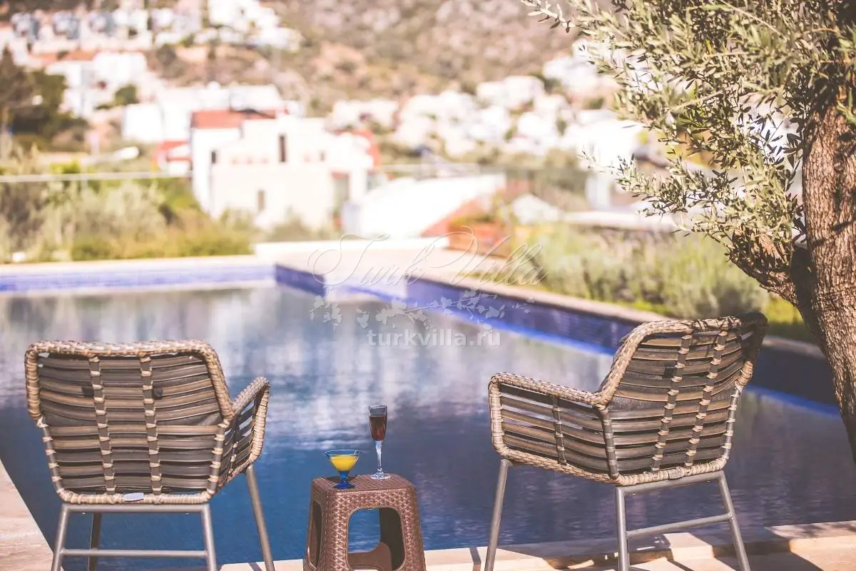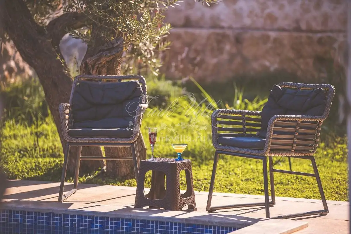 НА ТЕРРИТОРИИ виллы есть сад, частный бассейн, зона для принятия солнечных ванн, 8 шезлонгов, зонтик от солнца, мебель из ротанга, обеденный стол на 8 человек, барбекю.