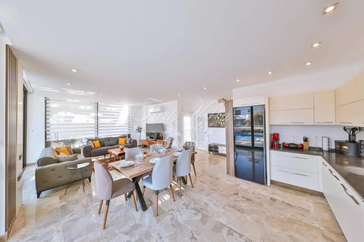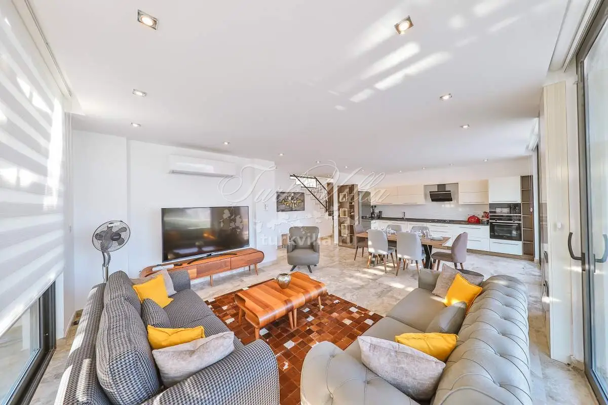Наша роскошная вилла в аренду расположена недалеко от центра Калкана и всего в 1000 метрах от моря. Из всех комнат виллы открывается незабываемый вид на море и окрестности Калкана. Вилла подойдет для отдыха семьи из 8 человек.