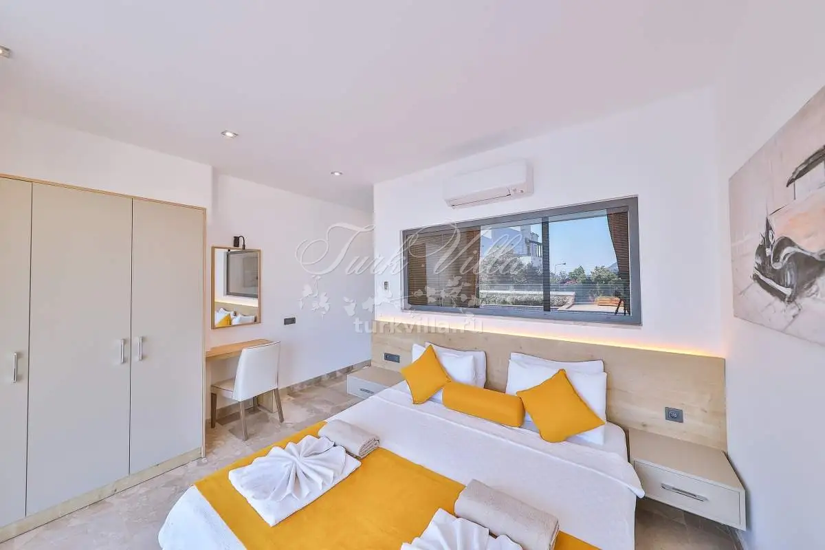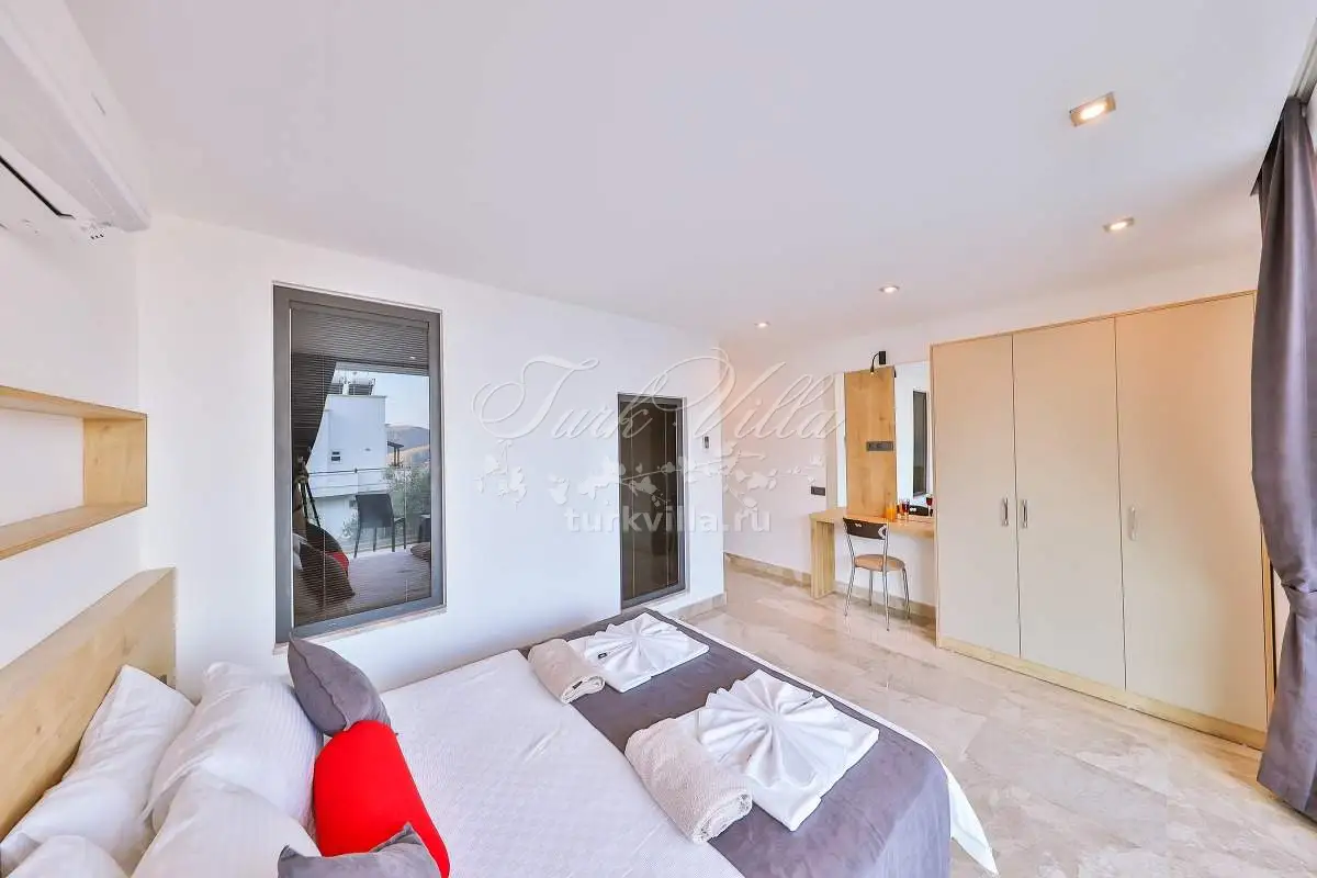 Спальня 1 – двуспальная кровать, кондиционер, санузел, выход на террасу у бассейна.