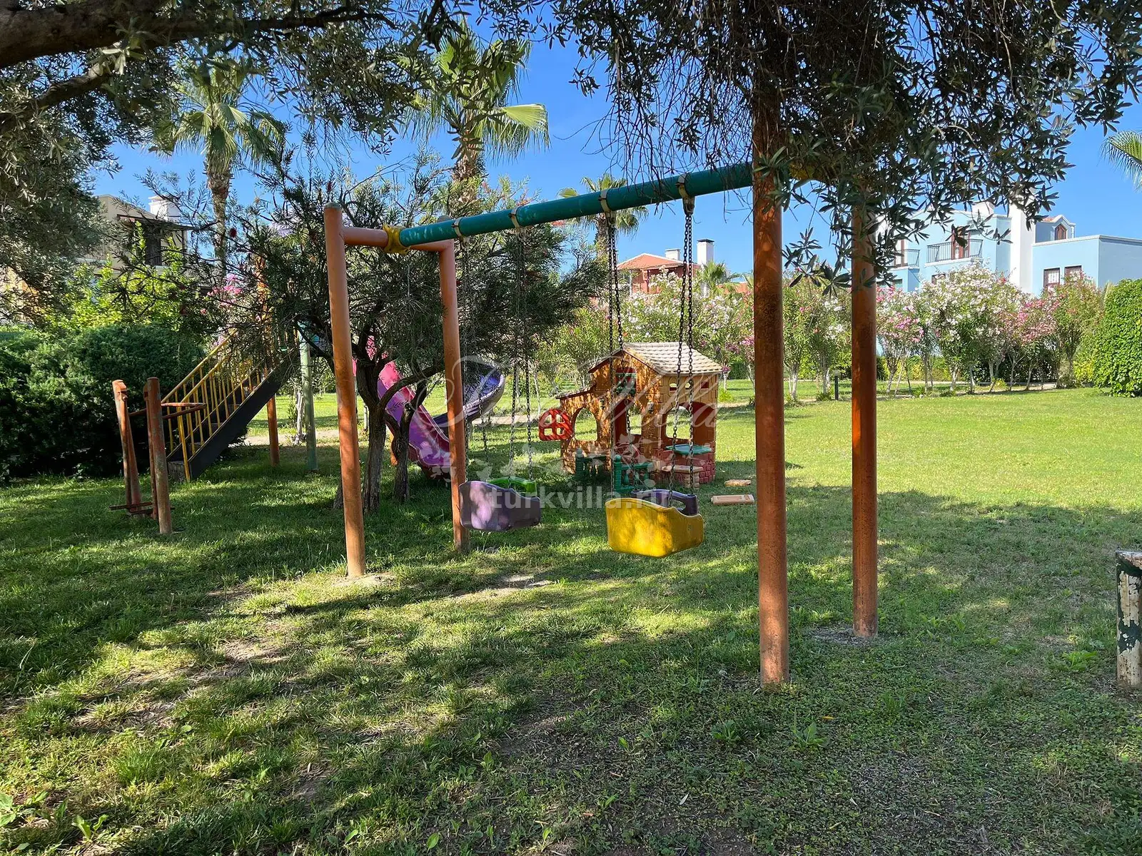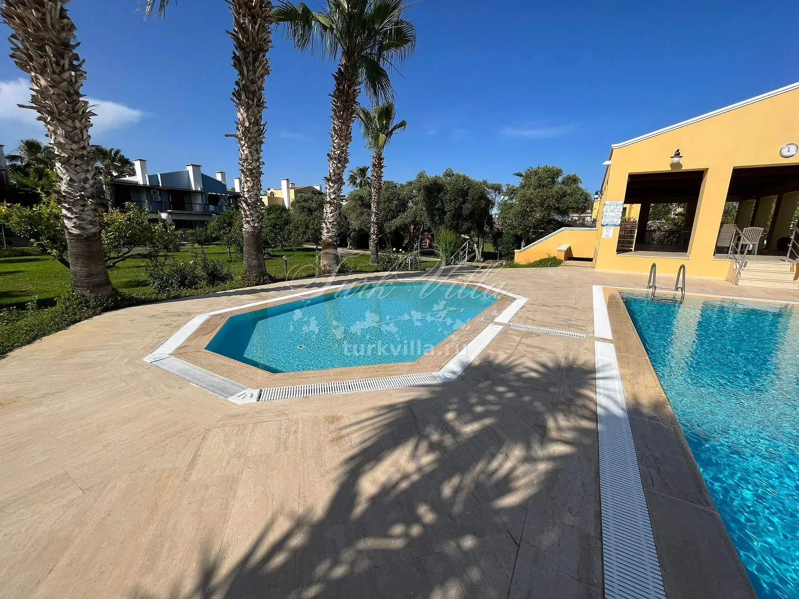 В комплексе общий бассейн, баскетбольная площадка, детский парк.