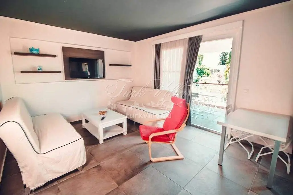 Уютные апартаменты, расположенные в живописном жилом комплексе в 300 метрах от моря. Комплекс находится в центре района Ортакент Бодрум.