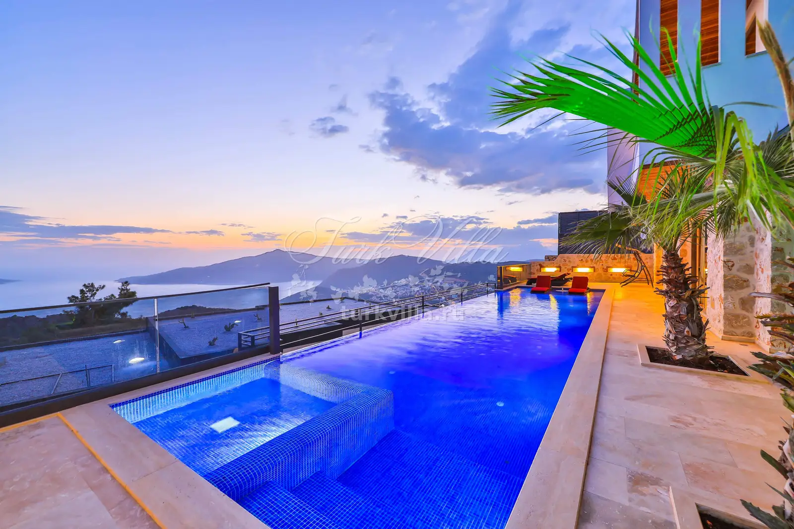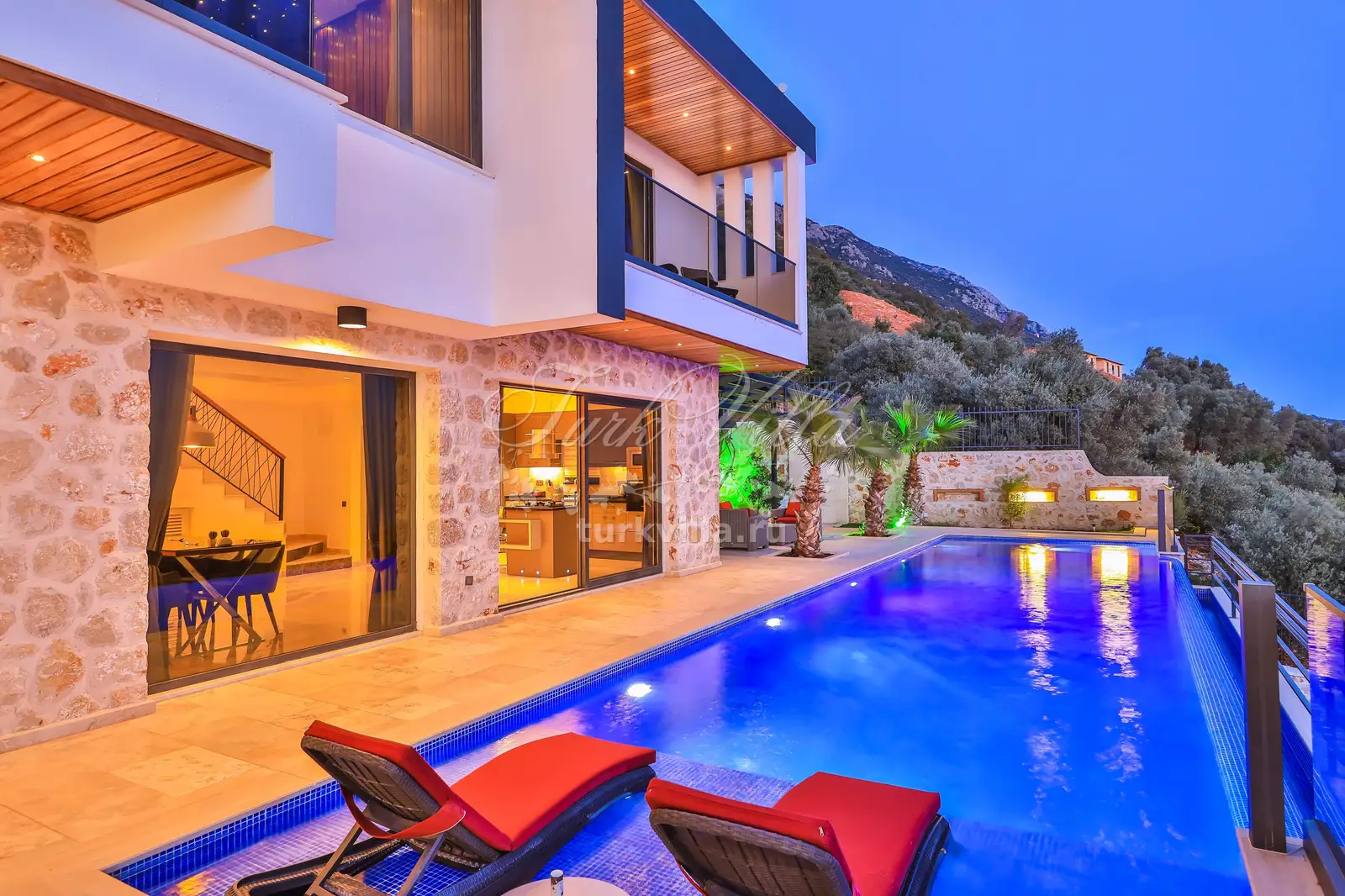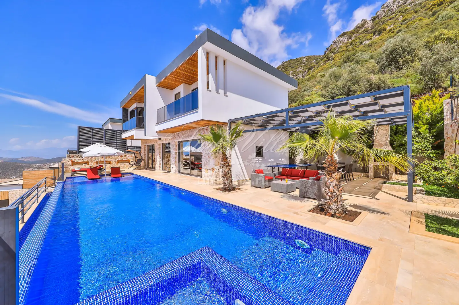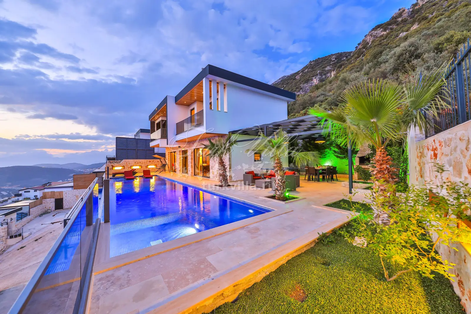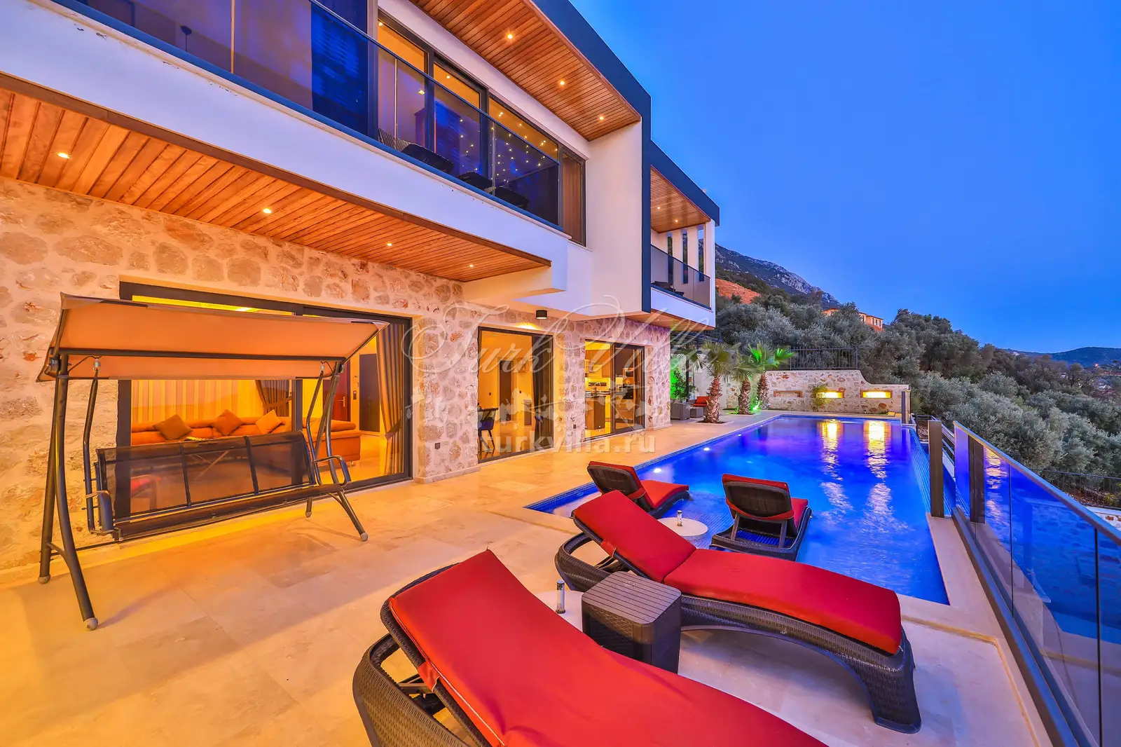 Наша роскошная вилла в аренду расположена в районе Калкана - Кёрдере, у подножия Таврских гор, в точке соприкосновения с природой, где днем и ночью можно наблюдать уникальный вид на море и необыкновенный Калкан. Вокруг виллы нет плотной застройки. Благодаря особому архитектурному решению, частный бассейн и сад виллы не видны посторонним. В этом плане наша вилла – идеальный вариант для отдыхающих, которые хотят быть вне поля зрения. По вечерам вы можете наблюдать великолепные огни Калкана и отражение звездного неба и луны в море. Вы можете провести незабываемый отпуск вдали от городского шума, но с великолепным видом на город и море.