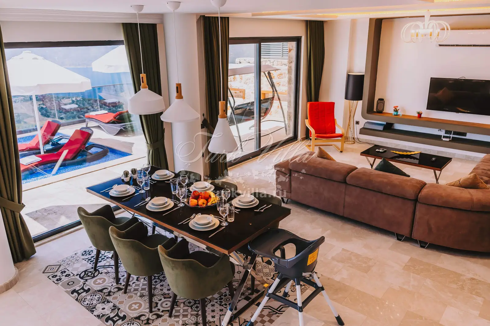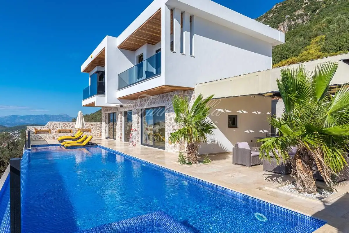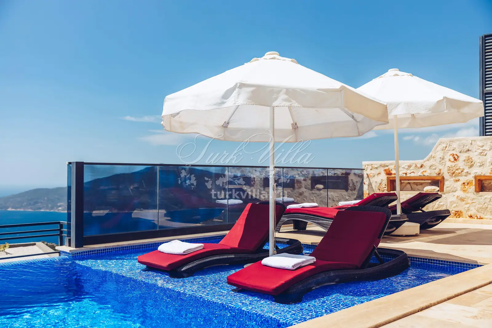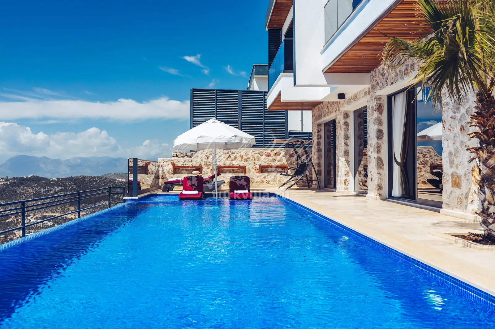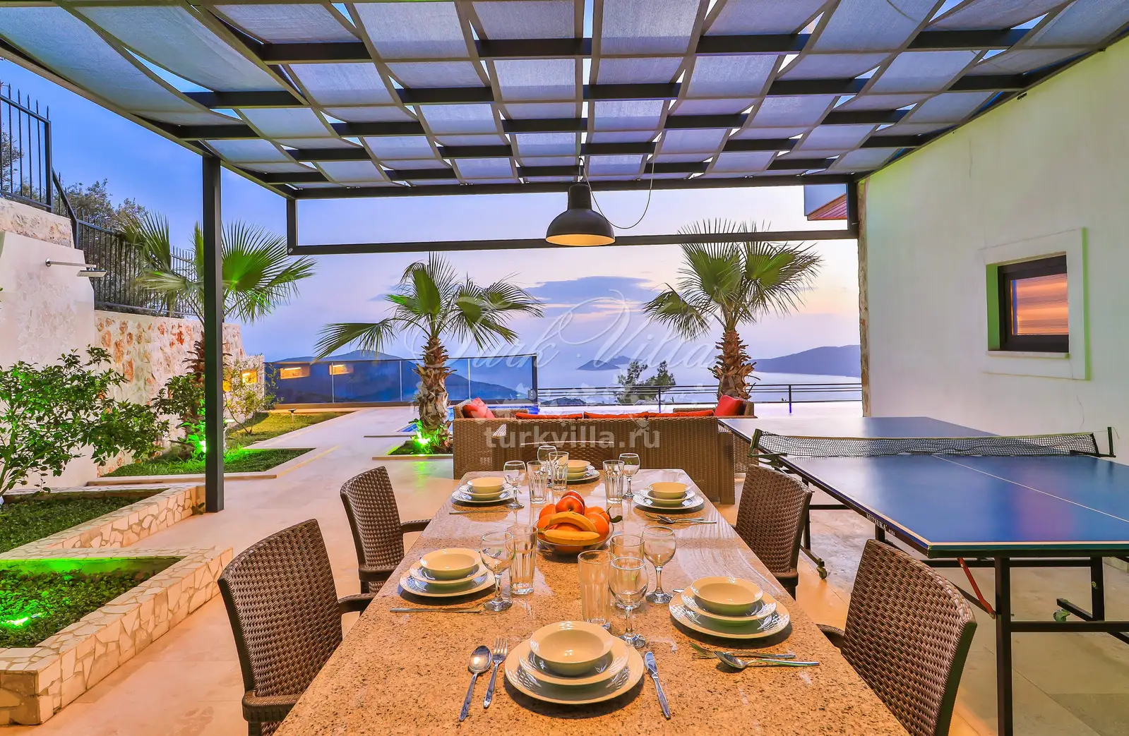 Наша роскошная вилла в аренду расположена в районе Калкана - Кёрдере, у подножия Таврских гор, в точке соприкосновения с природой, где днем и ночью можно наблюдать уникальный вид на море и необыкновенный Калкан. Вокруг виллы нет плотной застройки. Благодаря особому архитектурному решению, частный бассейн и сад виллы не видны посторонним. В этом плане наша вилла – идеальный вариант для отдыхающих, которые хотят быть вне поля зрения. По вечерам вы можете наблюдать великолепные огни Калкана и отражение звездного неба и луны в море. Вы можете провести незабываемый отпуск вдали от городского шума, но с великолепным видом на город и море.