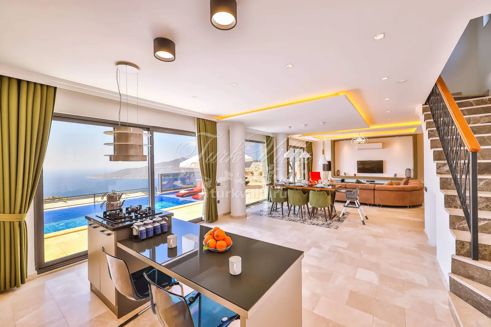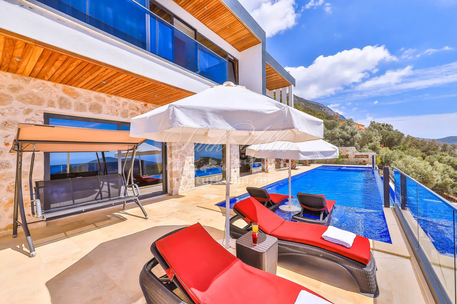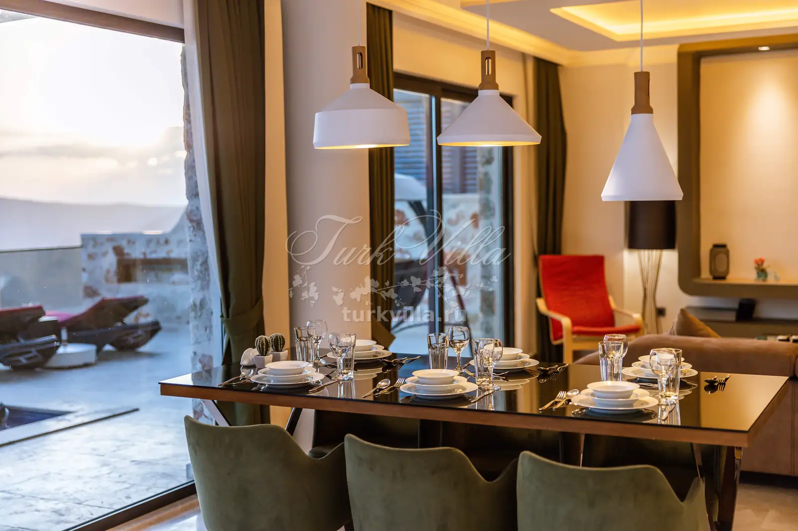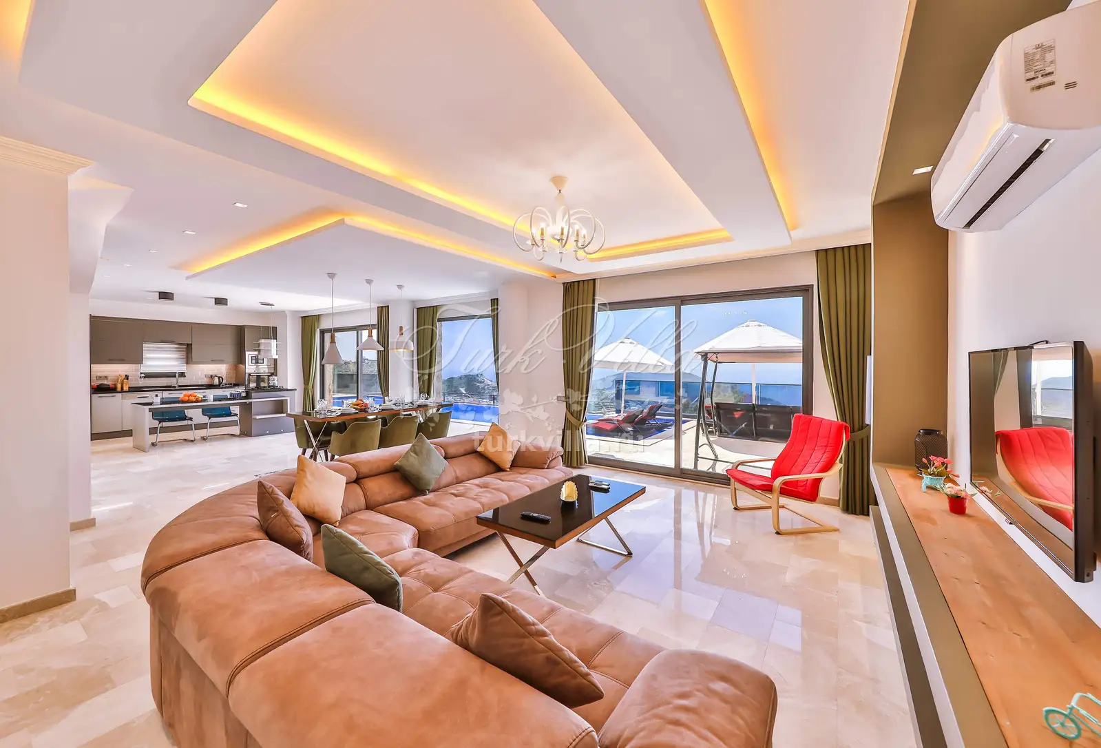 Наша роскошная вилла в аренду расположена в районе Калкана - Кёрдере, у подножия Таврских гор, в точке соприкосновения с природой, где днем и ночью можно наблюдать уникальный вид на море и необыкновенный Калкан. Вокруг виллы нет плотной застройки. Благодаря особому архитектурному решению, частный бассейн и сад виллы не видны посторонним. В этом плане наша вилла – идеальный вариант для отдыхающих, которые хотят быть вне поля зрения. По вечерам вы можете наблюдать великолепные огни Калкана и отражение звездного неба и луны в море. Вы можете провести незабываемый отпуск вдали от городского шума, но с великолепным видом на город и море.