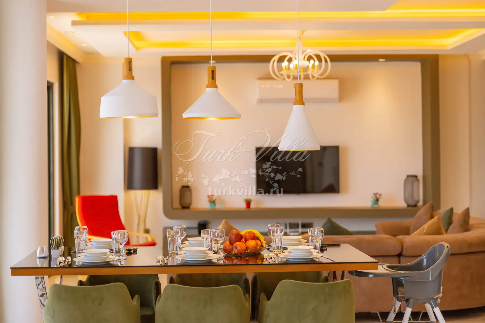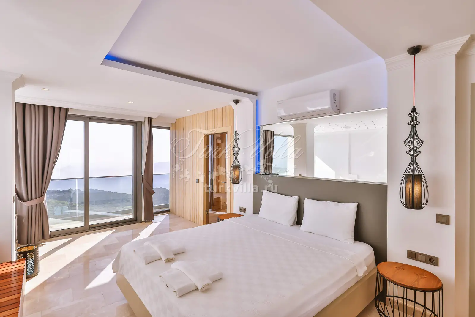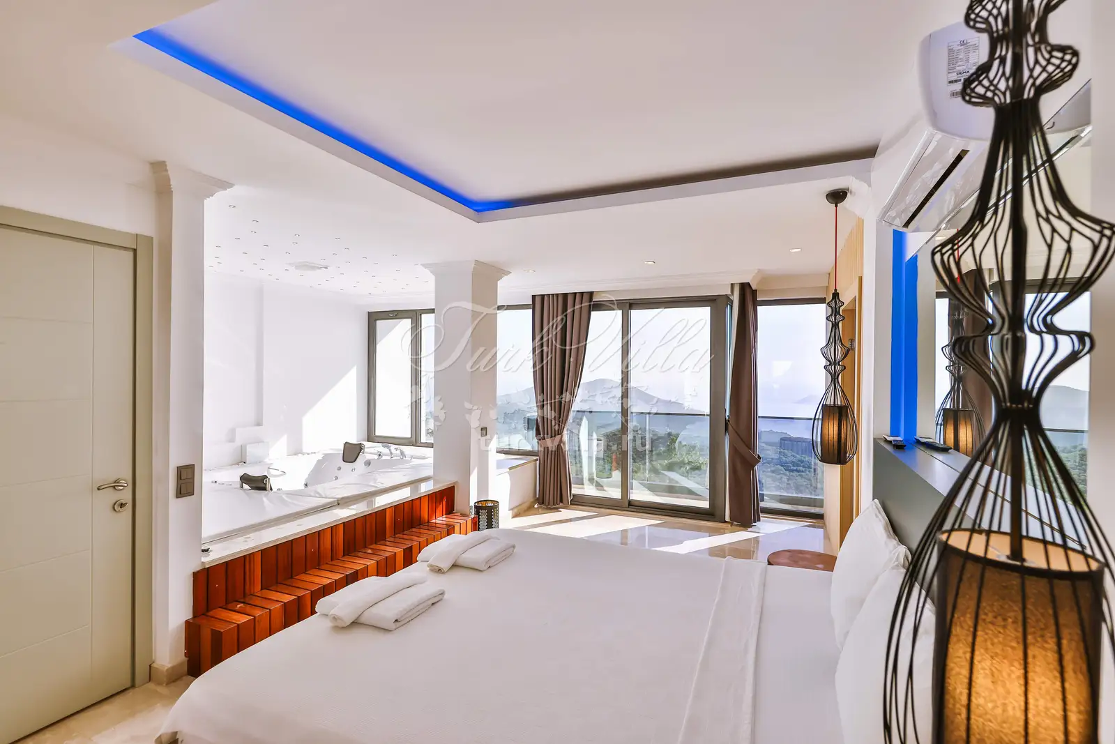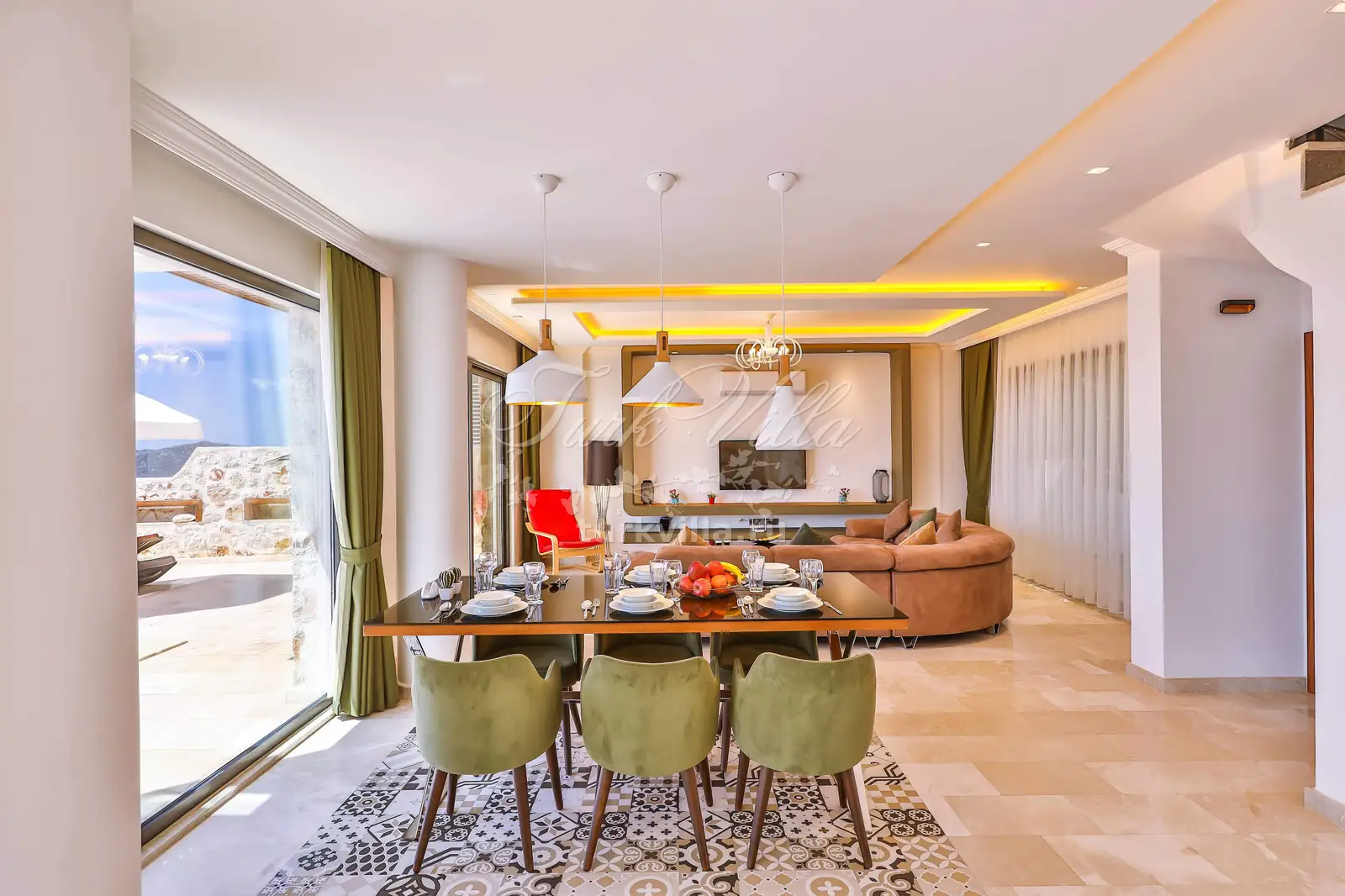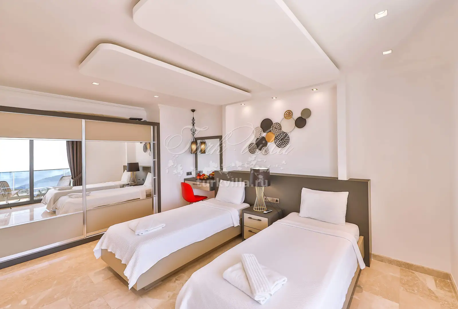 Наша роскошная вилла в аренду расположена в районе Калкана - Кёрдере, у подножия Таврских гор, в точке соприкосновения с природой, где днем и ночью можно наблюдать уникальный вид на море и необыкновенный Калкан. Вокруг виллы нет плотной застройки. Благодаря особому архитектурному решению, частный бассейн и сад виллы не видны посторонним. В этом плане наша вилла – идеальный вариант для отдыхающих, которые хотят быть вне поля зрения. По вечерам вы можете наблюдать великолепные огни Калкана и отражение звездного неба и луны в море. Вы можете провести незабываемый отпуск вдали от городского шума, но с великолепным видом на город и море.