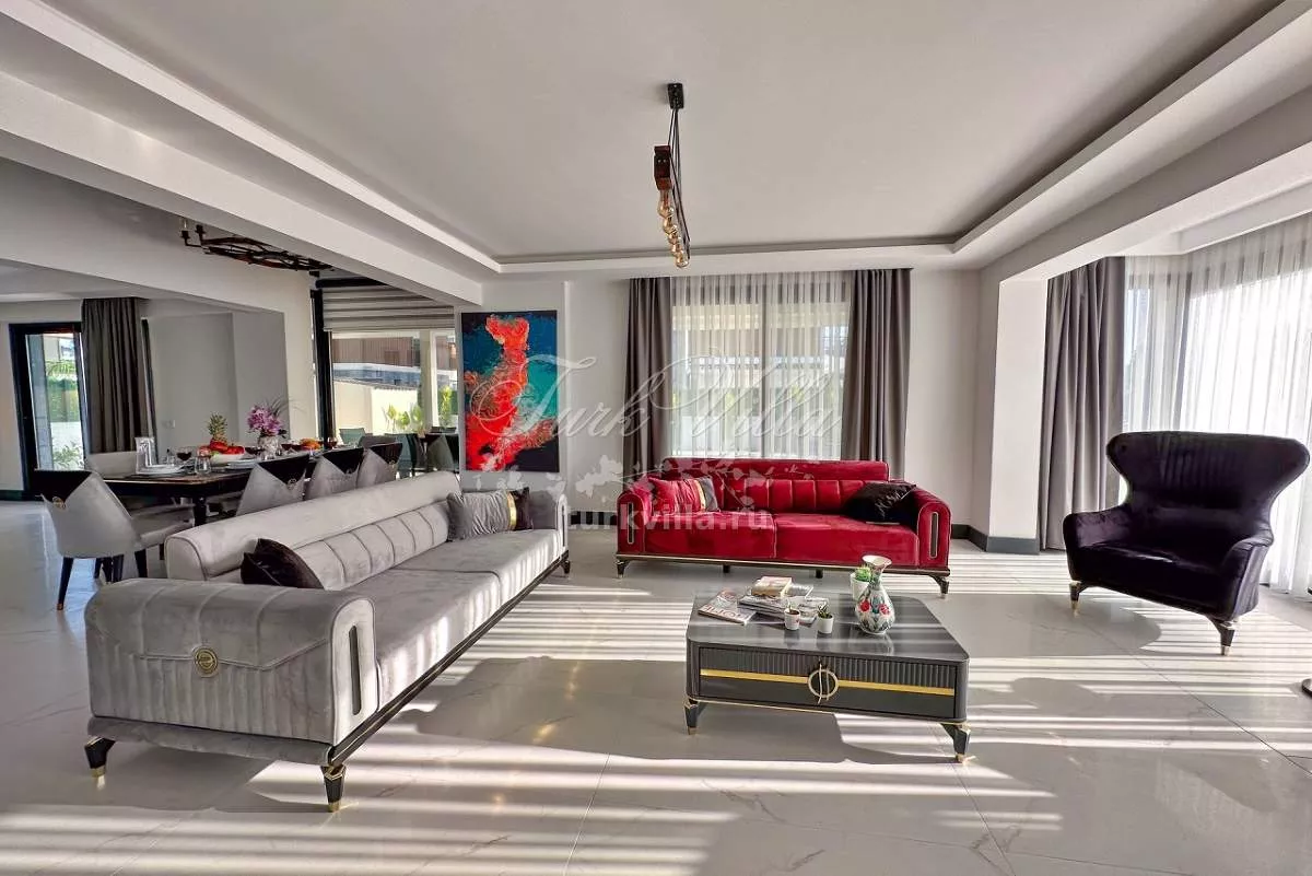 Внутри виллы вы найдете стильно оформленные интерьеры современного дизайна, которые создают атмосферу уюта и роскоши. Просторная гостиная и полностью оборудованная кухня станут идеальными местами для семейных посиделок и приготовления вкусных блюд. Здесь вы можете провести время с близкими и насладиться взаимодействием и разговорами.