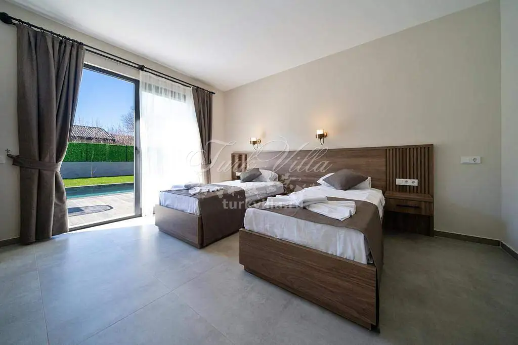 Вилла располагает двумя просторными спальнями, где гости могут наслаждаться уютом и комфортом. Каждая спальня оборудована удобной мебелью, качественным постельным бельем и обеспечивает прекрасную атмосферу для отдыха после долгого дня.