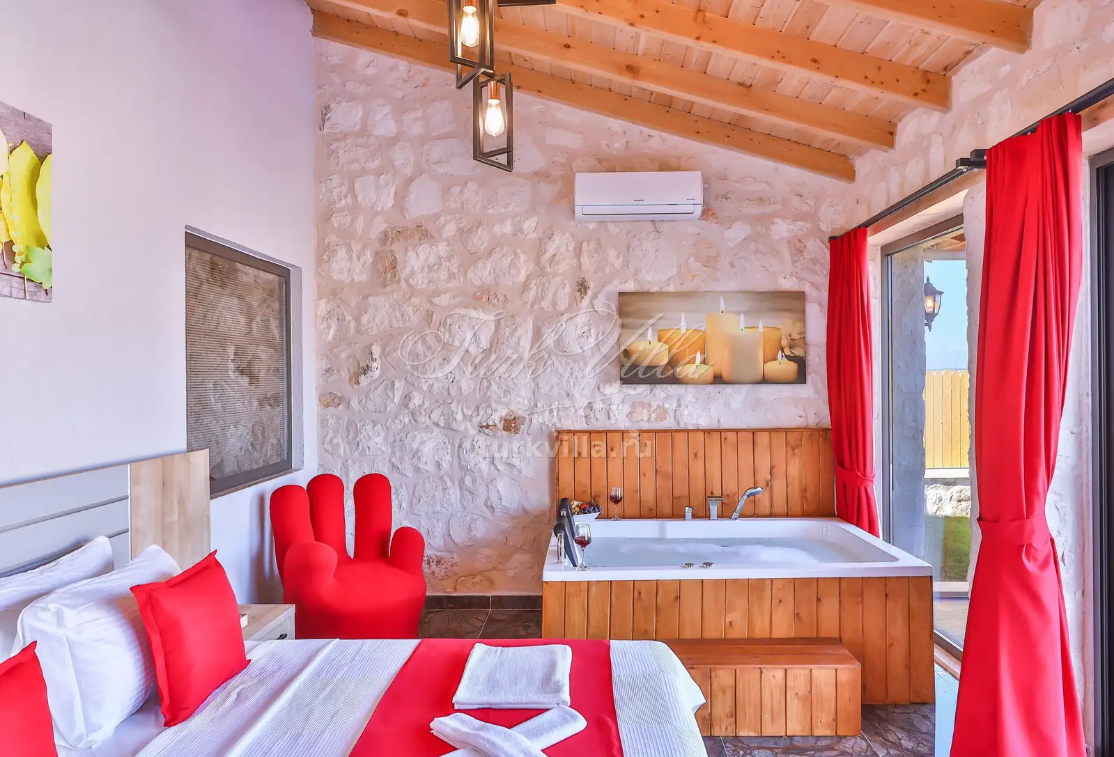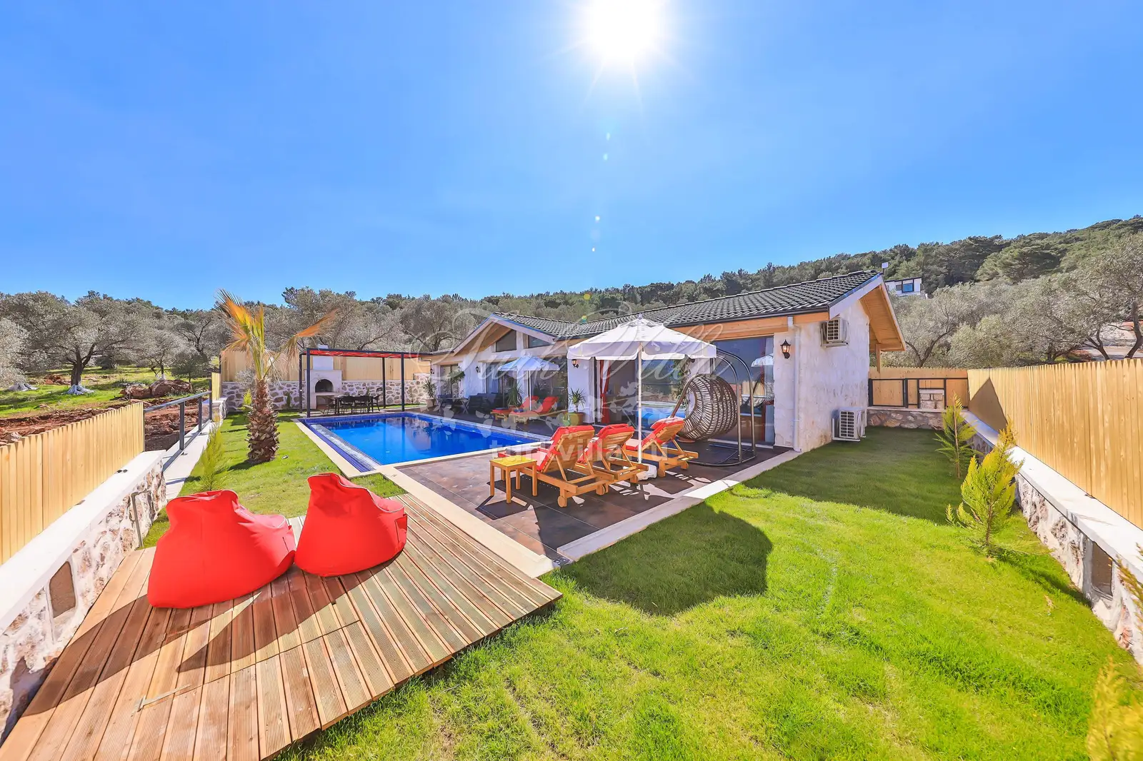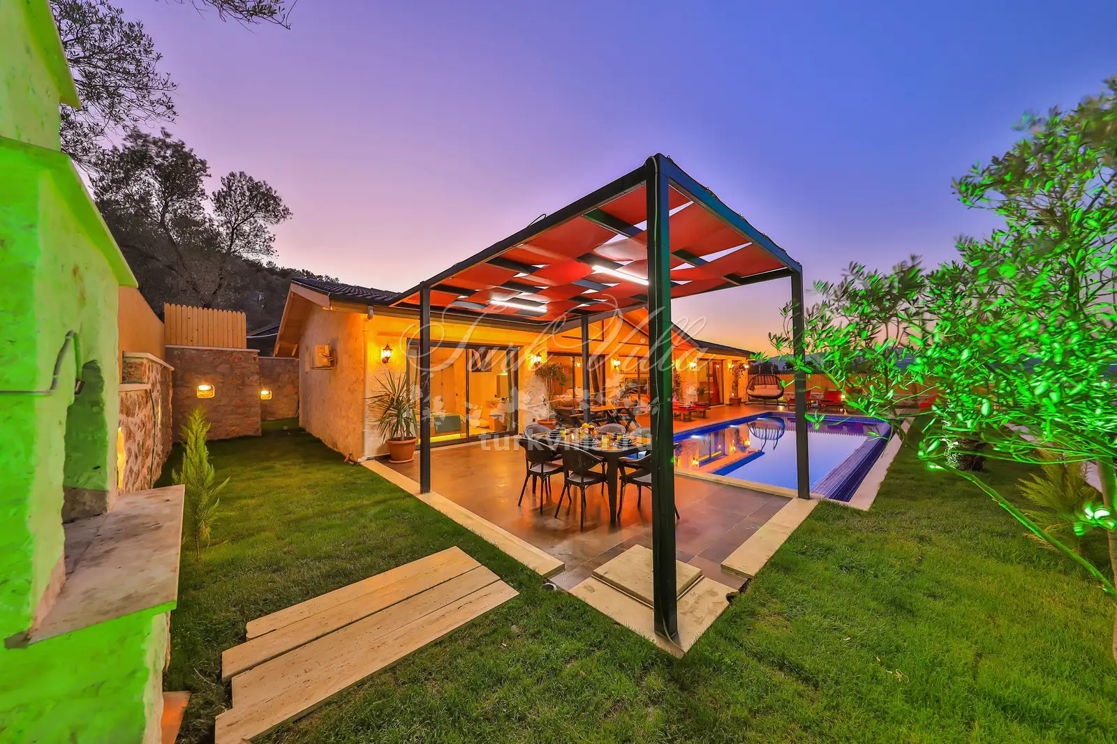 Наша романтическая вилла, расположенная в уединенном месте среди соснового леса в районе Ешилькёй, Калкан, имеет две спальни, американскую кухню и гостиную с видом на природу. Гости, которые хотят провести отпуск в нашем летнем домике, будут наслаждаться открытым бассейном и отдыхом в тесном контакте с природой. Великолепный отдых ждет вас в непосредственной близости от пляжа Патара.