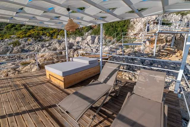 Примечание: На этой вилле предоставляется частная платформа для купания в море. Она доступна только для постояльцев виллы и находится на расстоянии примерно 70-80 метров ходьбы от виллы.