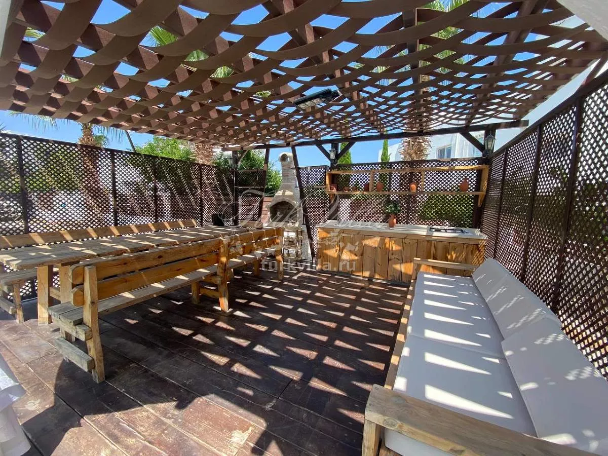 Просторная терраса, где вы можете насладиться прекрасными видами и свежим воздухом. Здесь вы найдете обеденный стол и мангал, создавая идеальную обстановку для ужинов под открытым небом в кругу близких.