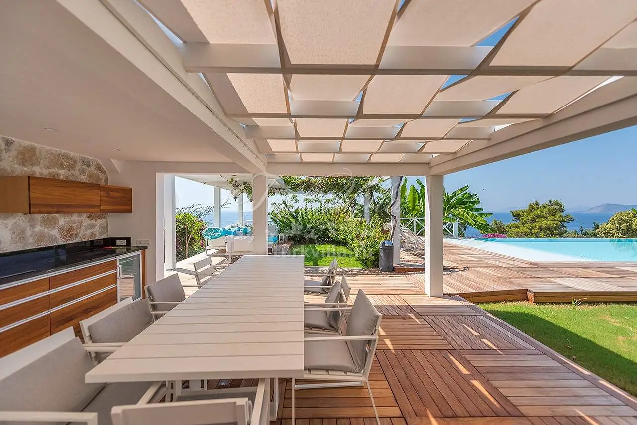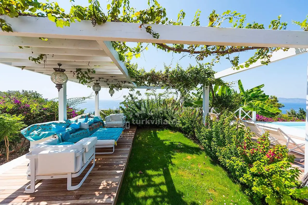 Вилла с собственным бассейном в огромным садом подходит для уединенного отдыха семьи из десяти человек. Наша вилла находится в 300 метрах от моря. Бассейн защищен от посторонних глаз и идеально подходит для консервативных семей. Пятая спальня нашей виллы находится за пределами основного здания и оформлена в виде гостевого домика.