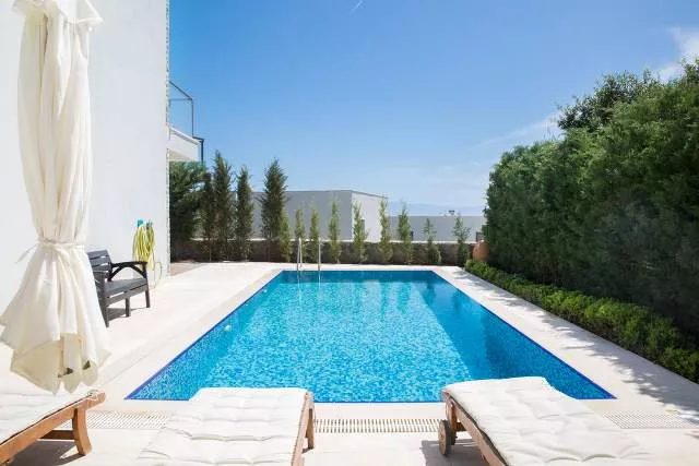 Частный бассейн, сад, вид на море с верхнего этажа.