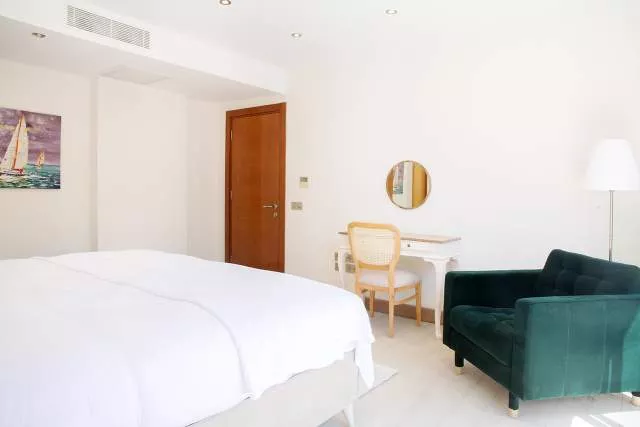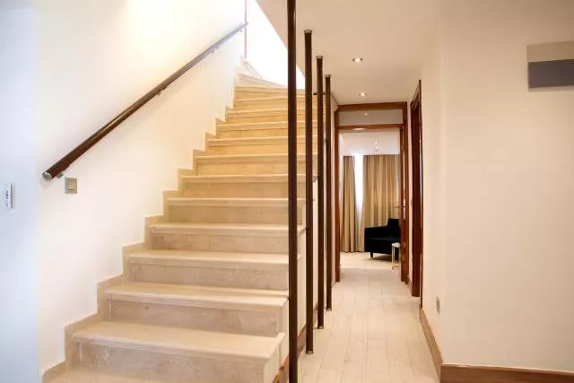 Первый этаж: 3 спальни с выходом в сад и к бассейну, общая ванная комната, прачечная.