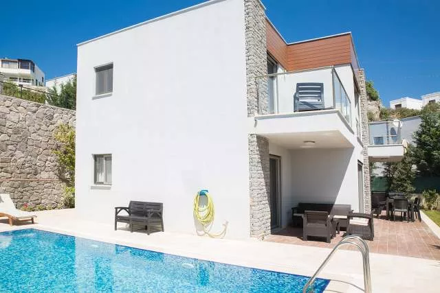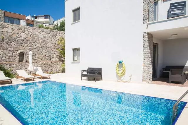 Вилла с частным бассейном и видом на залив Гюмбет. Расположена всего в 10 минутах ходьбы от центра и пляжа, а также недалеко от магазинов, ресторанов и пабов. Это одна из лучших вилл для аренды в Гюмбете и отличный выбор для семей, ищущих расслабляющий отдых в Бодруме.