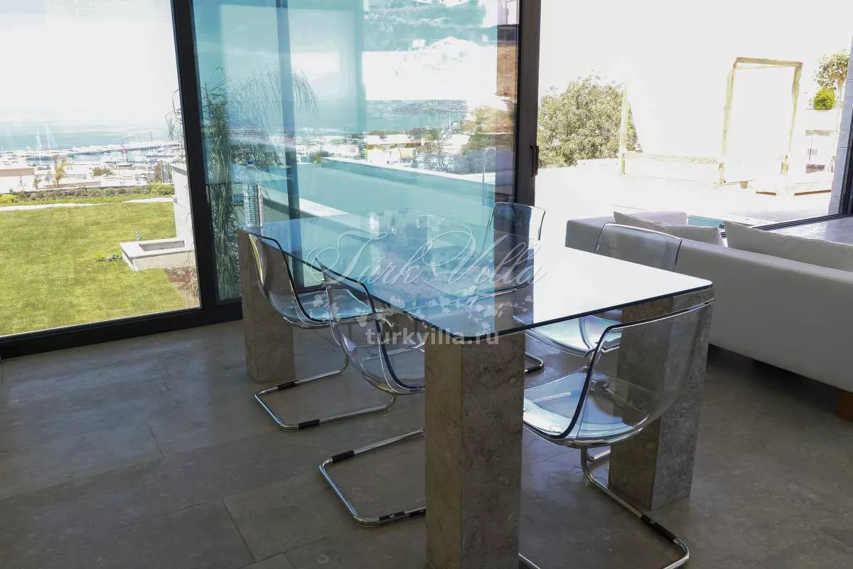 Площадь участка составляет 1000 м², жилая площадь – 600 м². Вилла включает в себя: