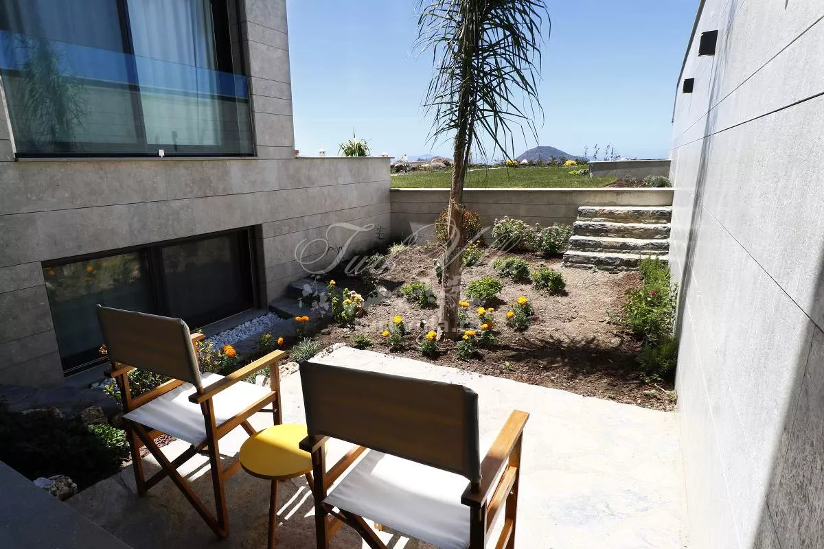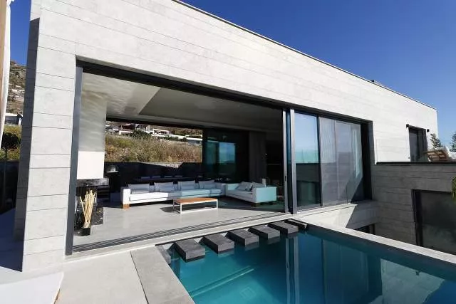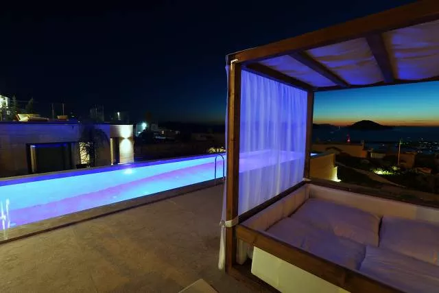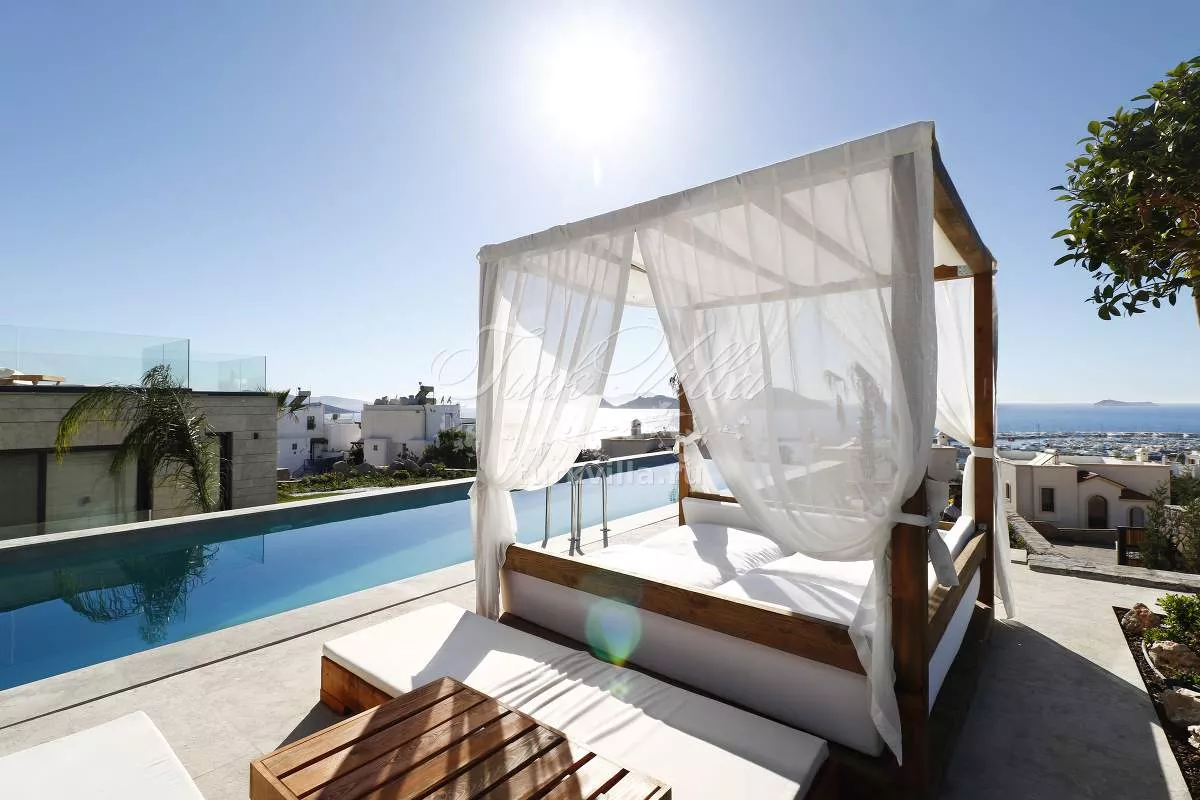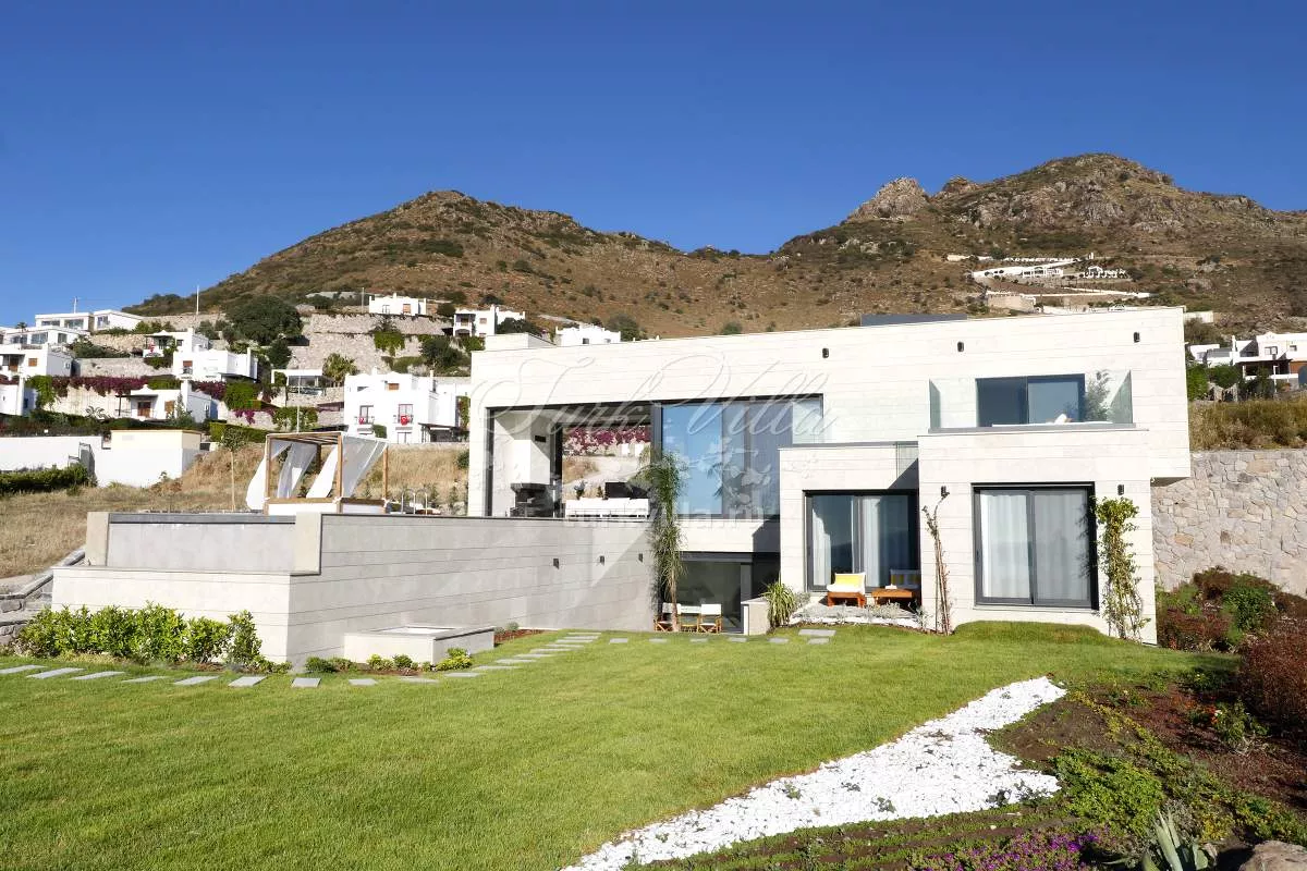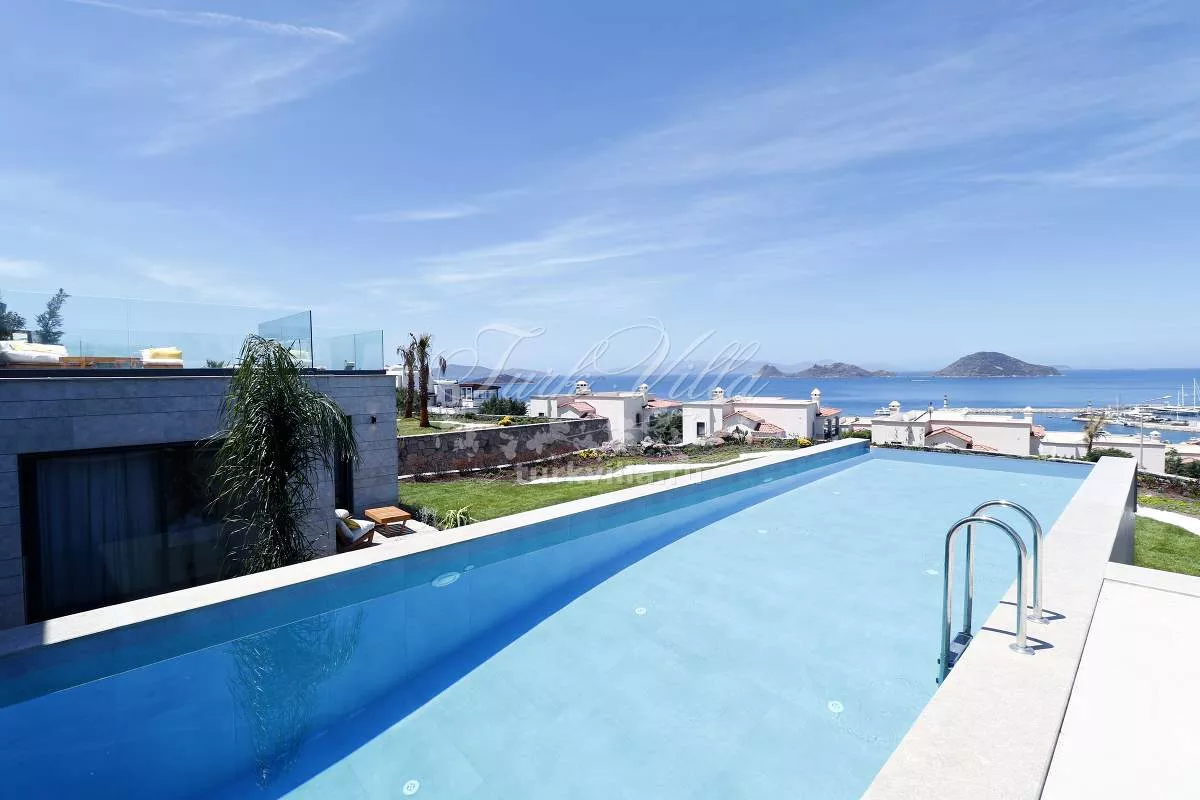 Добро пожаловать на уникальную виллу на полуострове Бодрум, отмеченную наградами за архитектурный проект. Вилла расположена на холмах D-Marin в районе Тургутрейс и предлагает великолепный панорамный вид на Эгейское море. В интерьере имеются бассейн инфинити, джакузи и сауна.