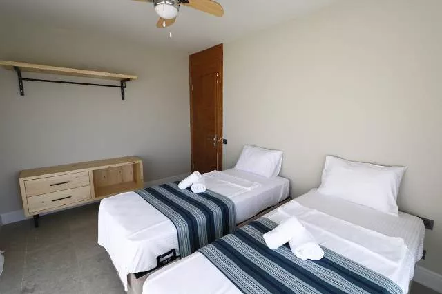 3. Спальня с двумя односпальными кроватями и частной ванной комнатой.
