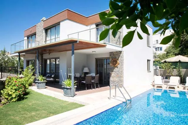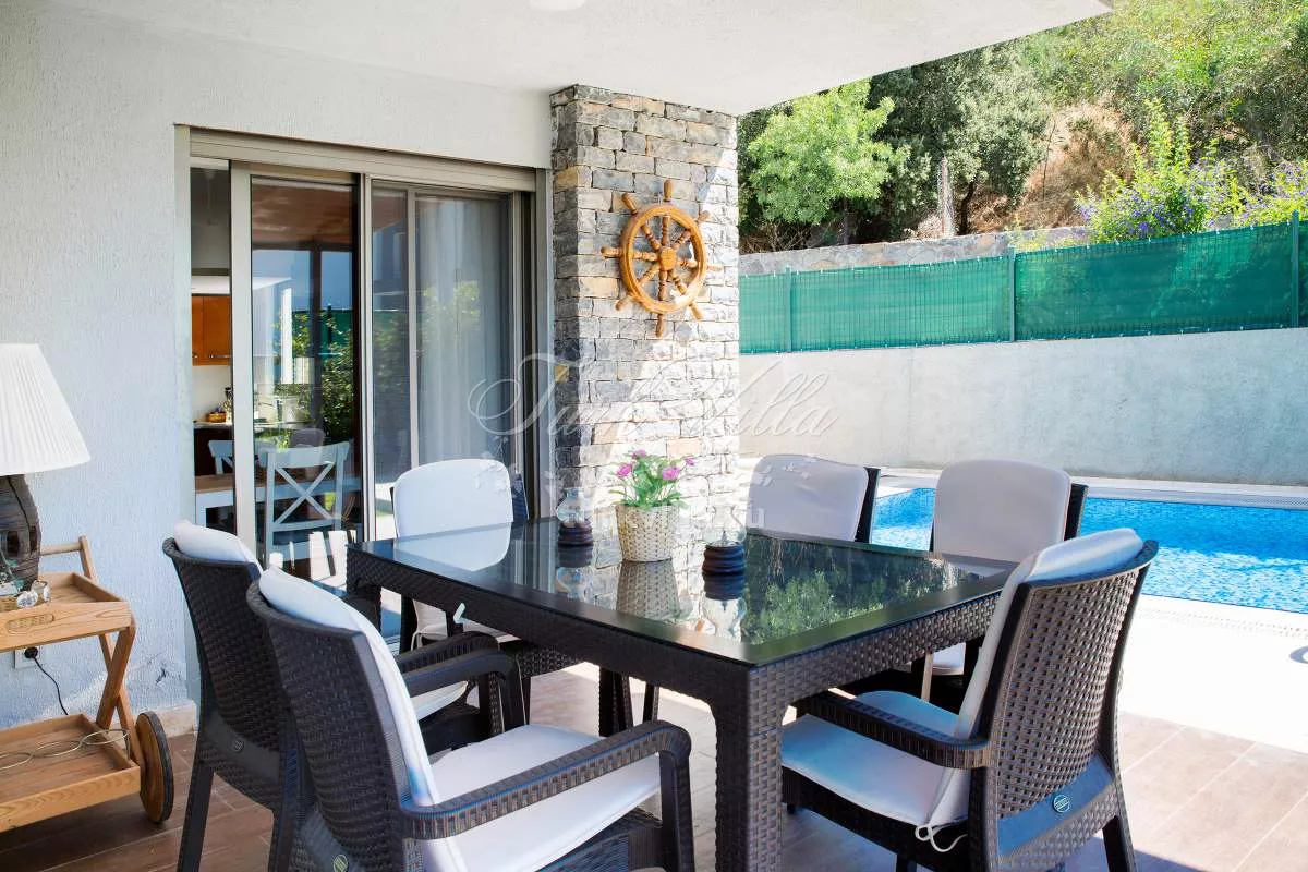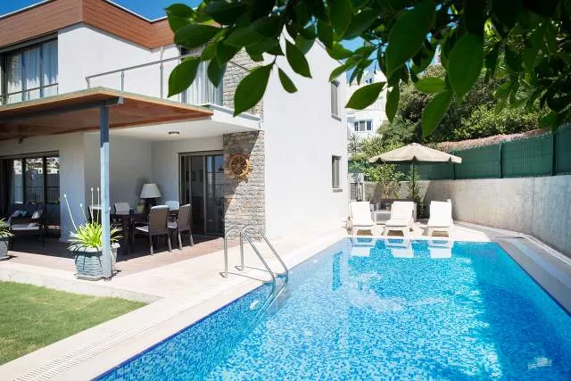 Вилла с частным бассейном и видом на море, расположенная в районе Бодрума Гюмбет. Всего в 10 минутах ходьбы от центра и пляжа, а также рядом с магазинами, ресторанами и барами. Это одна из лучших вилл в Гюмбете и отличный выбор для семей, ищущих расслабляющий отдых в Бодруме.