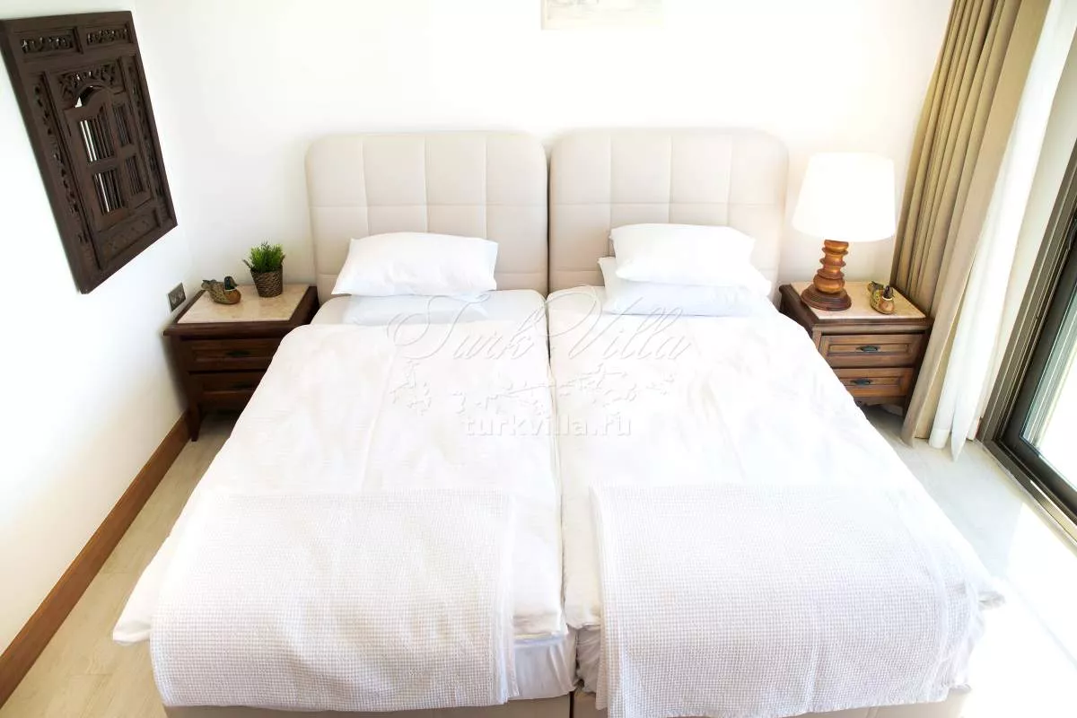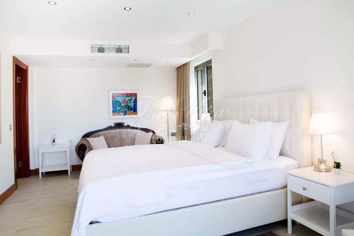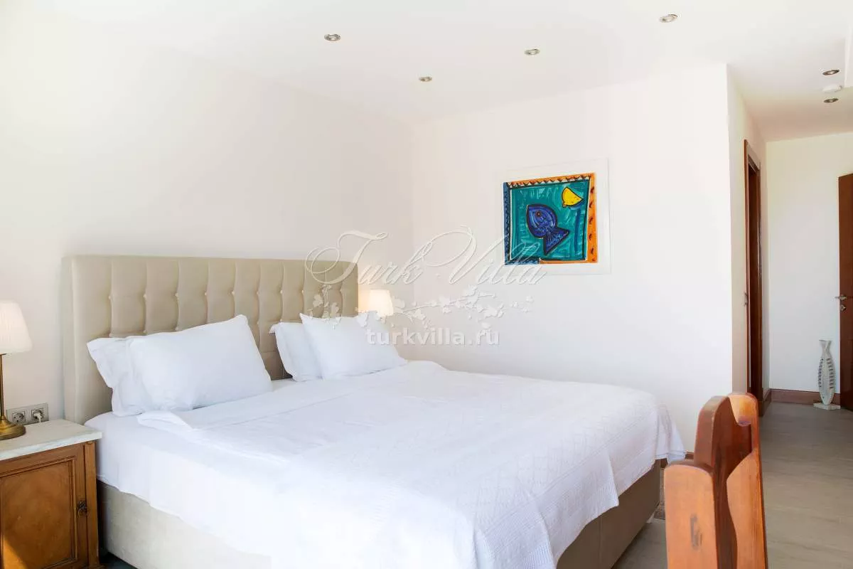 Второй этаж: 3 спальни с видом на море, 2 ванные комнаты, одна из которых с джакузи. Главная спальня с гардеробной. Прачечная. Из двух спальни есть выход на балкон с великолепным видом на море.