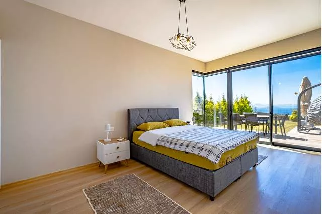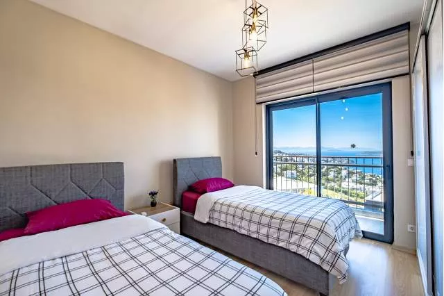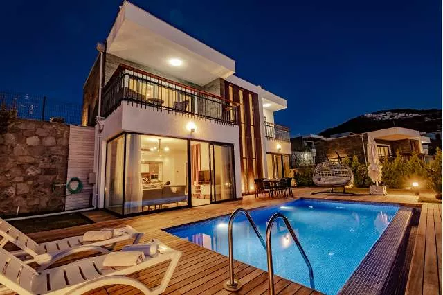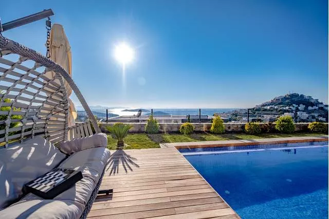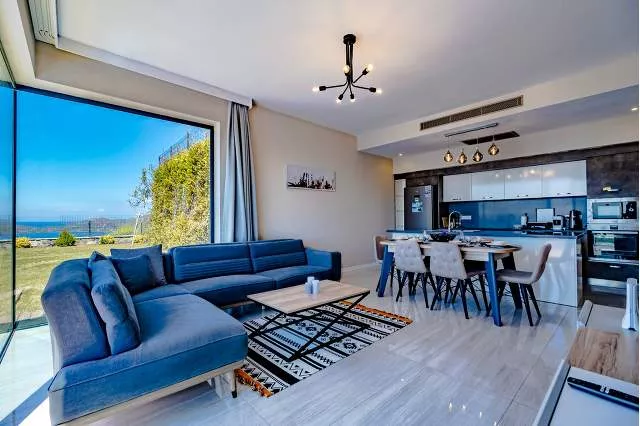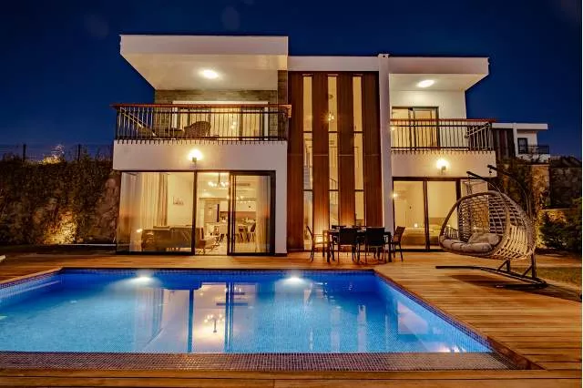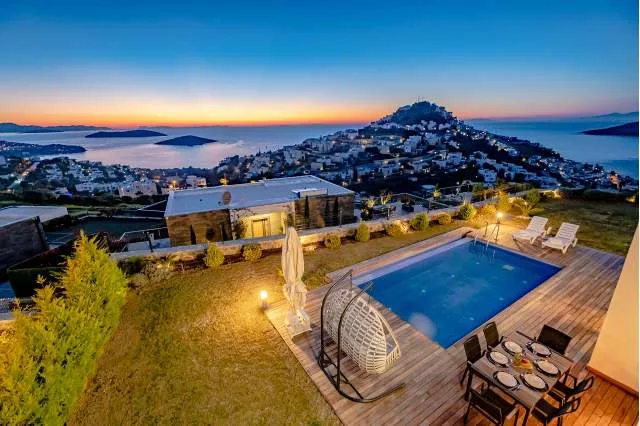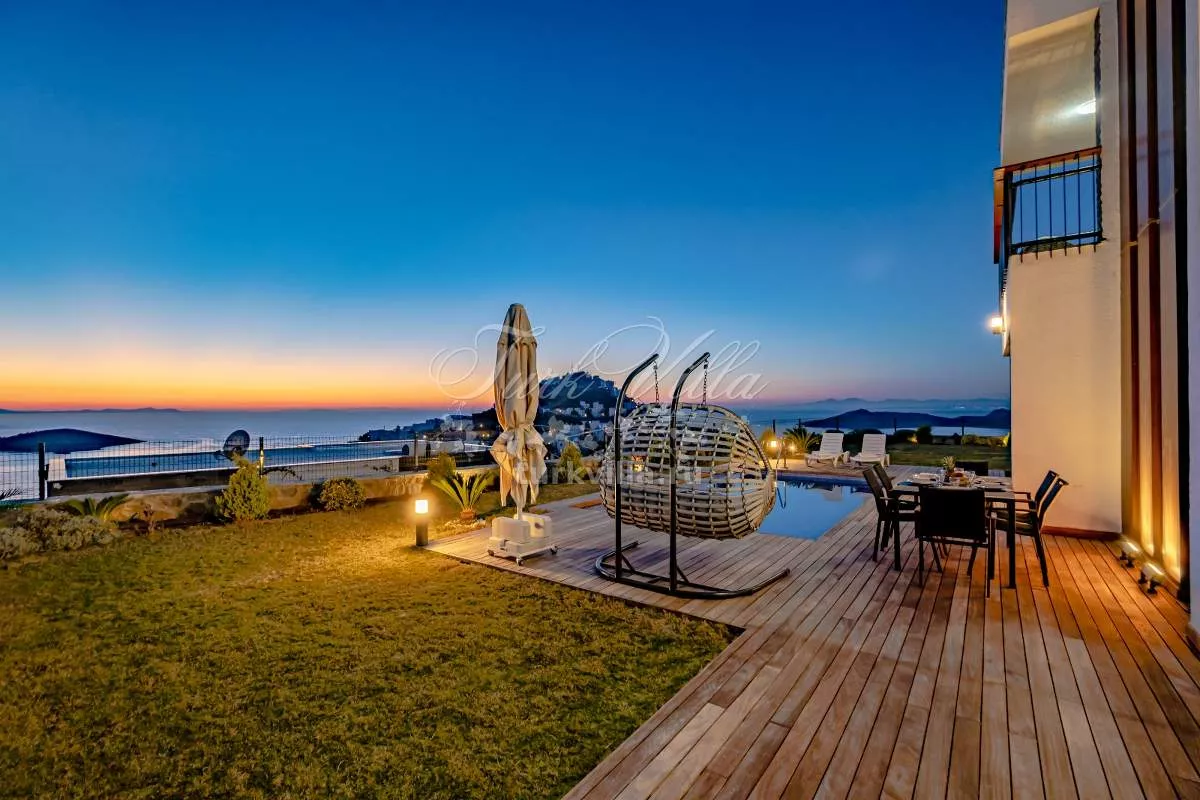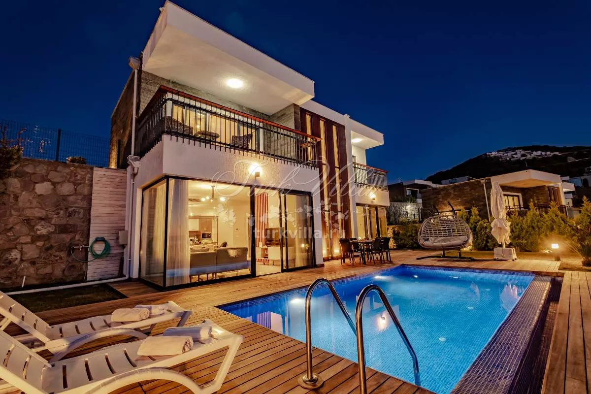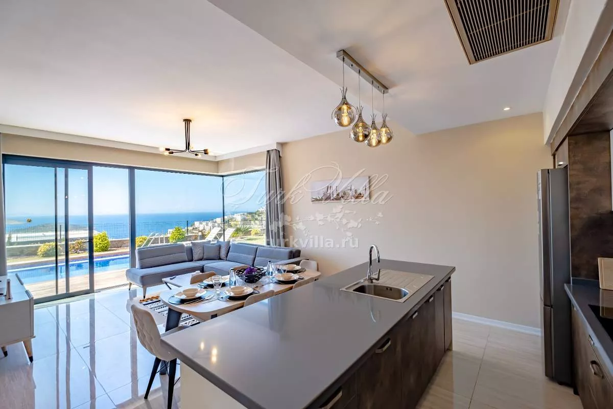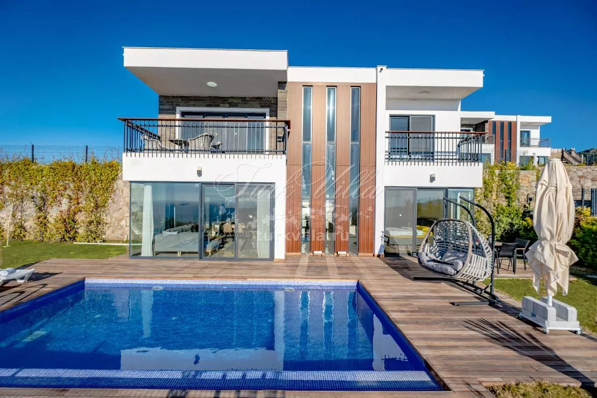 Великолепная вилла с 3 спальнями, частным бассейном и потрясающим видом на море ждет вас в Ялыкаваке, Бодрум. Этот роскошный дом идеально подходит для семей и групп друзей, обеспечивая комфортное размещение до 7 человек, включая детей.