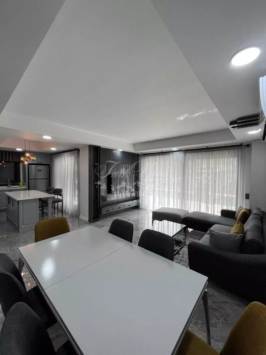 Просторная вилла с планировкой 4+1 предлагает идеальное пространство для комфортного проживания круглый год. Вилла оснащена сауной и отапливается с помощью кондиционеров, обеспечивая комфортную температуру в любое время года. Несмотря на отсутствие подогрева полов, удобное расположение и продуманная планировка делают это место идеальным для проживания.