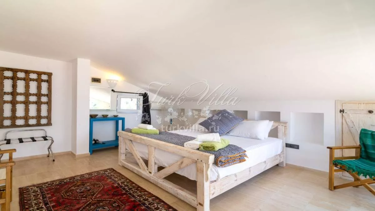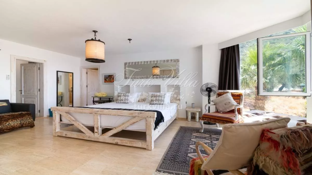 Спальня 4 (семейная люкс): Сьют с двуспальной кроватью, тумбочкой, туалетным столиком, джакузи и кондиционером. Есть собственная ванная комната и вид на море и природу.