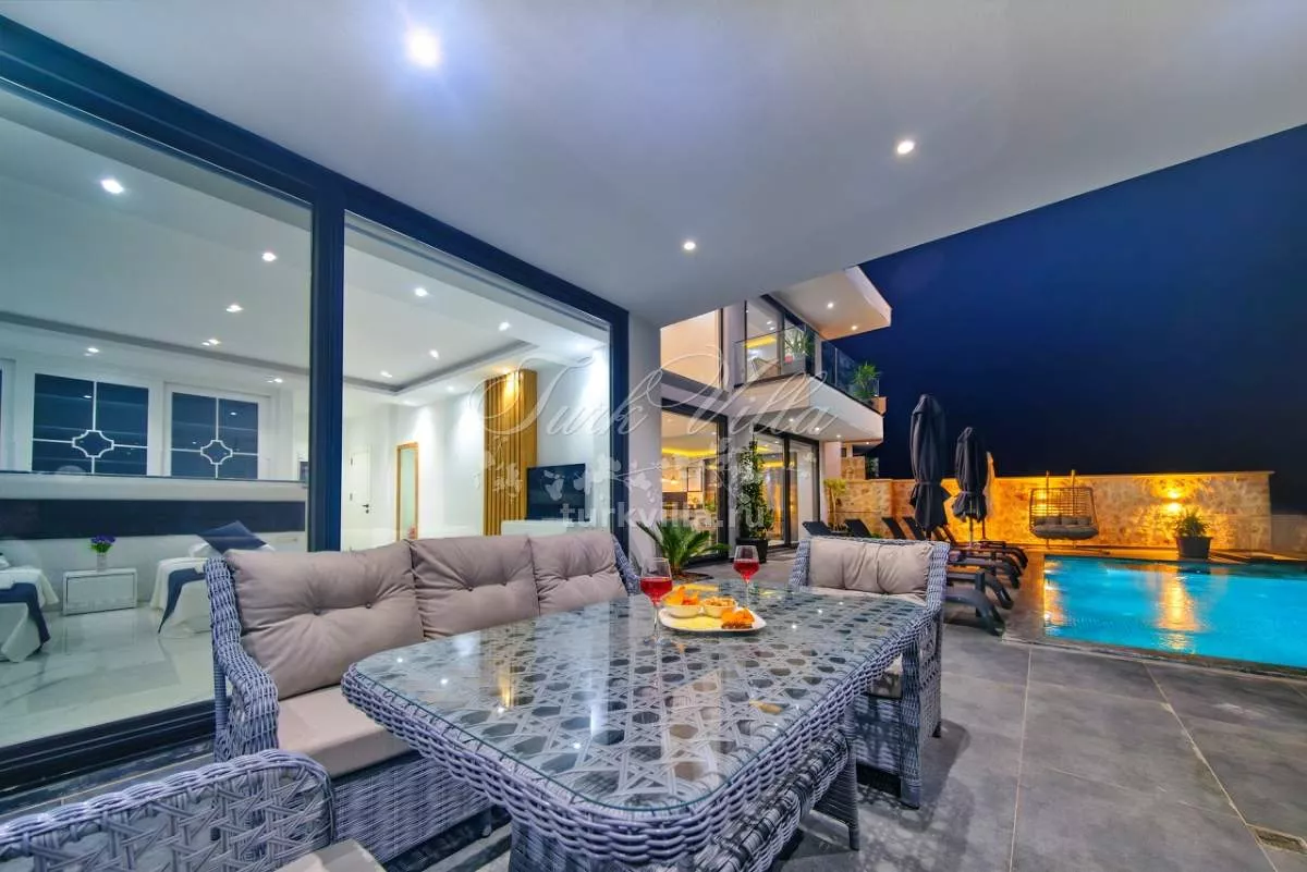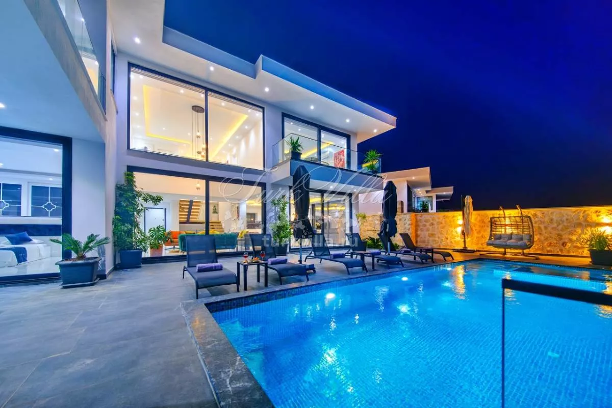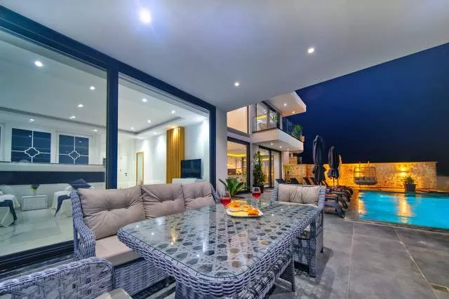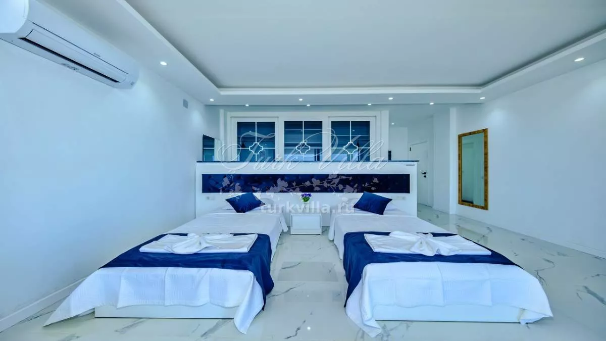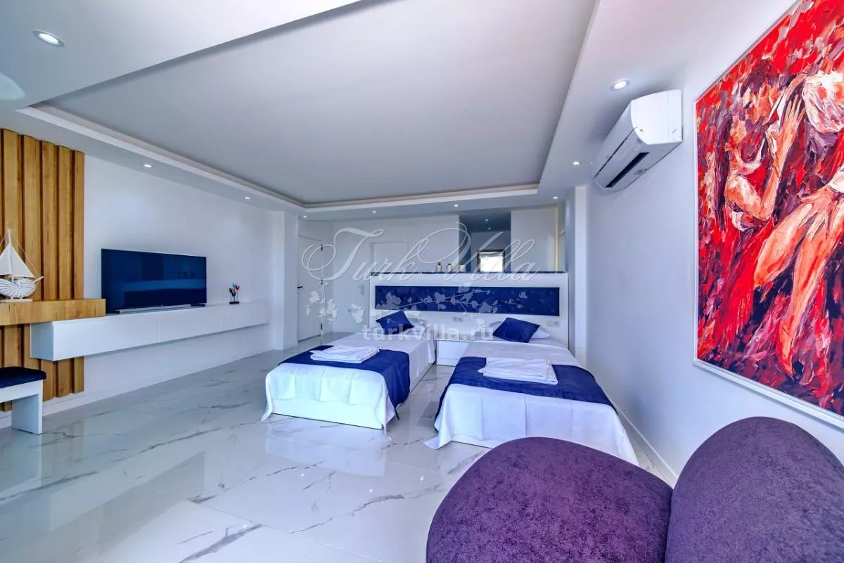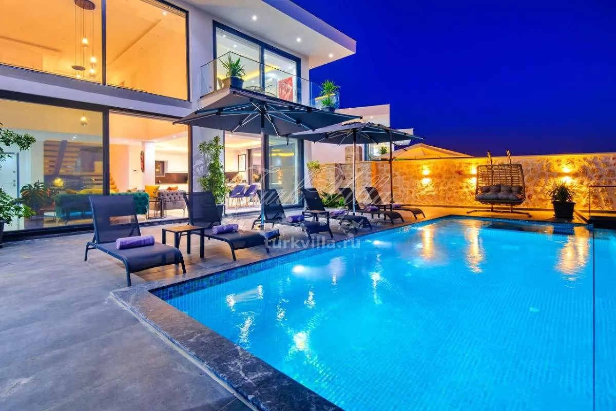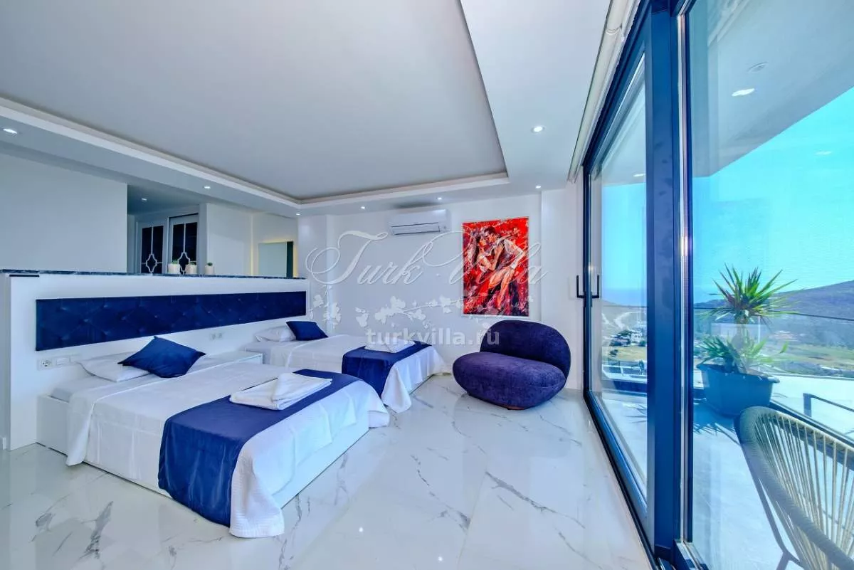 Вилла находится в районе Калкан и представляет собой роскошную виллу с панорамным видом на море из каждой комнаты, рассчитанную на комфортное проживание 6 человек. В этой вилле предусмотрены все детали для обеспечения максимального комфорта, включая 3 спальни, одна из которых оснащена ванной.
