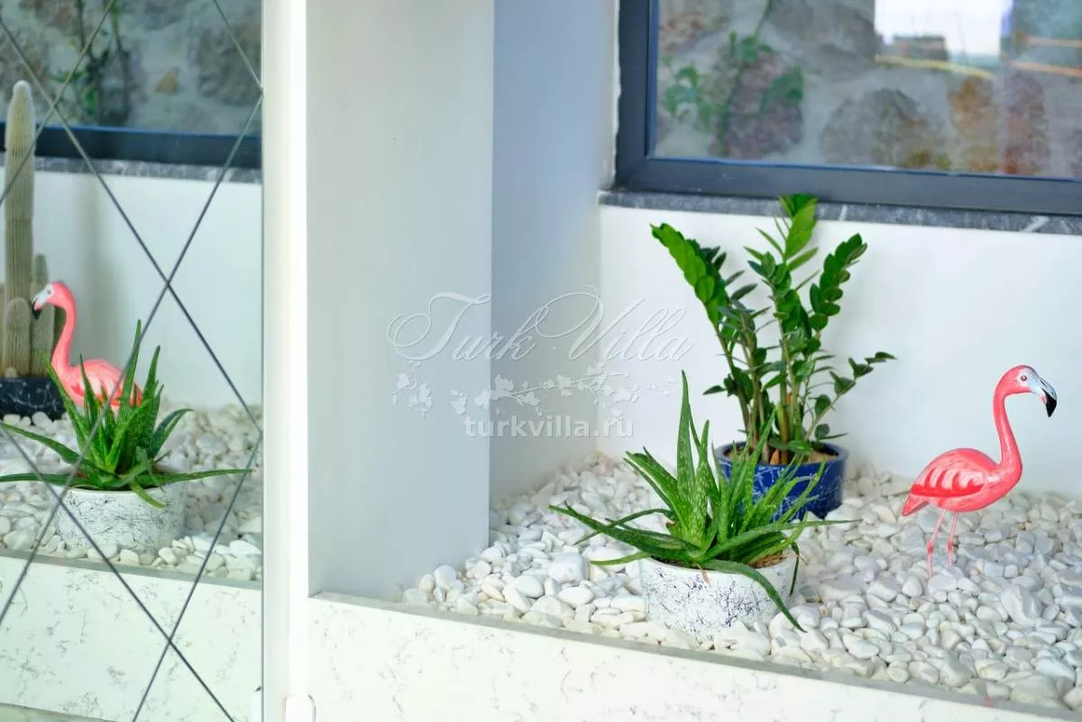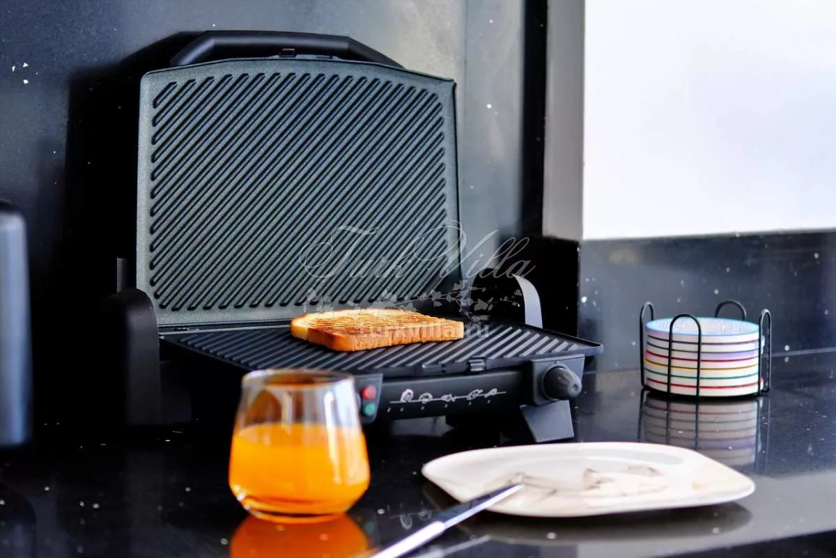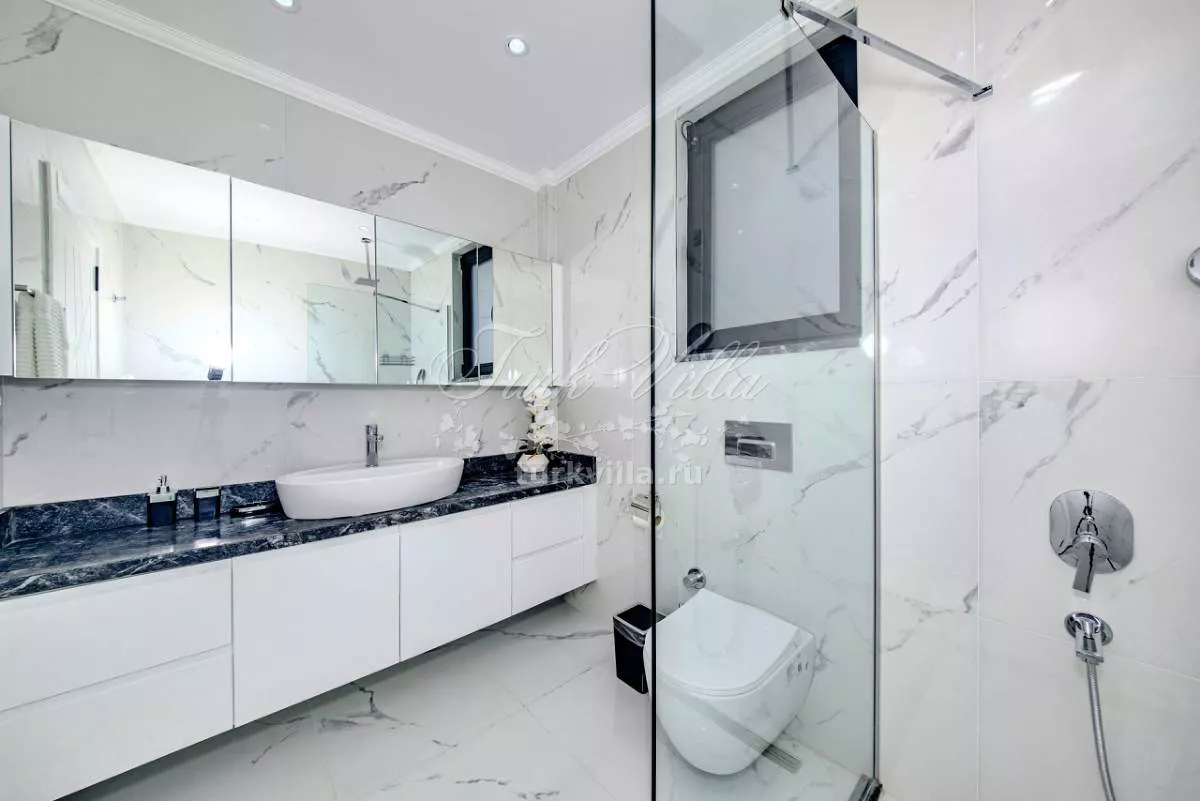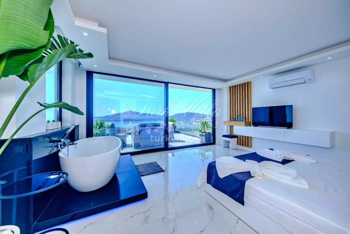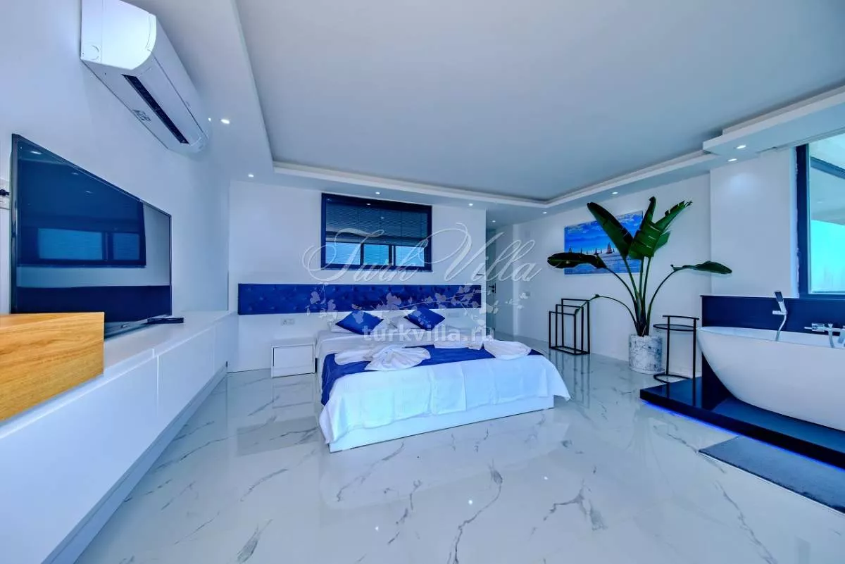 Во всех комнатах виллы шторы управляются дистанционным пультом, а во всех спальнях есть Smart TV, гардеробная, отдельная ванная комната с туалетом и туалетный столик. В главной спальне установлена ванна с панорамным видом на море. Все двери оснащены раздвижной системой, а также раздвижными москитными сетками. В случае перебоев с электричеством на вилле предусмотрена система энергоснабжения от генератора. Также в вилле есть прачечная.