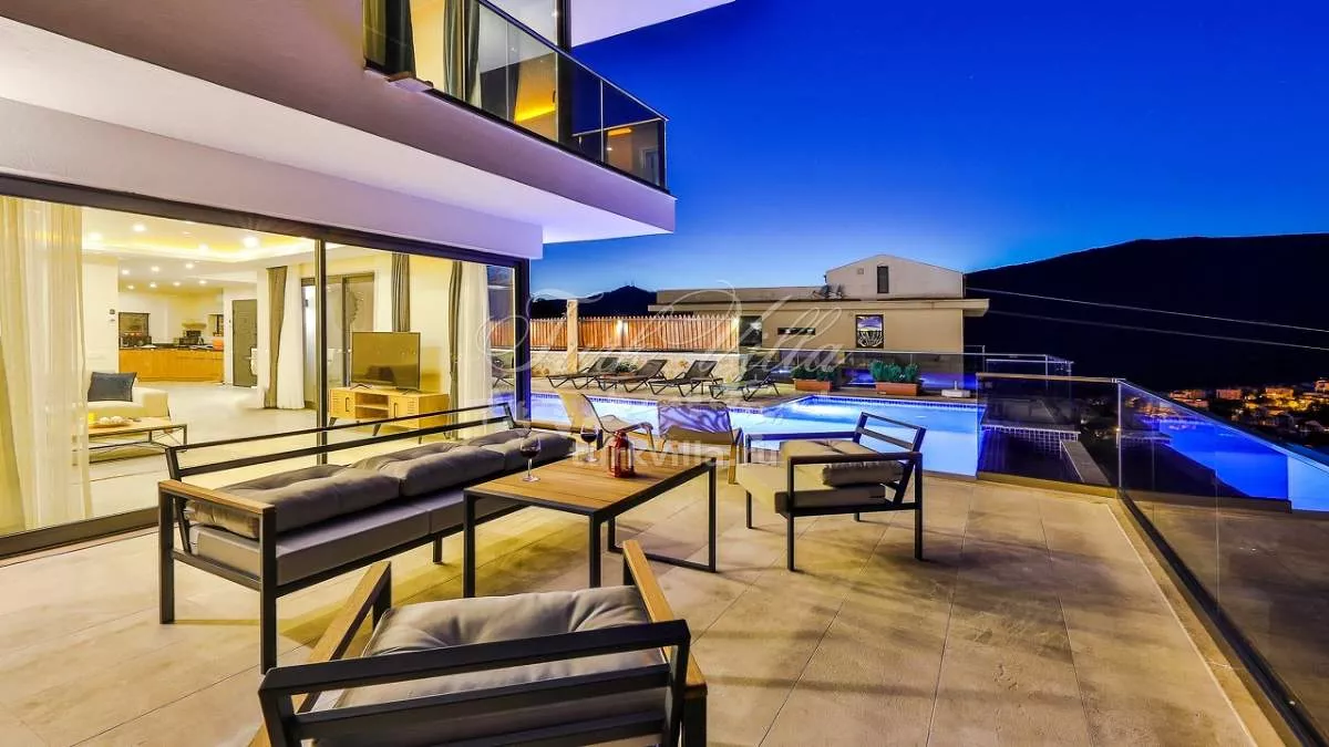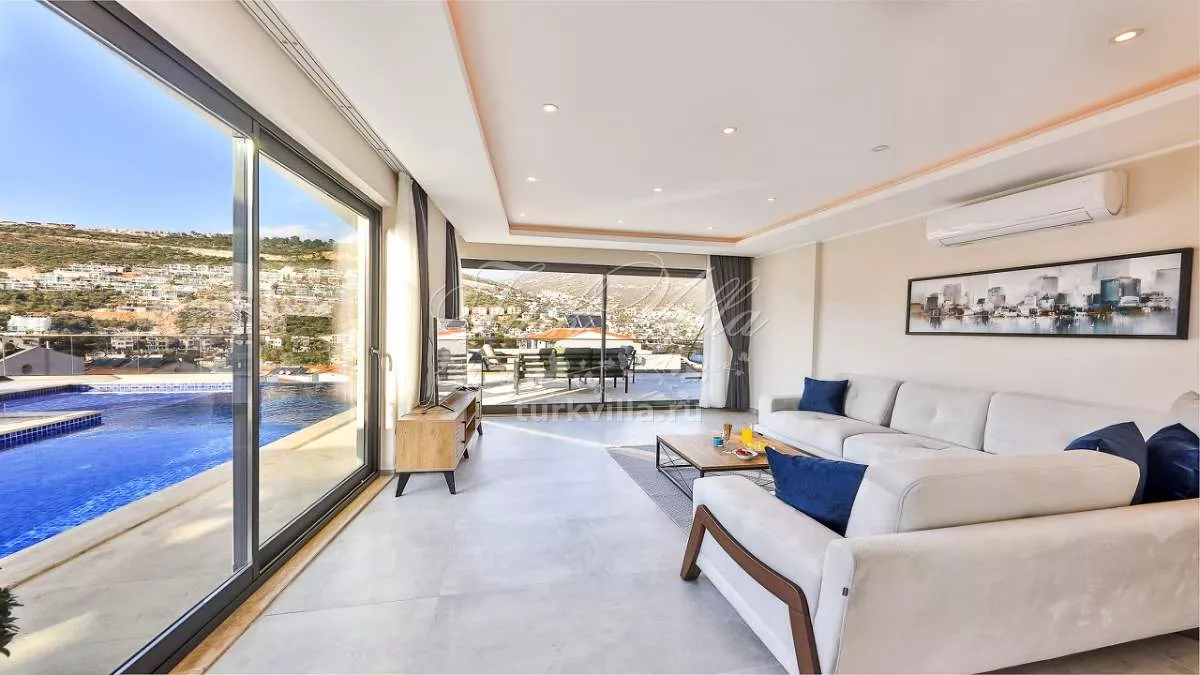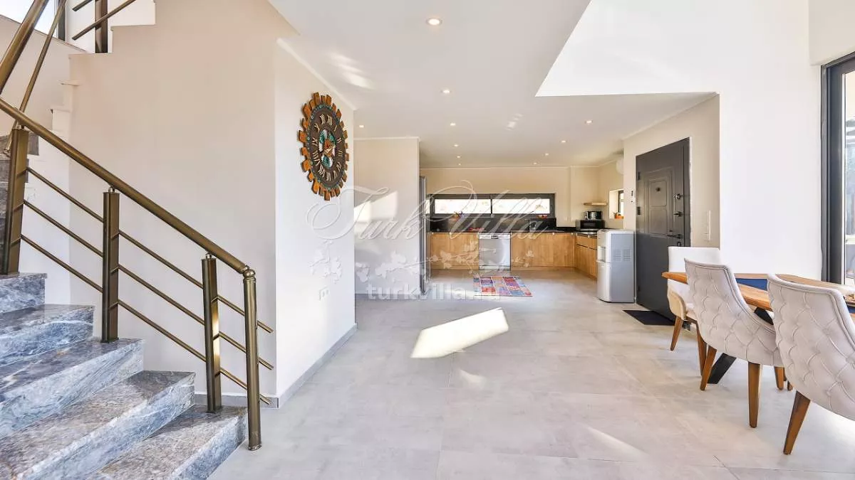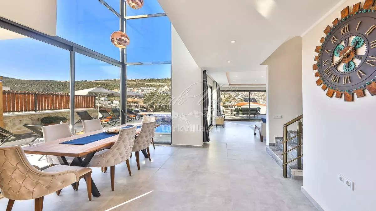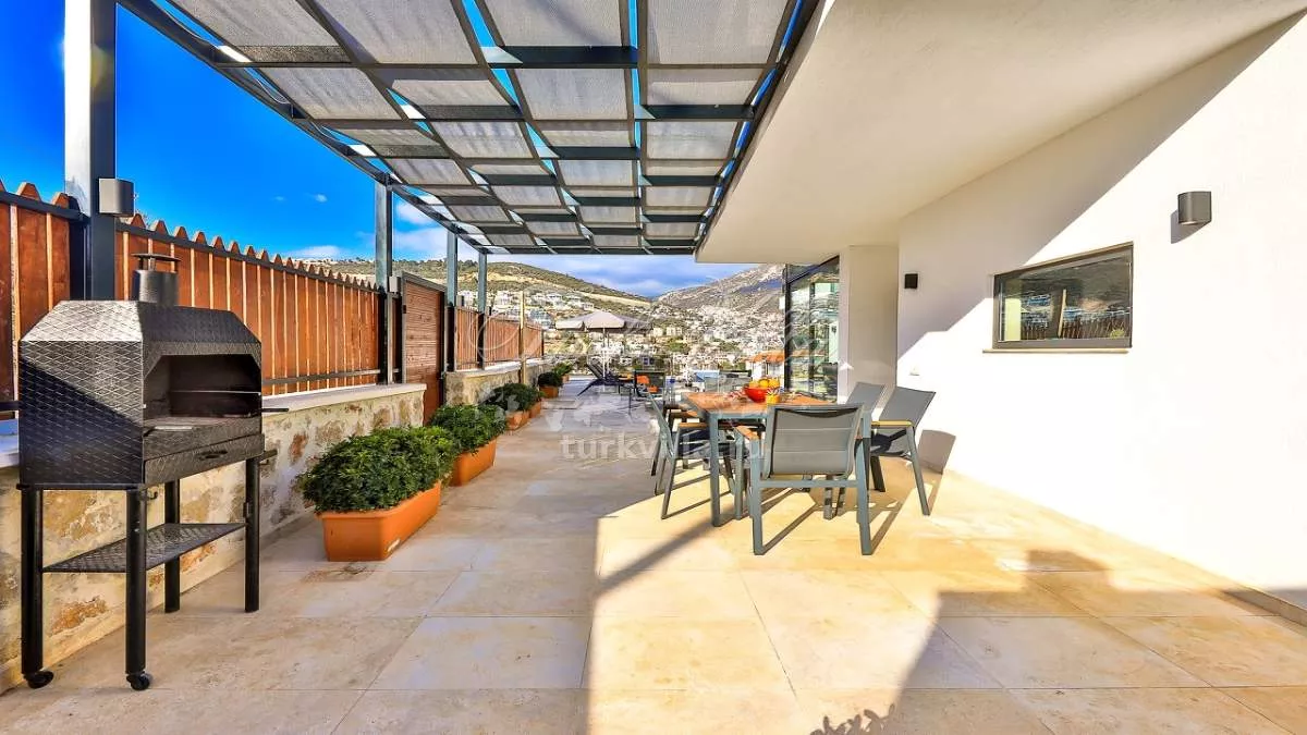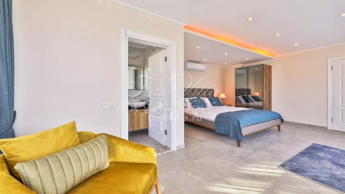 Вилла расположена в живописном районе Калкан Каламар. Она включает три просторные спальни, каждая с собственной ванной комнатой, и может комфортно разместить до шести человек. На территории имеется частный бассейн с террасой, где расположены качели, мангал, зонтики и шезлонги. Вилла оснащена современной американской кухней, оборудованной всем необходимым, и уютной гостиной с видом на бассейн. Расстояние до центра Калькана составляет 1,2 км, а ближайший пляж находится всего в 1 км.