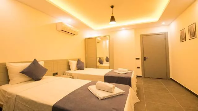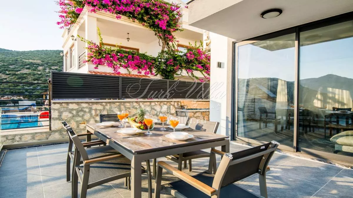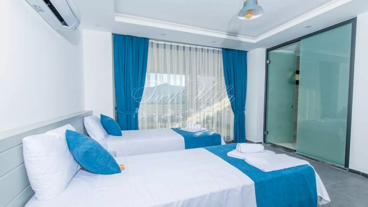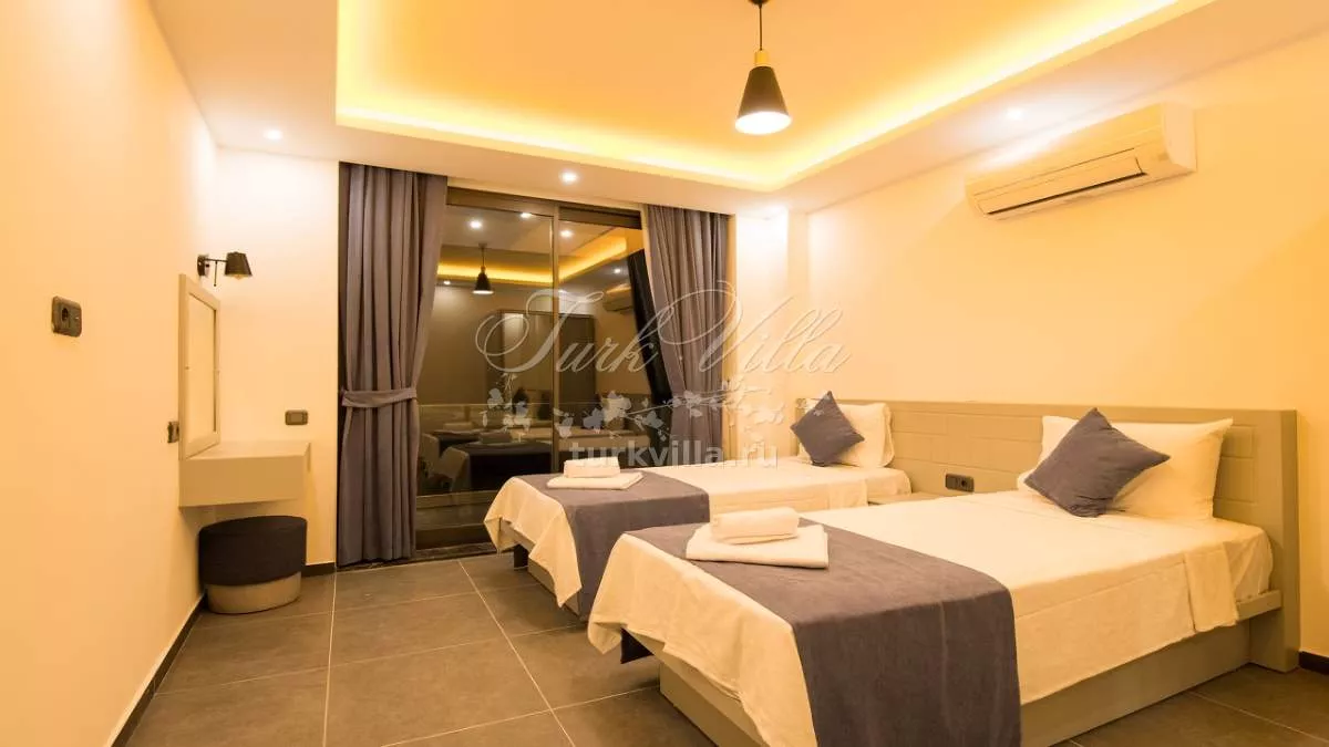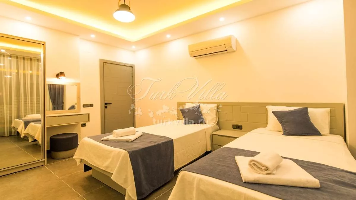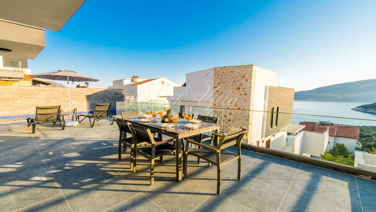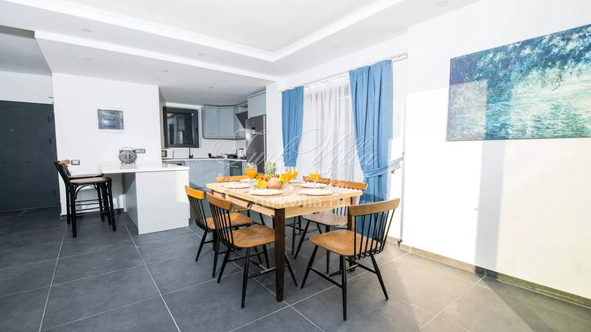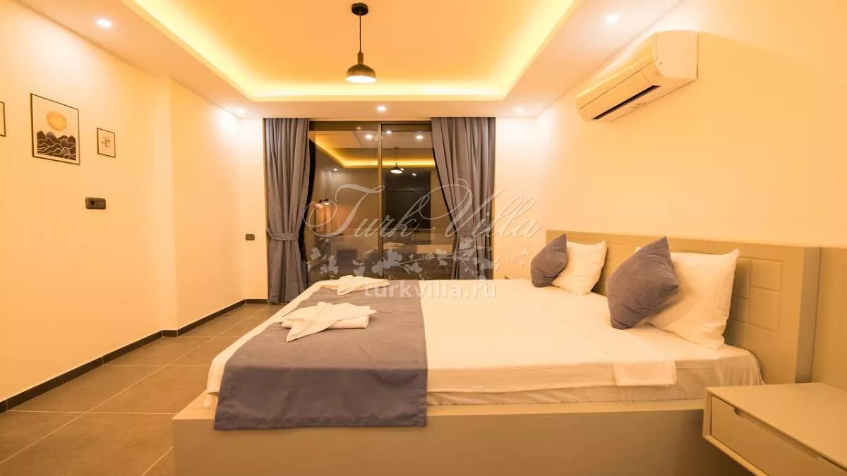 Вилла расположена в районе Калкан Каламар и предлагает частный бассейн с потрясающим видом на море. Вилла рассчитана на 6 человек и оформлена в высоком качестве и комфорте, что обеспечивает приятное проживание для гостей. Просторные внутренние и внешние зоны делают виллу идеальной для больших групп друзей и семей. Вилла также находится недалеко от центра и моря, предлагая великолепный вид на море.