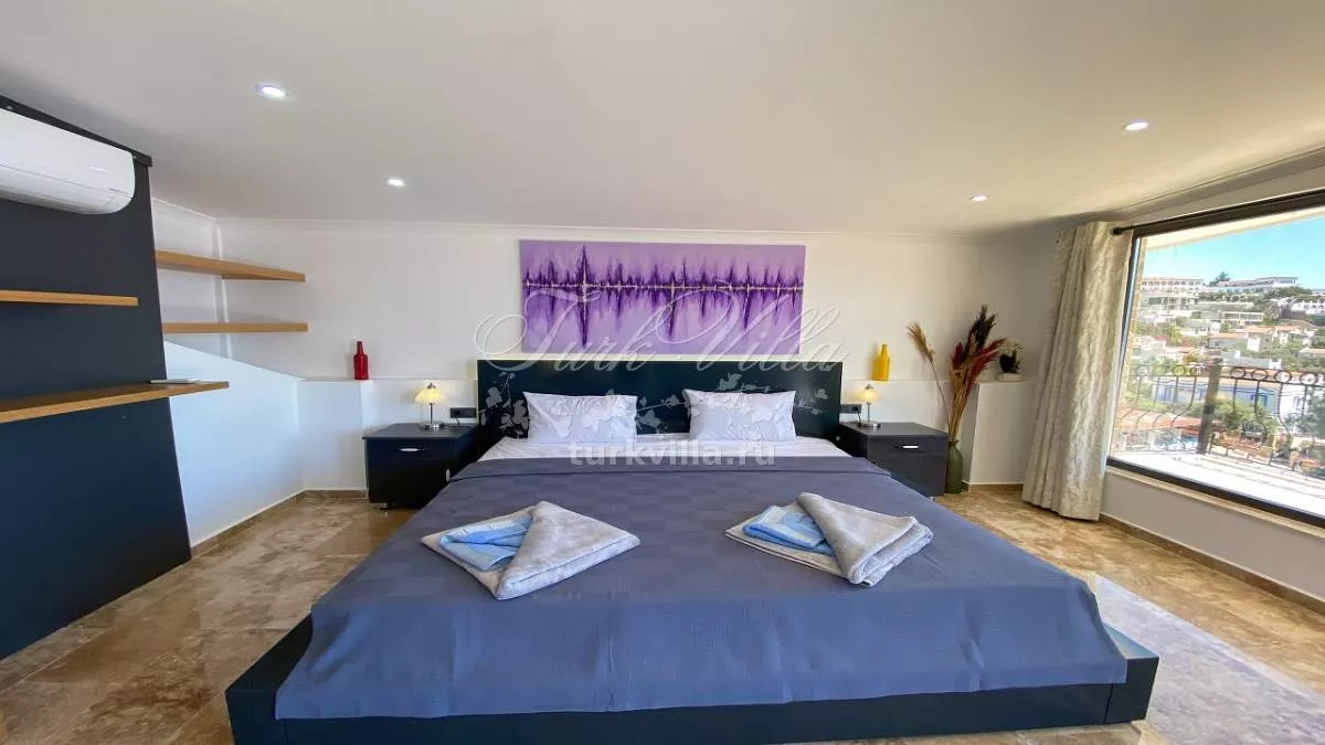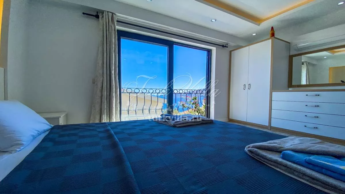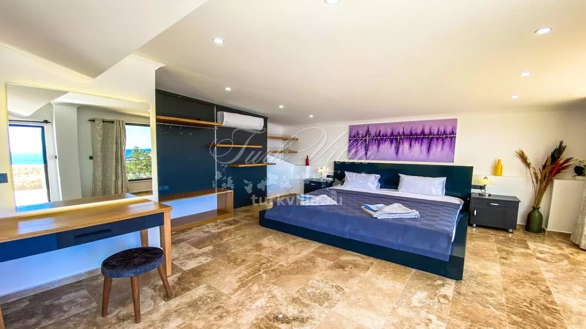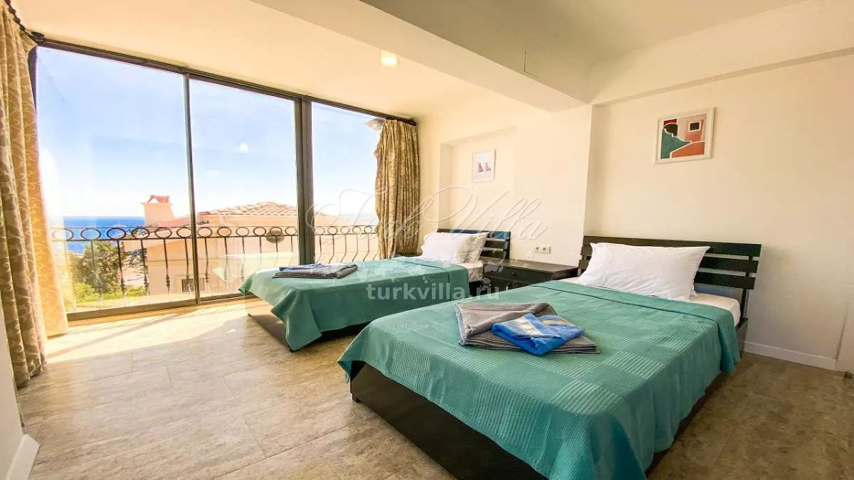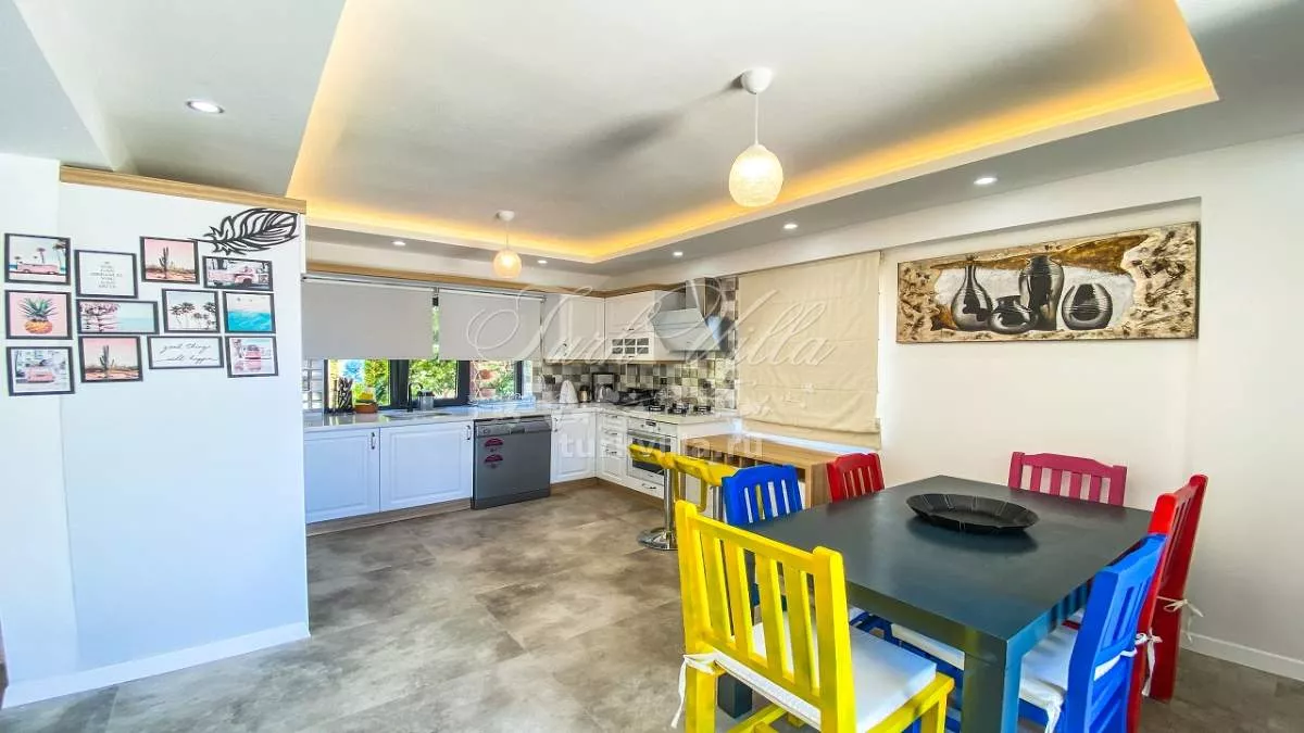 Вилла расположена в районе Калкан Каламар и имеет потрясающий вид на море и город. Она подходит для небольших семей. Вилла находится в 100 метрах от моря у подножия гор.