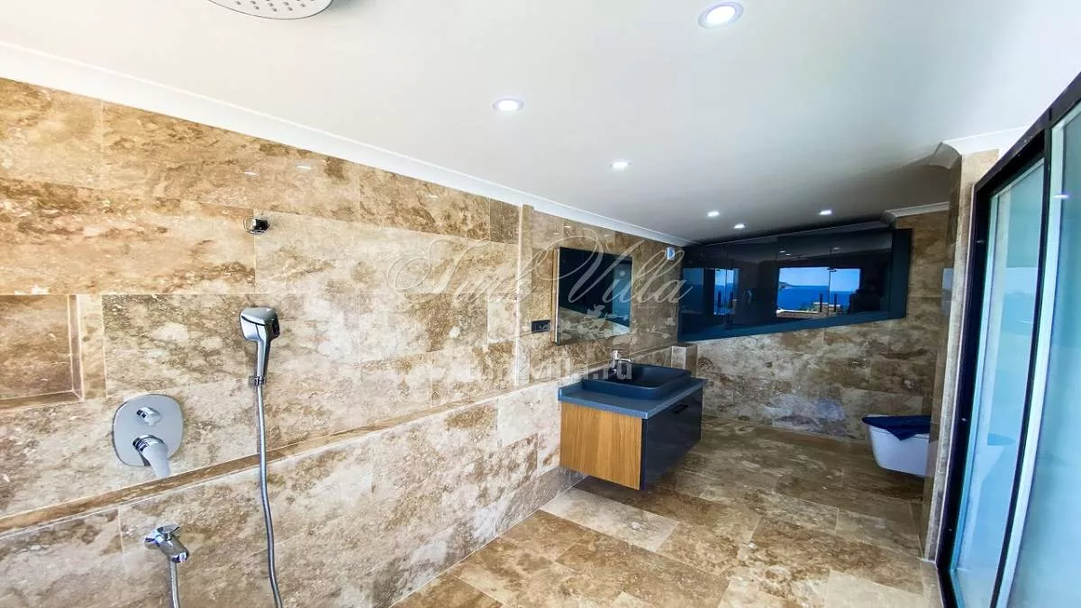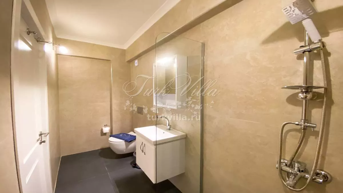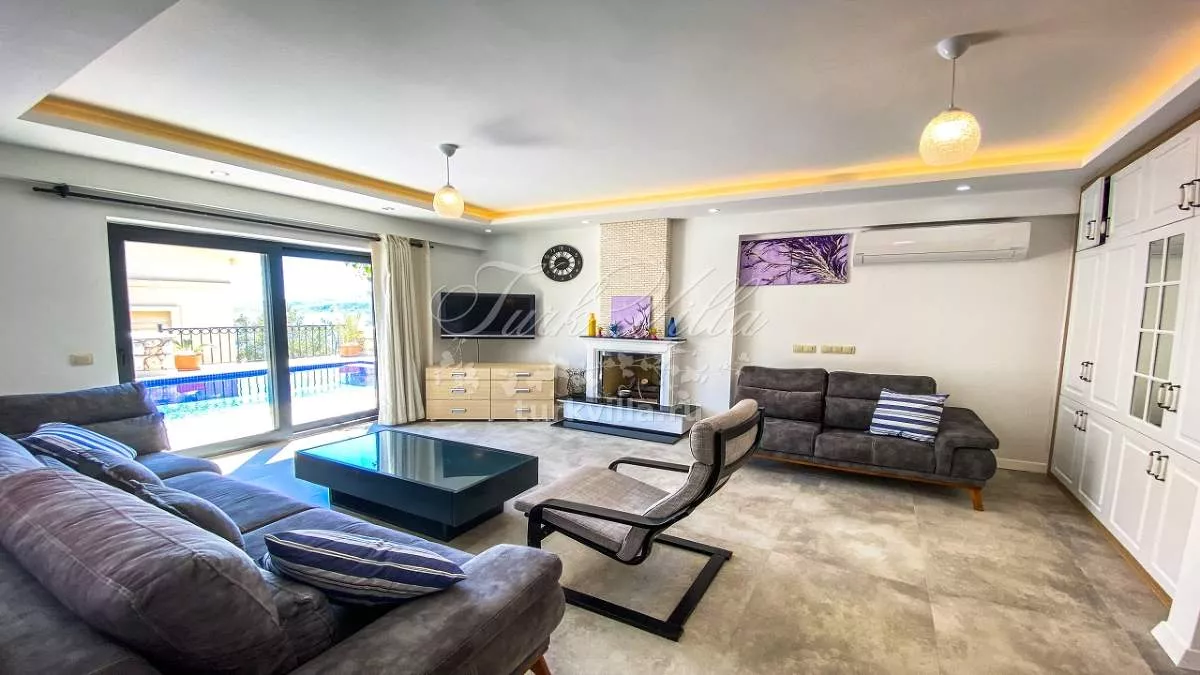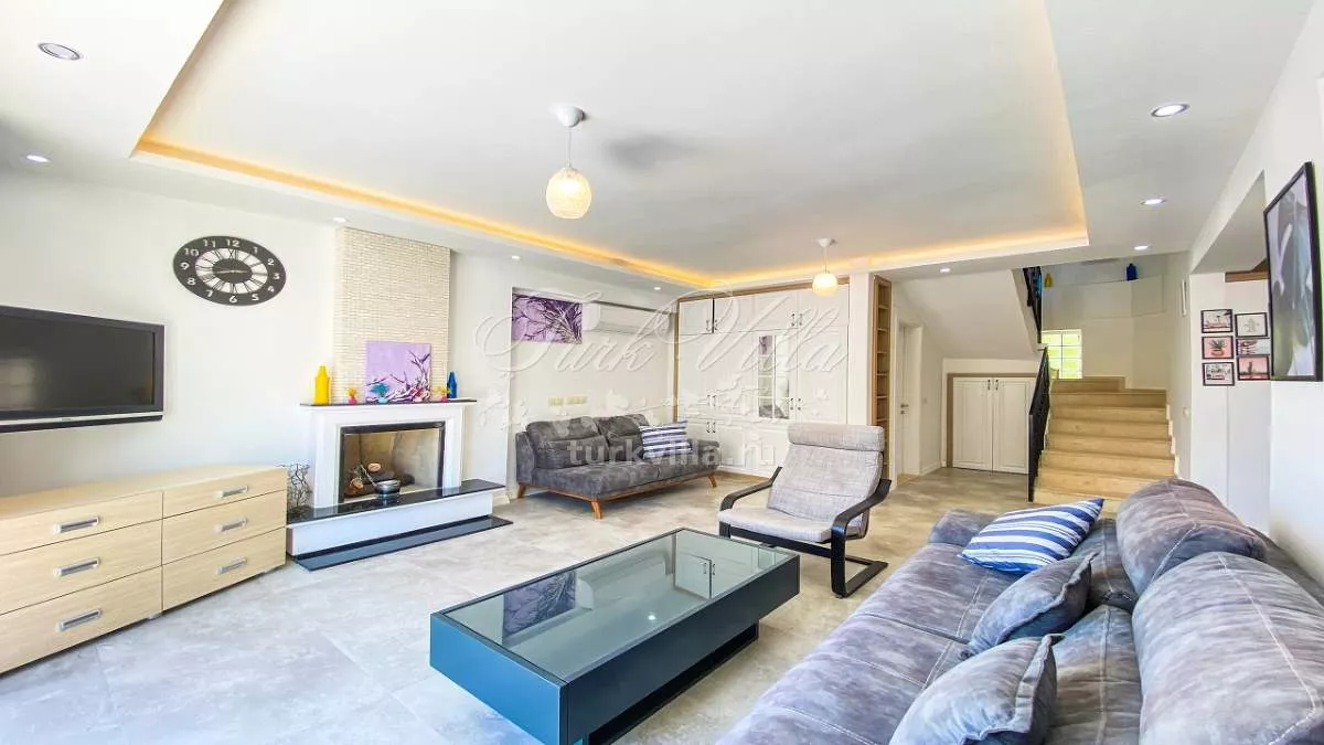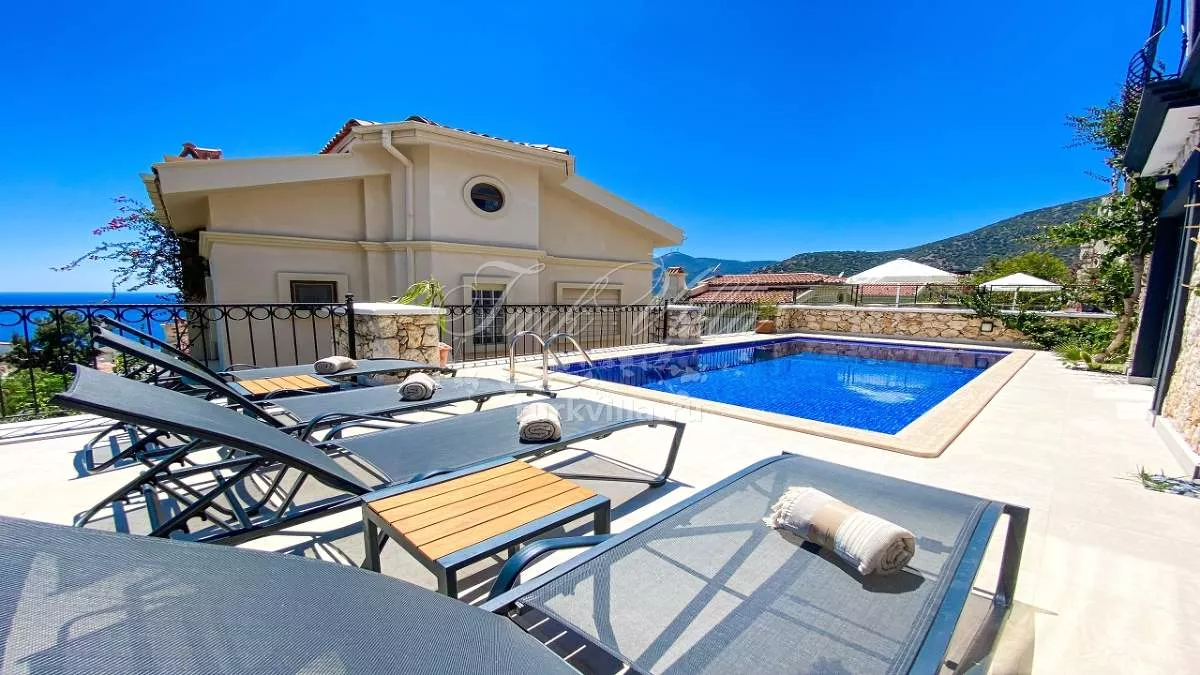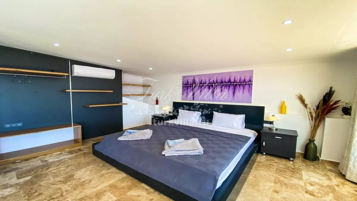 Вилла расположена в районе Калкан Каламар и имеет потрясающий вид на море и город. Она подходит для небольших семей. Вилла находится в 100 метрах от моря у подножия гор.
