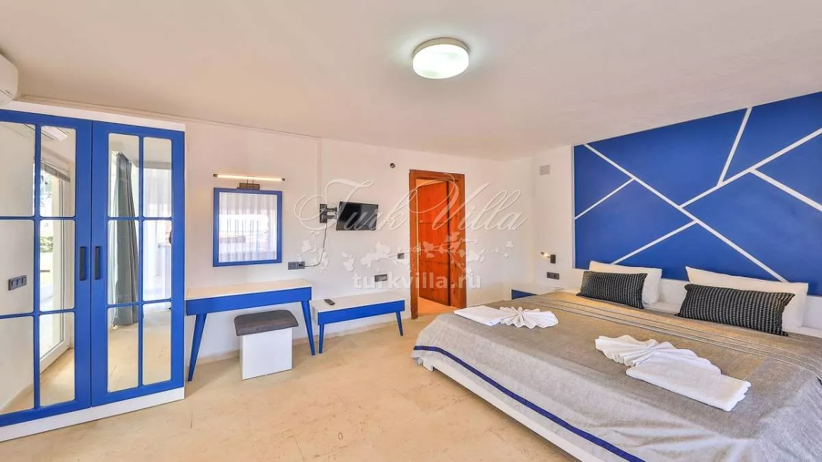 3. Спальня 3: двуспальная кровать, ванная комната, гардероб, прикроватная тумбочка и кондиционер.